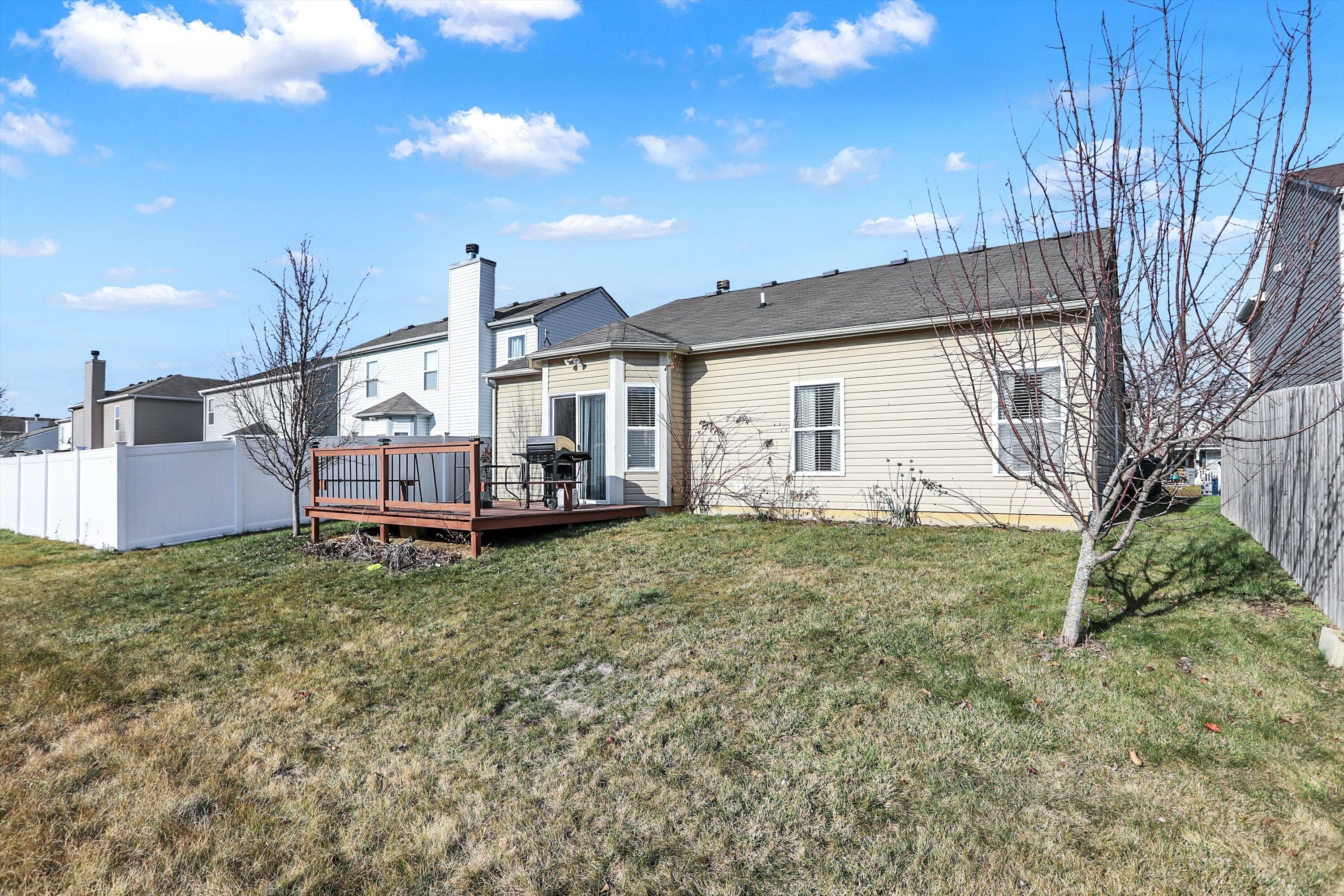 Superb ranch in Meadows of Shelbourne. Great room with vaulted ceilings offers an open feel and fireplace makes the space very cozy. Eat in kitchen with plenty of light with window to great room and sliding glass doors to outside deck. All appliances included. New HVAC system installed less than 3 years ago. This home has 3 bedrooms and 2 full baths. 3rd bedroom used as a Den with nice French doors. Home was fully painted inside in December 2023. Bedrooms are spacious and master suite offers a large walk-in-closet. Super nice deck to enjoy a summer BBQ and sip coffee in the morning. Quiet neighborhood but very close to HTC Mall shops, dining, movie theater. Convenient to the highway and great schools. Neighborhood offers pool, park, tennis courts.
