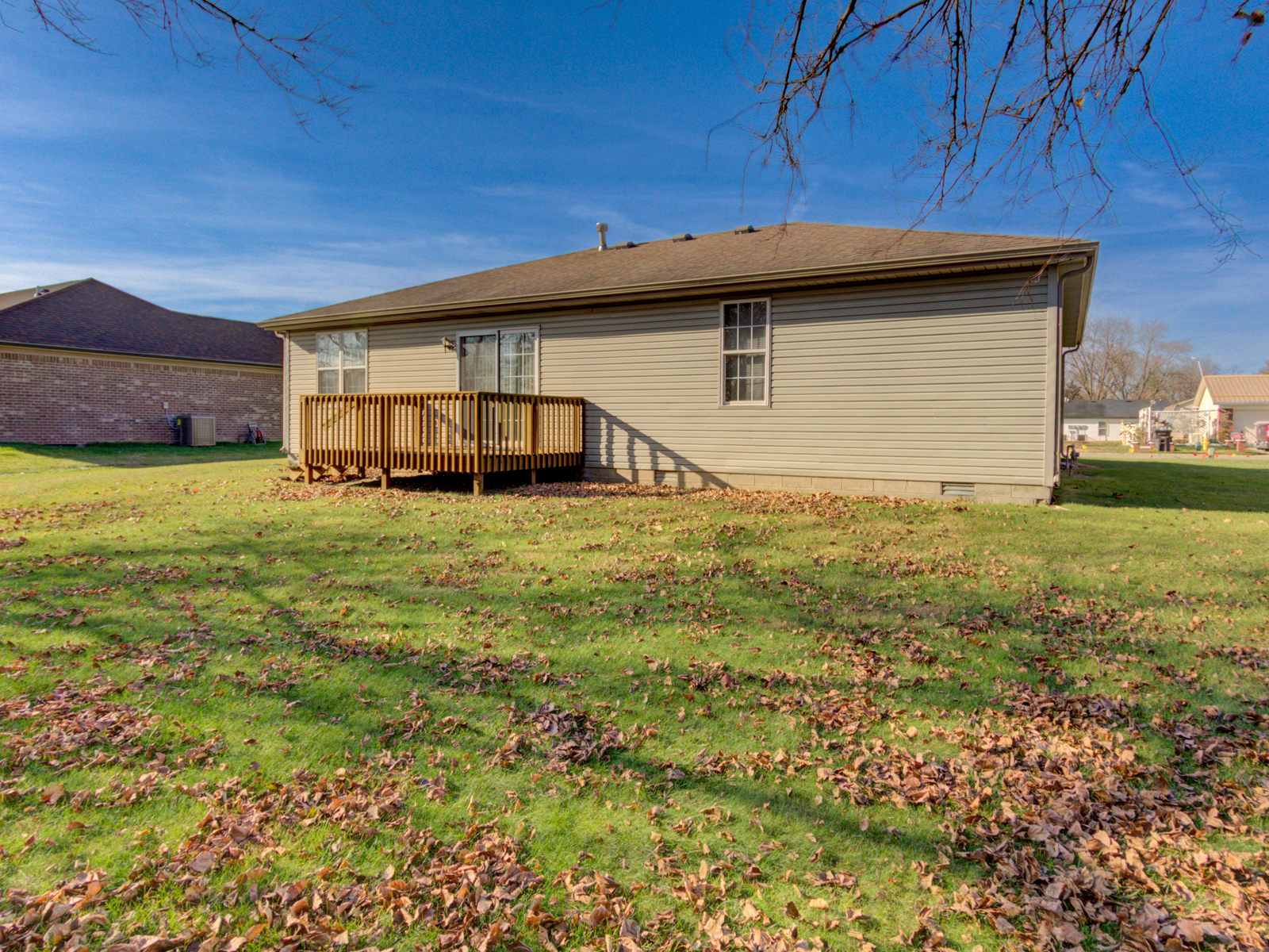 Beautiful home in a quiet neighborhood! This 3 bed, 2 full bath house is ready for new owners to add their personal touch! This home is 1235 square feet with new carpet in the Primary Ensuite and the large living room, which features high vaulted ceilings. The sliding patio door leading to the deck provides plenty of natural light. The spacious kitchen and dining combo features plenty of space to cook with all the appliances included and room to gather with friends and family. The back deck backs up to a farm field and provides plenty of privacy. Large two-car attached garage features a tub sink and leads to the mudroom/laundry room through the entryway. The home is vacant and ready for move-in ASAP! No dealing with a seller finding a house!