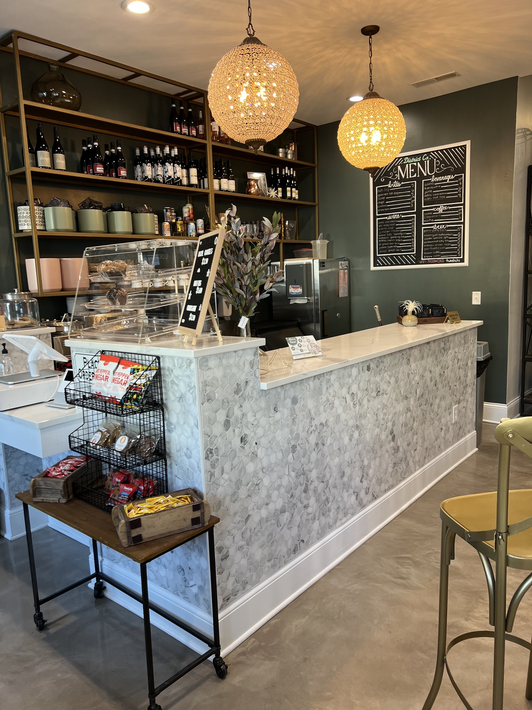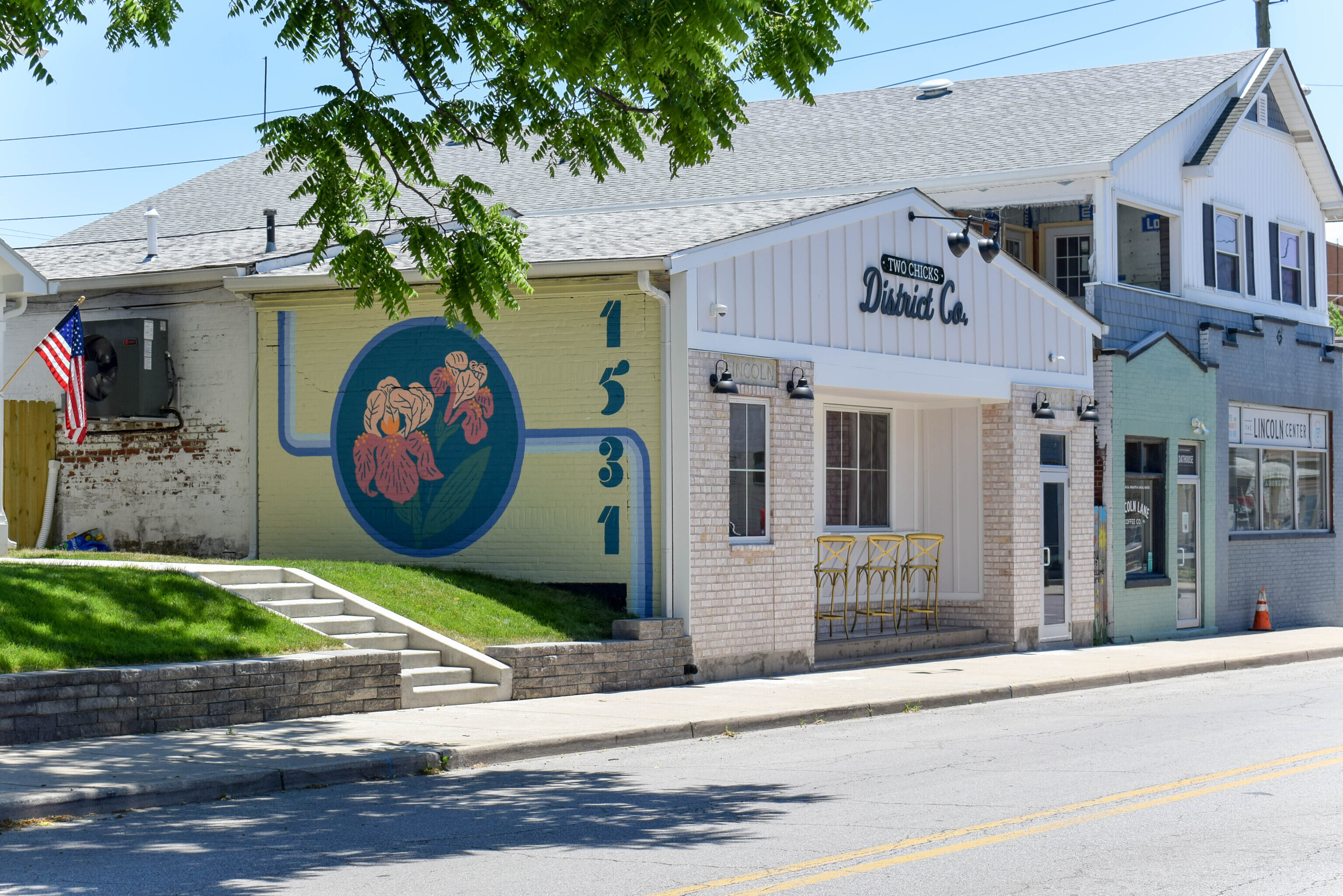 The Two Chicks District Co building! With the front set up for a bistro including a two way liquor license, a large and open retail area and a large back room with oversized garage door for large deliveries, this space could be easily retrofit to serve a variety of purposes. It has a smaller closed off office space towards the back as well as two ADA restrooms. There is parking in the rear on the pad and landlords own the parking lot immediately behind the building so additional parking needs are negotiable.