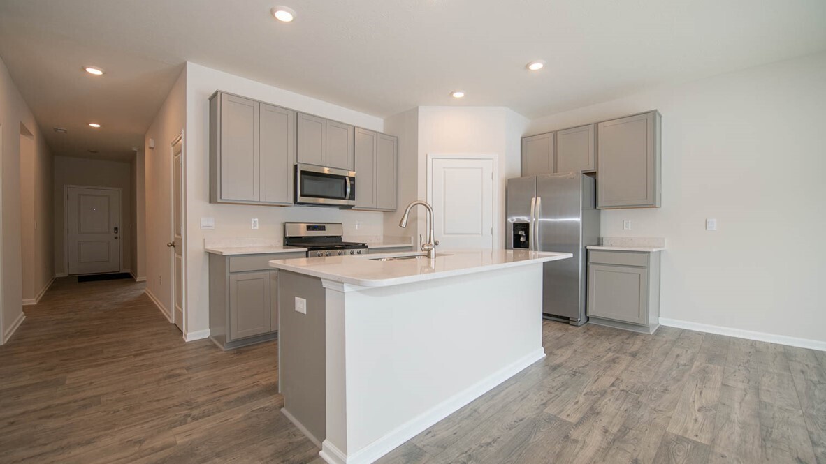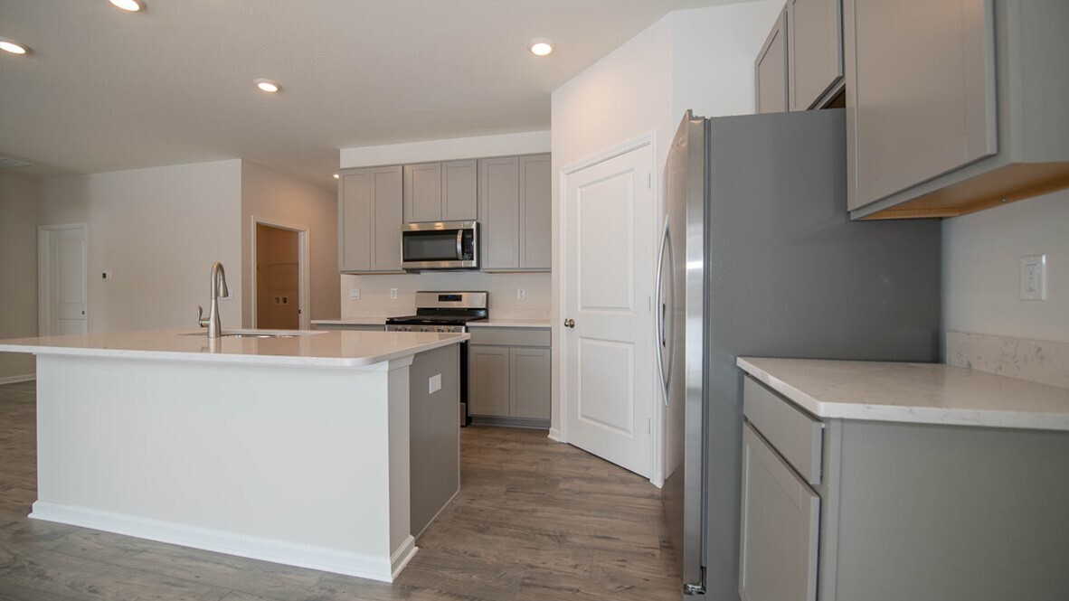 Welcome to the Harmony in Carrick Glen located in charming Pendleton, Indiana. This home design provides 3 bedrooms and 2 full baths in a single-level, open living space. The living area offers solid surface flooring throughout for easy maintenance. Two large bedrooms are situated in the front of the home and another bedroom, which features a large walk-in closet is situated in the back of the home for privacy. Enjoy entertaining in the spacious kitchen with a large built-in island, quartz countertops and beautiful 42″ cabinets. The entry from the garage has a conveniently located closet for coats and jackets. Patio ideal for enjoying time outdoors in this popular community near Falls Park and downtown Pendleton. The home includes America’s Smart Home Technology featuring a smart video doorbell, smart Honeywell thermostat, Amazon Echo Pop, smart door lock, Deako smart light switches and more. Photos representative of plan only and may vary as built.