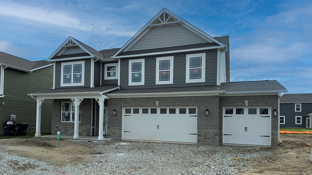 Welcome to the West Haven, a quick move-in home in Carrick Glen, located in beautiful Pendleton, Indiana. This 4 bedroom, 3.5 bath 2-story with 3 car garage welcomes you with a front porch. Home offers main level den and in-law suite. Kitchen features island, upgraded 42″ cabinets, beautiful flooring, pantry and quartz countertops. Sprawling Bedroom and Bathroom 1 feature double bowl vanity, garden tub, spacious shower, and oversized walk-in closet. The other upstairs bedrooms are a great size and include walk-in closets. Enjoy the extra living space offered by the upstairs loft. Hall bath includes a double bowl vanity and private commode and shower area. Open back patio for grilling and enjoying time outdoors. Enjoy the proximity to great schools and local shopping and nearby Falls Park. The home includes America’s Smart Home Technology featuring a smart video doorbell, smart Honeywell Thermostat, Amazon Echo Pop, smart door lock, Deako Smart Light switches and more. Photos may be representative of plan and vary as built.