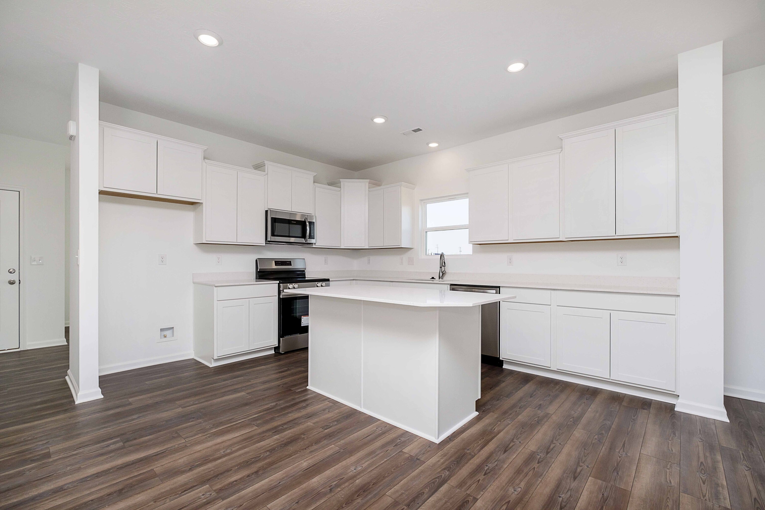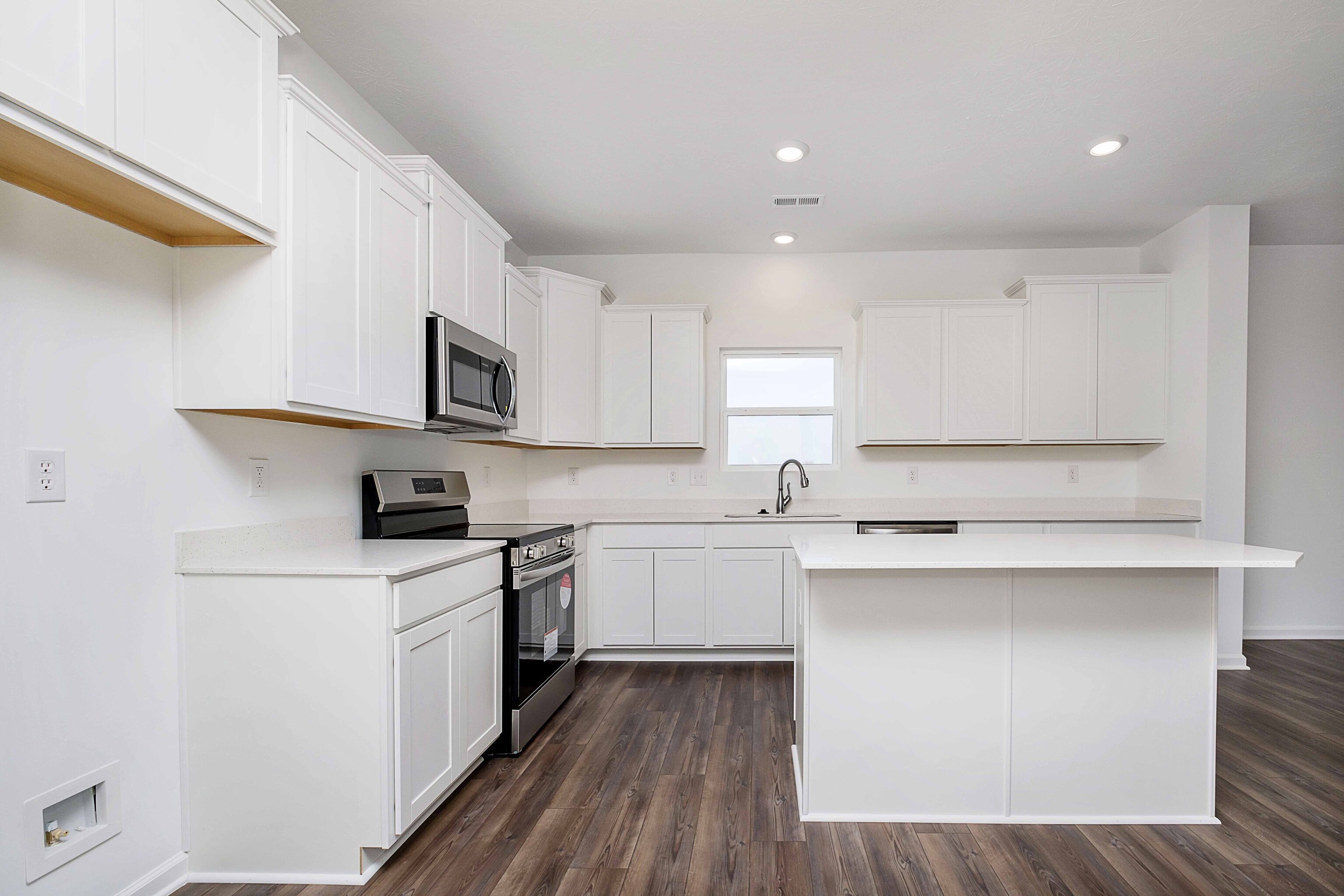 Welcome home to the Bradford, an Arbor Homes floorplan. This new home construction design features 3 bedrooms and 2 full bathrooms, 1,687 square feet of living space, and 9′ ceilings. This home is perfect for anyone looking to downsize to a ranch or begin their home journey with their first home! The full, front porch gives you plenty of space to sit and meet your new neighbors or to hold all your packages! With a 2′ side of house extension, your home will have a little extra room for you and your family. As you enter off the front porch, you are immediately met with the open dining room. If you have no need for a dining room, turn this room into a playroom for your kids or a reading room for you to finish your next book. Make this room your own! Continuing through the home, you will see the open kitchen with staggered cabinets, quartz countertops, and stainless-steel appliances. Perfect your next meal in this beautiful kitchen! Your new kitchen has an island to give you extra counterspace for your family meals. Enjoy family time all year round with the spacious great room. The great room is the perfect spot to host the family during the winter holidays and with the open concept, you won’t miss out on the fun if you are in the kitchen. For maximum relaxation, the primary suite has been completed with a 60″ shower, a double bowl vanity, and a spacious walk-in closet. Browse this quick move-in home today and contact us for a tour to explore the Arbor difference in our Wood Preserve community.
