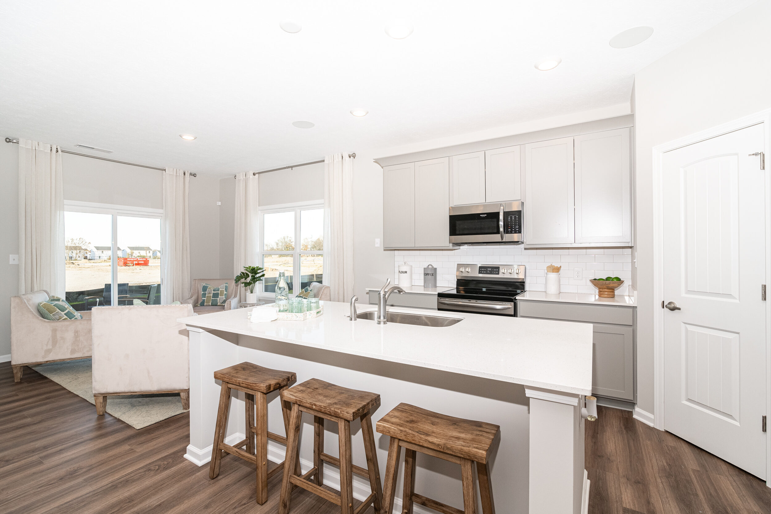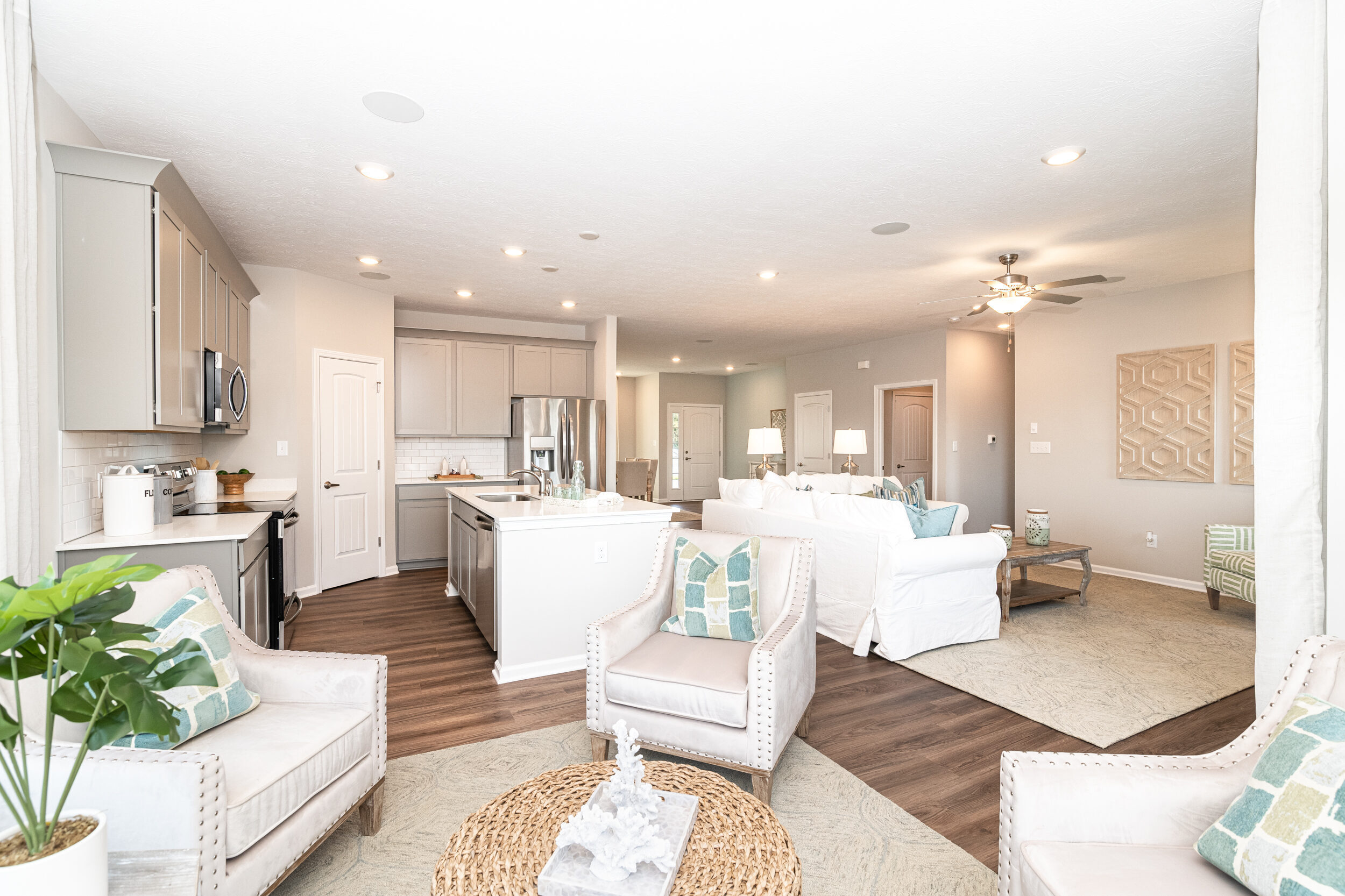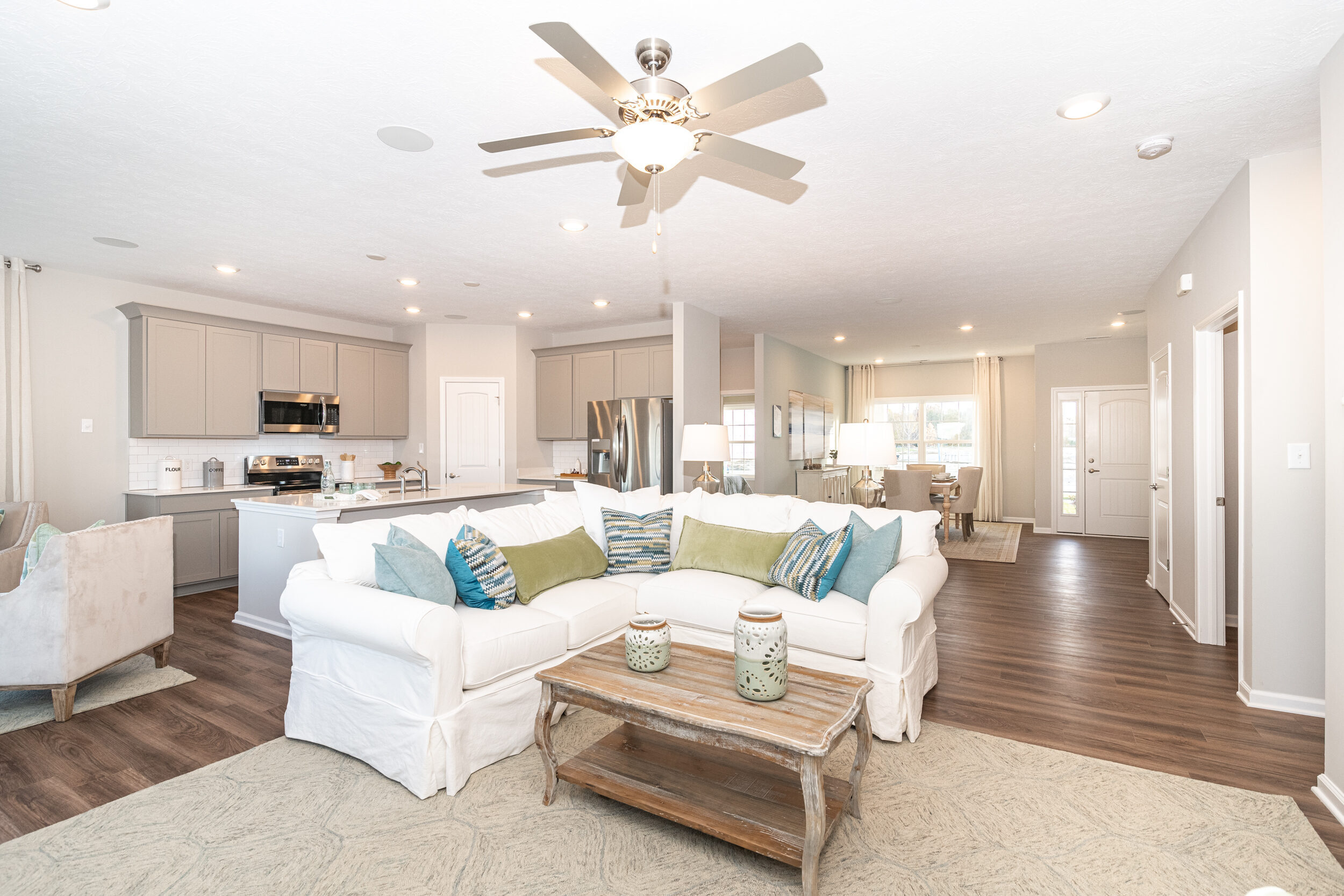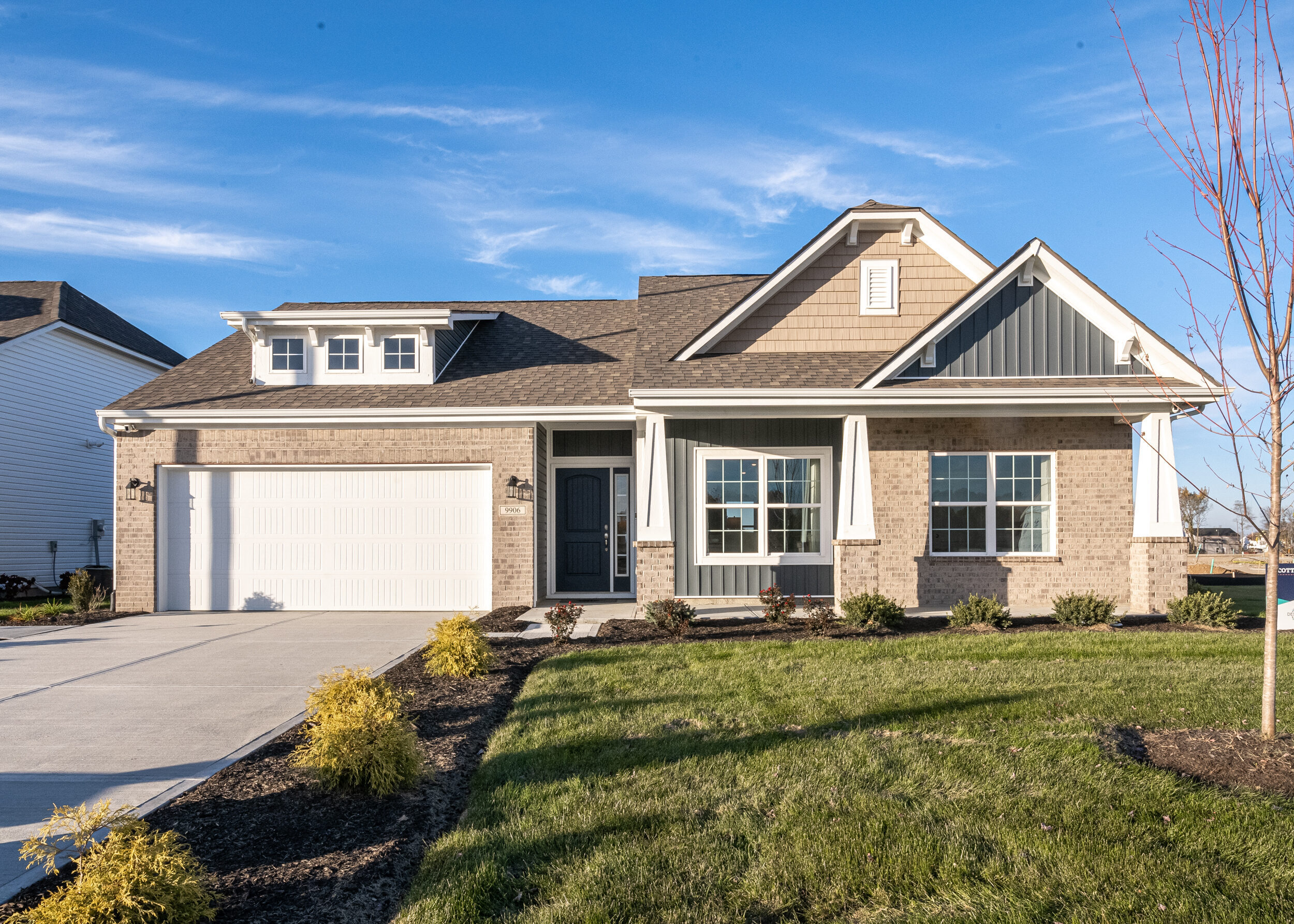 Welcome home to The Scottsdale, a Destination by Arbor Homes floorplan. Featuring 2 bedrooms and 2 full bathrooms, 1,610 square feet of living space, and an open concept living space, this new home design is the perfect low maintenance home for you. This former model home is the ideal spot for anyone looking to downsize or start their home journey! Estes Park is a low maintenance community, meaning you don’t have to take care of snow removal during the winter or lawn care during the rest of the year. As you enter the foyer, you will be amazed with the 9′ walls located throughout the home. Immediately when you step into the home, you are met with the flex room. If you host family and friends, use this space as a dining room or a separate seating area from the great room. The first bedroom and bathroom are located right next to the flex room. Move farther into The Scottsdale and take note of the open living area. Your spacious kitchen includes a 10″ deep extra-large stainless-steel sink, gorgeous Quartz countertops, and smudge proof stainless steel appliances. Don’t worry about running out of storage space with 42″ kitchen cabinets all around the kitchen. With a 4′ extension to the nook, you can put a small table for everyday meals or a spot to enjoy reading your favorite book. Down the hall is your primary suite with a curbless shower and a double bowl vanity with Quartz countertops. After a long day, this bedroom is the perfect spot to relax in. This home wouldn’t be complete without its other features, including a white washer and dryer, upgraded interior wall paint, and luxury vinyl plank flooring throughout. Welcome to your new home, The Scottsdale.