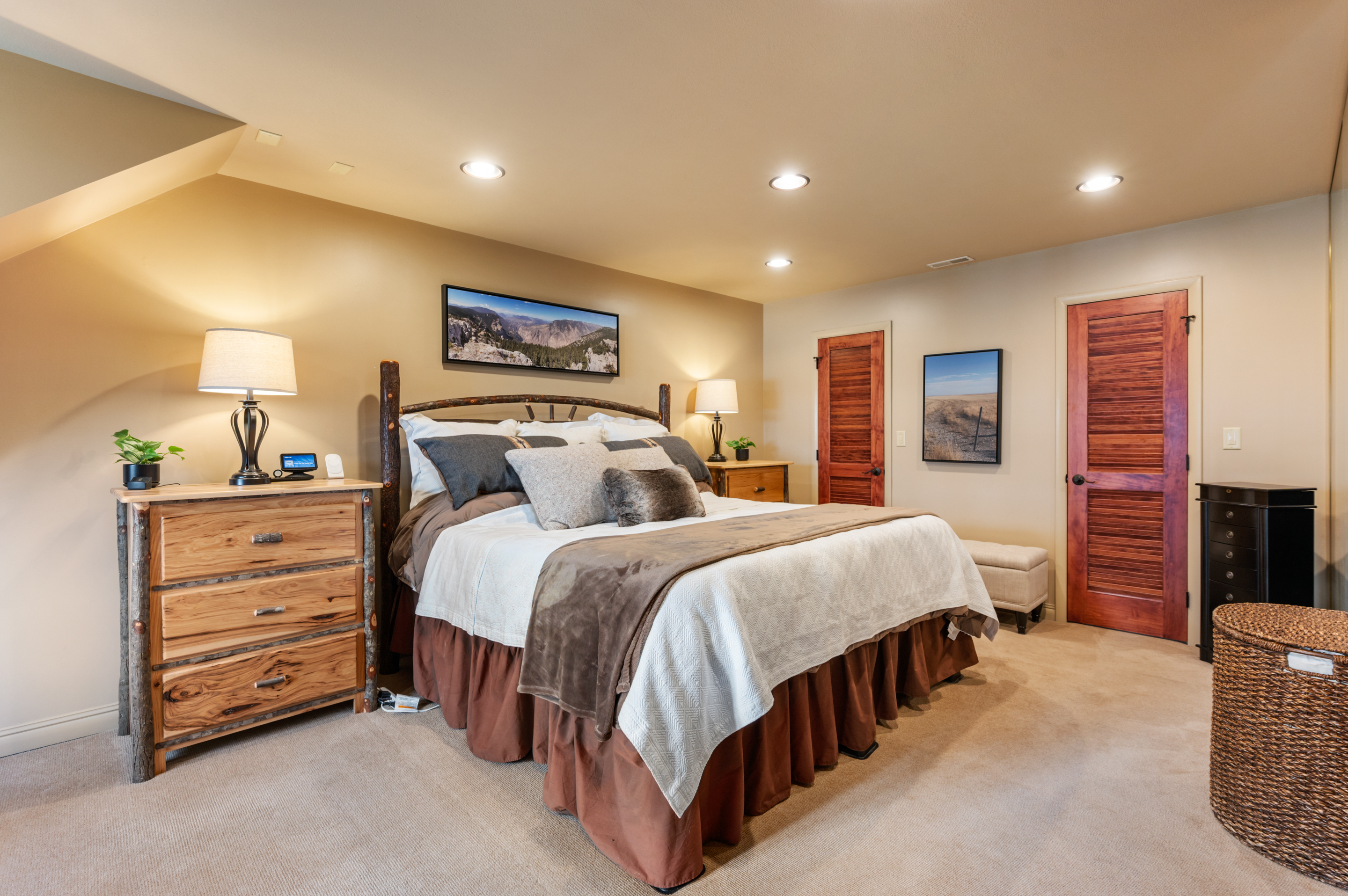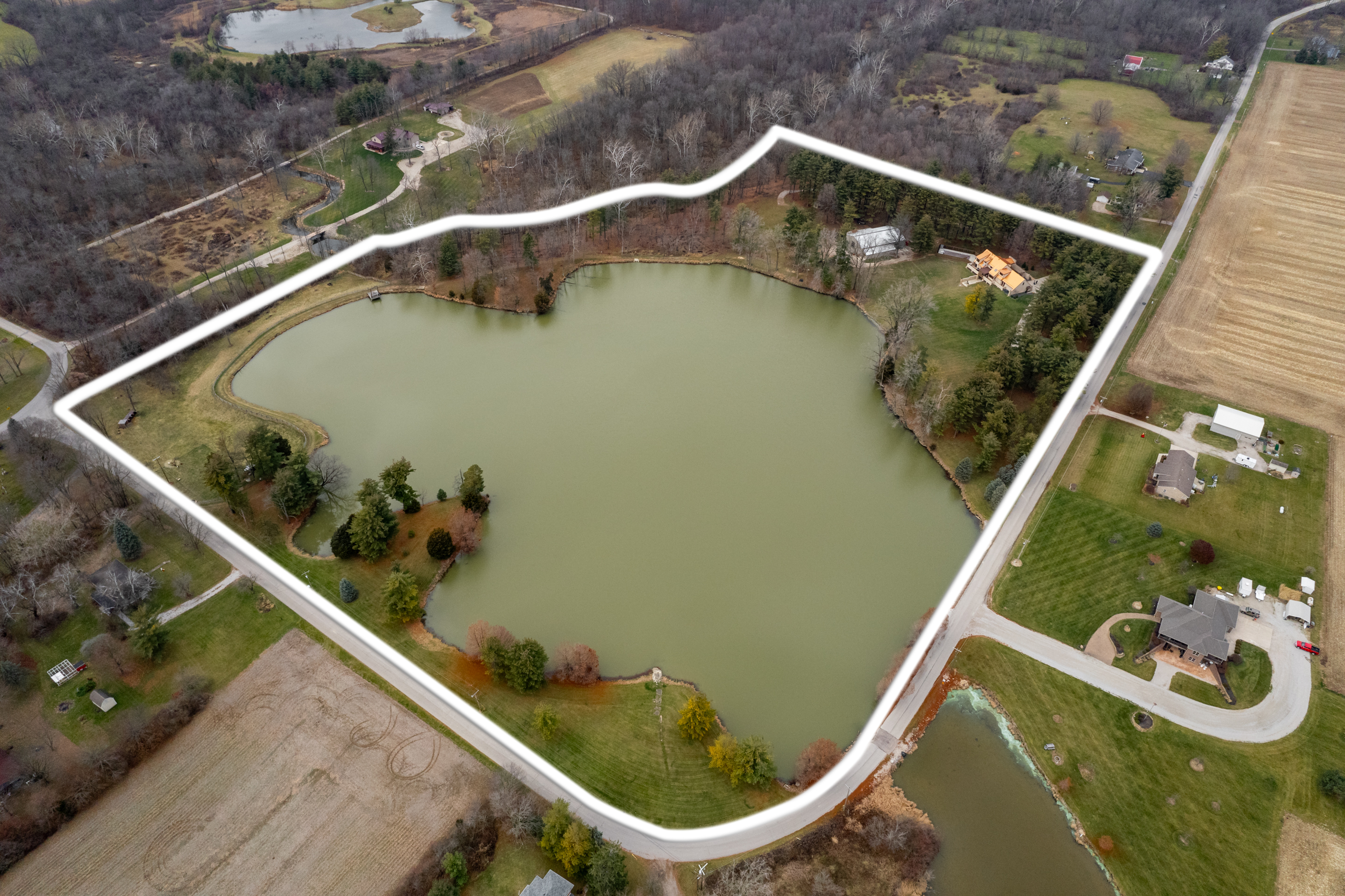 Welcome to a world of timeless elegance and refined luxury. Nestled within hundreds of pine tree’s and just minutes away from the city. Looking over the shores of a picturesque pond, this residence of 5/6 bedrooms along with 3.5 bathrooms provides not only stunning views but also an opportunity for aquatic adventures. The 15 acre pond is surrounded by hundreds of pine trees, creating a visually captivating and shady haven on the north and east sides. Enjoy the hot tub, or diving-depth pool, a unique feature that invites you to enjoy an extended swimming season, thanks to its heated design. Being on 25 acres makes having outbuilding’s, fencing and pastures designed for your specific needs and any usage much easier. Step inside to discover an unexpected treasure -an 1800s-style saloon located in the basement. This distinctive feature is a conversation starter providing a whimsical touch to the overall ambiance of the home. The unique saloon adds character, while cutting-edge home automation simplifies your daily routine. Imagine a home where lighting, temperature, and one gigabit of internet makes working from home an ease and allows more at your fingertips – or even just a voice command away. The exterior offers more than just breathtaking views; it provides practicality with ample storage, including space for your vehicles and a sizable concrete workspace for tinkering or storing winter toys. From purposefully placed windows and skylights to rock walls and ceiling beams, the architectural details make every corner a visual delight. The large, streamlined kitchen and spacious formal dining area are perfect for hosting grand dinner parties, and the landscape lighting adds a touch of drama to the property, visible even from across the lake. Embrace not only the luxury of this $1.2 million property but also the unique blend of nature, technology, and timeless design it offers. Welcome home.