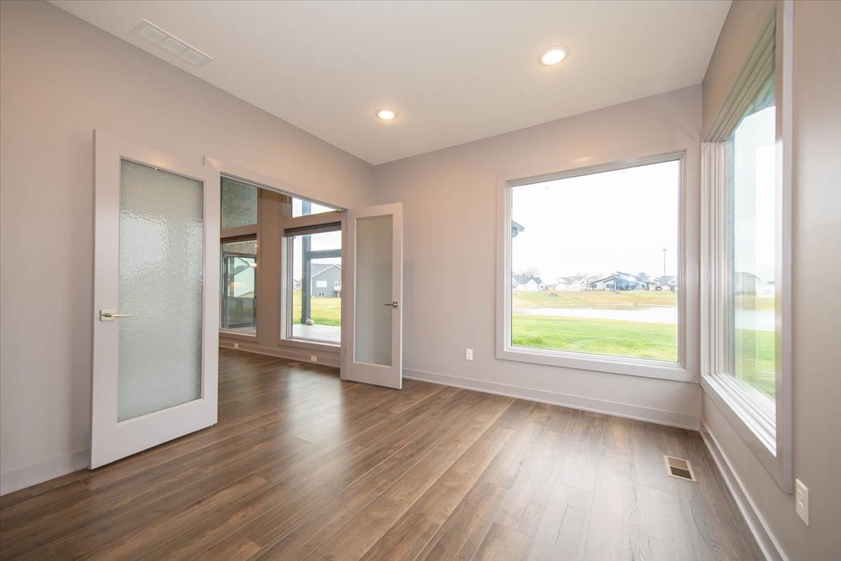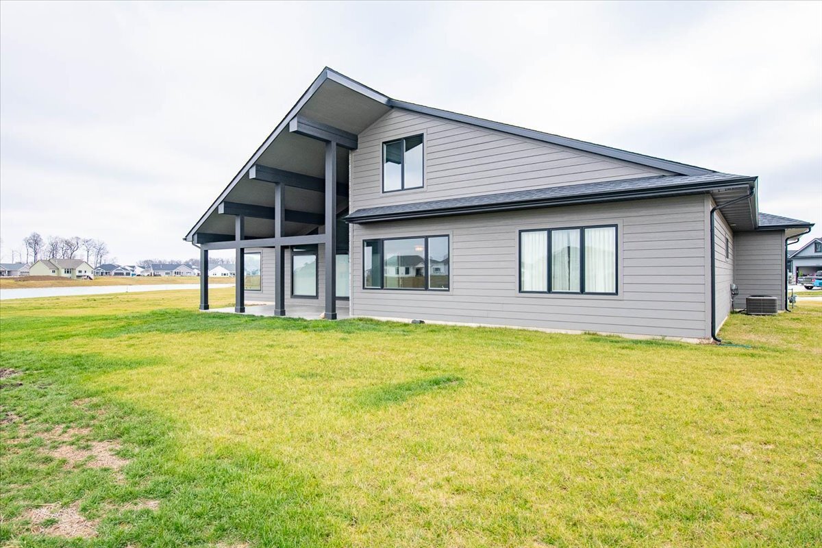 Incredible Home with Custom Touches. You will love the Open Concept with water views from the Master Bedroom, Kitchen, Great Room, and Study; as well as the Elegant Rounded Corners in the Great Room Walls. The Butler’s Pantry boasts Glass Accent Pocket Doors, matching the Glass Accent Office French Doors. The Main Level Master Bedroom boasts a Tray Ceiling, Ceiling Fan, and Custom Blackout Curtains. The Master Bath with Quartz Dual Vanity, Walk in Shower has 3 Shower Heads, and Private Water Closet. The Master Closet has Custom Built Ins that will take place of your dressers, including a locking Jewelry Drawer. The Second Main Level Bedroom can be closed off with the Pocket Door to create an In Laws Quarters. Both the 3 Car Garage and the large Covered Patio feature non slip epoxy flooring. The Great Room has a corner Gas Log Fireplace, Soaring Ceilings with Sky Lights and Wonderful Water Views. Other plusses include a Drop Zone for bags, coats, shoes off the Laundry as well as a full entryway closet. All Cabinets and Drawers are soft close technology. The Quartz Kitchen Center Island can house 5 to 6 stools for Casual Dining and Entertaining. The third Bay of the Garage can be used as a work shop with a 220 outlet already in place. Incredible Extra Storage with the BuiltIn Overhead Storage Racks in the Garage. The Tankless Water Heater is Gas and the Gas Furnace has an Aprilaire Humidifier. Nice landscaping and a lighted front walk way are already in place.