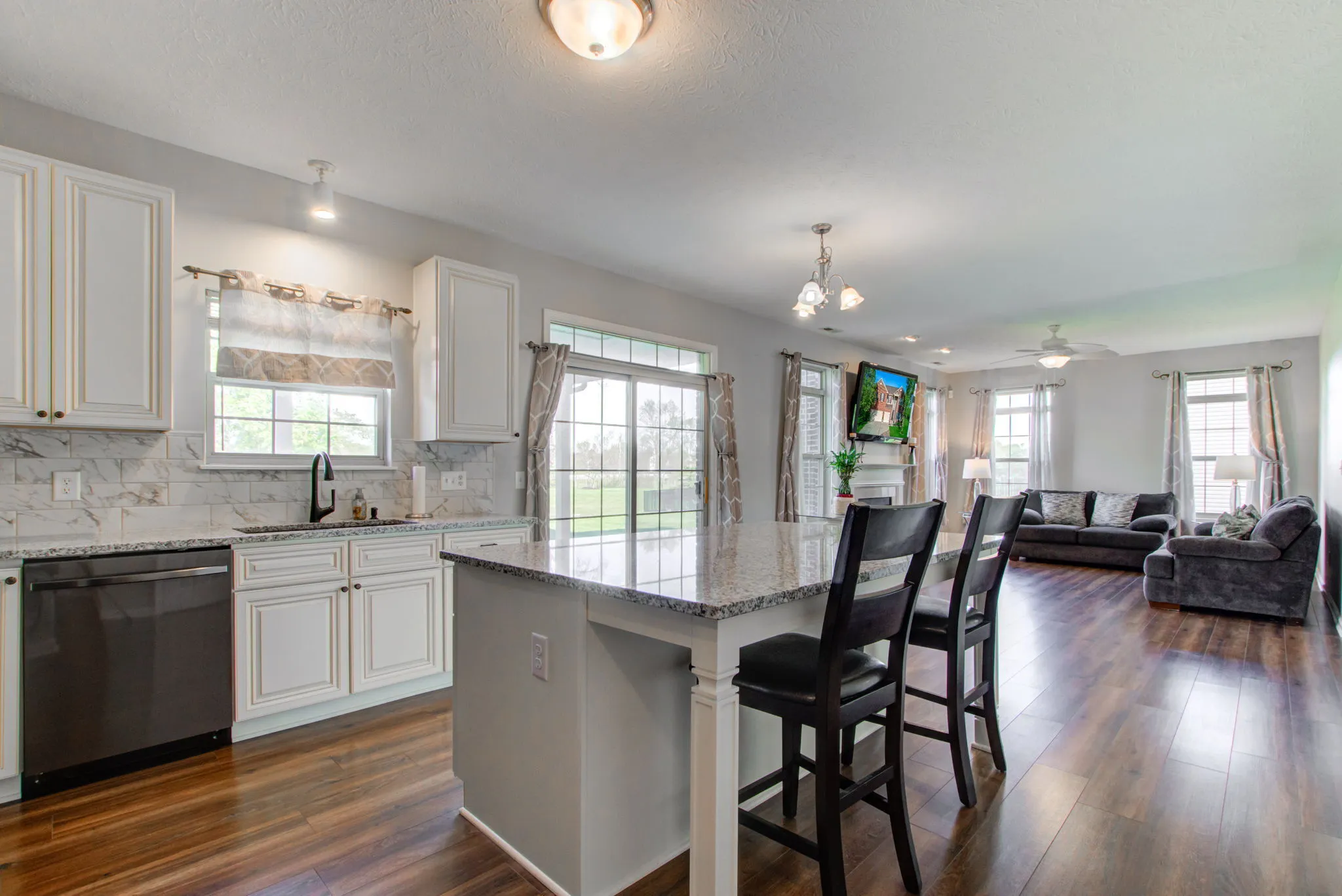 Step inside this spacious and meticulously maintained home in Bay Creek at Geist. This gorgeous home in the heart of McCordsville features a 1st floor bedroom with bath. You will love the fully remodeled kitchen complete with “new” stainless-steel appliances, soft close drawers and doors on cabinets, and granite countertops. Spacious living room with wood burning fireplace makes it perfect for entertaining family and friends. This home also offers an office/den, formal dining room, and new flooring throughout the entire 1st floor and a 3-car garage. Upon entering you will notice the high ceilings that adds to the appeal of this home. Upper level offers large bedrooms and an impressive primary suite featuring a soaker tub and granite tops to the dual vanity. And don’t forget the expansive walk-in closets. Lying in a quiet neighborhood you will find the peace of being on your own pond, perfect for watching fireworks in the summer. Neighborhood offers a community swimming pool and a playground as well, just steps away from trails and neighborhood amenities. Look no further- You are Home!