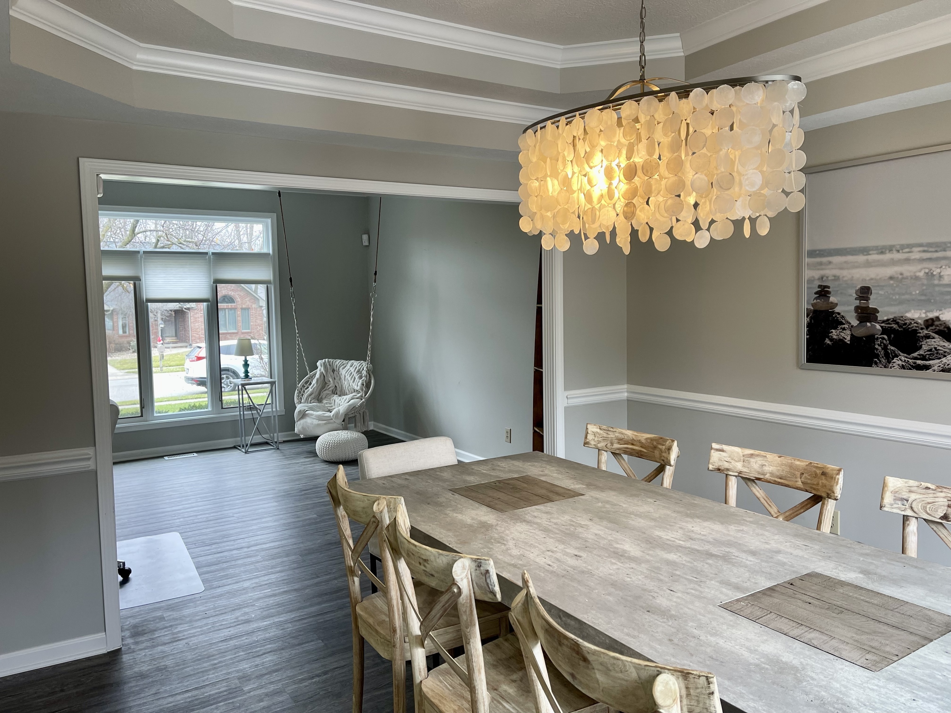 Come see this custom built two-story with 4 bedrooms, 2.5 baths, finished basement with in-ground swimming pool and hot tub! Very neutral decor with wonderful floor plan. New hardwood laminates throughout main level. Large two story entry welcomes you as you walk in. Traditional floor plan with formal living room and dining room. Large updated kitchen that is a delight. Stainless steel appliances, granite counters, large center island, pantry & loads of cabinets and counter space for starters. Breakfast area overlooks family room with gas log fireplace plus a huge bay window that overlooks the amazing hot tub and in-ground pool. Multiple sitting areas outdoors with fencing and landscaping for privacy. New pool cover and motor for cover as well as a new pool liner in 2022. Pool heater and pump are less than 4 years old. Upstairs you will find 4 nice size bedrooms including the owners suite with two very large walk-in closets, double vanity, garden tub, and separate shower. (Walk-in attic storage space accessible from owner suite) Heading to the basement you will find a nice work bench in the small unfinished area and an awesome gaming area for a little getaway. Great location as the home is within walking distance to Eagle Creek Park, easy access to interstates and shopping. Schedule your showing today before this beauty is gone!