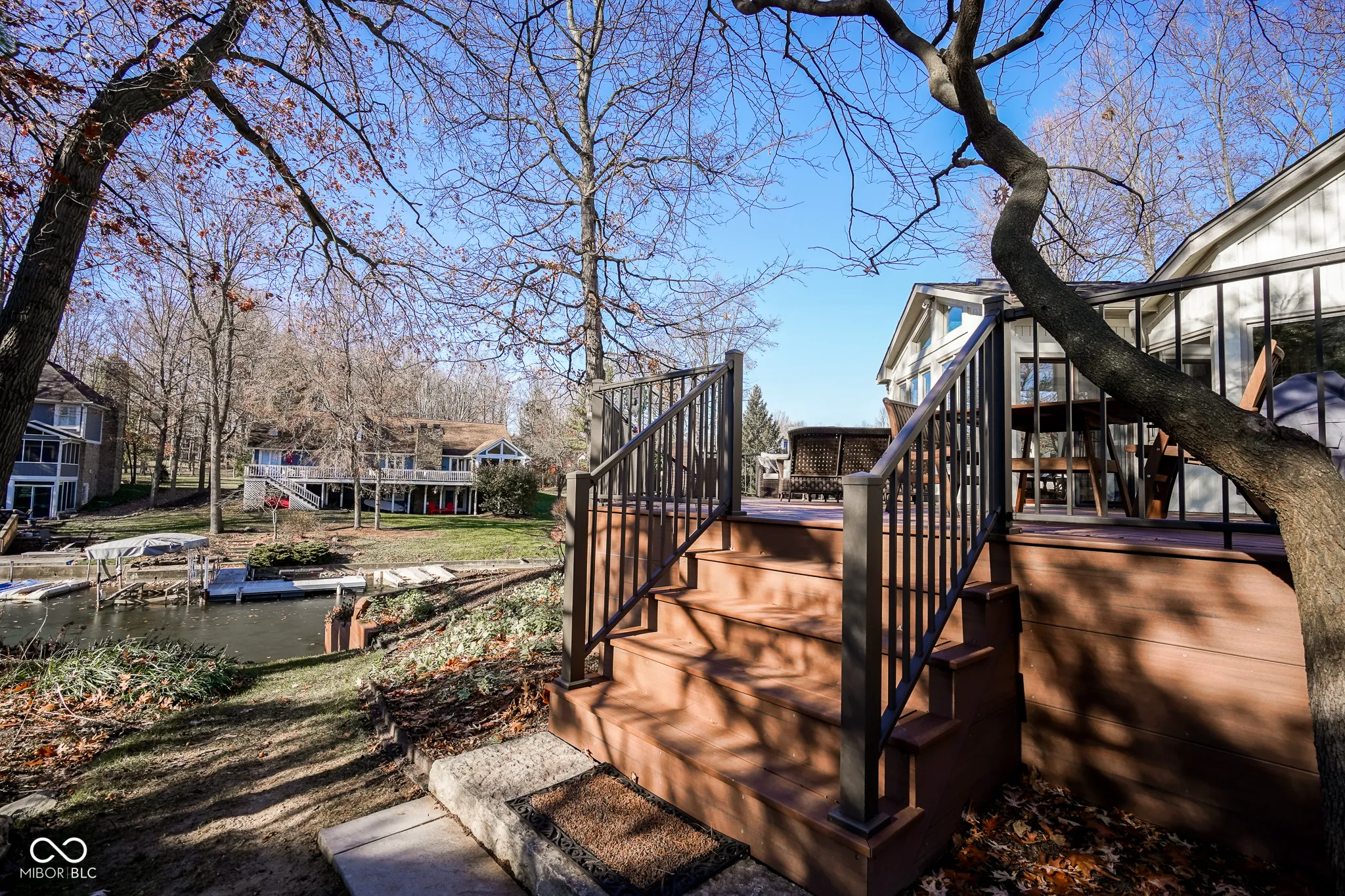 Exceptional Geist waterfront living nestled on a wooded, walk-out cove homesite in sought-after HSE schools! Ideally situated with 105′ of direct waterfront access, enjoy stunning water views & evening sunsets from both levels of this desirable & inviting ranch. Beautifully remodeled, this 4-bedroom, 3.5-bathroom home includes more than $300,000 in extensive updates throughout. The gourmet kitchen features raised 10′ ceilings, custom cabinetry & a center island, quartz & natural-finish artisan island top, induction cooktop & range hood, built-in stainless appliances & a beverage center. Wake up to water views in the spacious Owner’s Retreat with tray ceiling, bay window sitting area & a fully remodeled spa-like bath with custom cabinetry, free-standing tub, and an expansive shower. Relax in the sunroom, enjoying year-round water views with windows on all sides. The Great Room is highlighted by a statement stone fireplace, custom built-ins & hand-scraped hardwoods. You will love the soaring ceilings & natural light! Generous & oversized bedrooms throughout, one main level bedroom includes double doors making it ideal for a private home office. Walk-out lower level offers direct access to the water, and is perfect for entertaining with a wet bar, living room & cozy stone fireplace, billiards & exercise rooms, and a private guest suite. Outside, a new composite deck with gas line & grill, and spacious walk-out patio with awning provide the perfect spots to enjoy the water and well-manicured landscaping. Expanded private dock area includes lift & canopy frame, and has room for 2 jet-ski docks. The finished garage features a keyless entry, a workshop area, service door, and access to overhead attic storage. You’ll love this timeless blend of thoughtful updates & inviting charm. Don’t miss the opportunity to make this waterfront retreat your own!