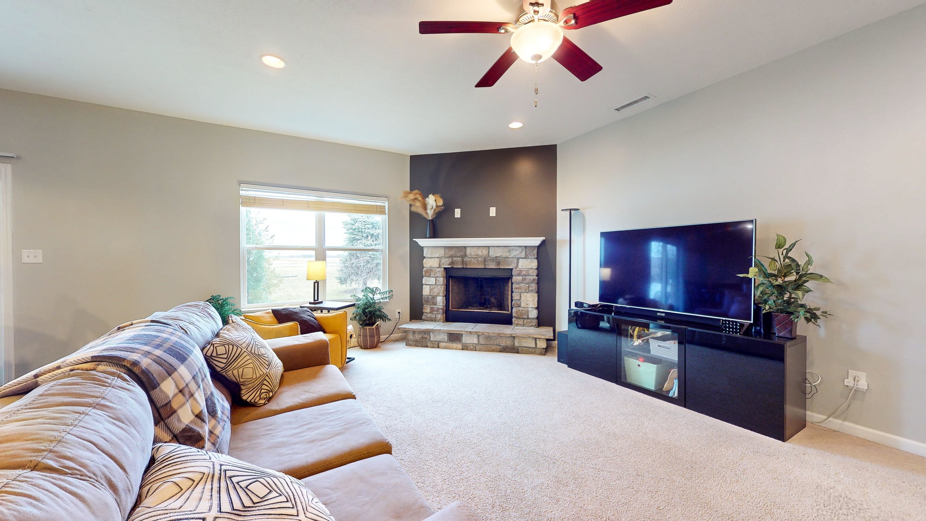 There’s so much to love about this spacious 3 bed, 2.5 bath home with a bonus room in Avon! Explore this home via interactive 3D home tour, complete with floor plans, video & more. Open concept floor plan great room features a cozy, wood-burning fireplace. Kitchen includes center island, breakfast bar, & stainless steel appliances. Enjoy high ceilings and large windows throughout the main level. Primary bedroom includes a private full bathroom with double sinks, whirlpool tub, & walk-in closet. Upper level bonus room with half bathroom could be used as a private, 4th bedroom. Additional storage space in the attached 2-car garage with 4 foot bumpout. Covered patio offers a lovely location to relax outside. Great location offers convenient access to nearby parks, schools, and the Bicentennial Trail only a few feet away!