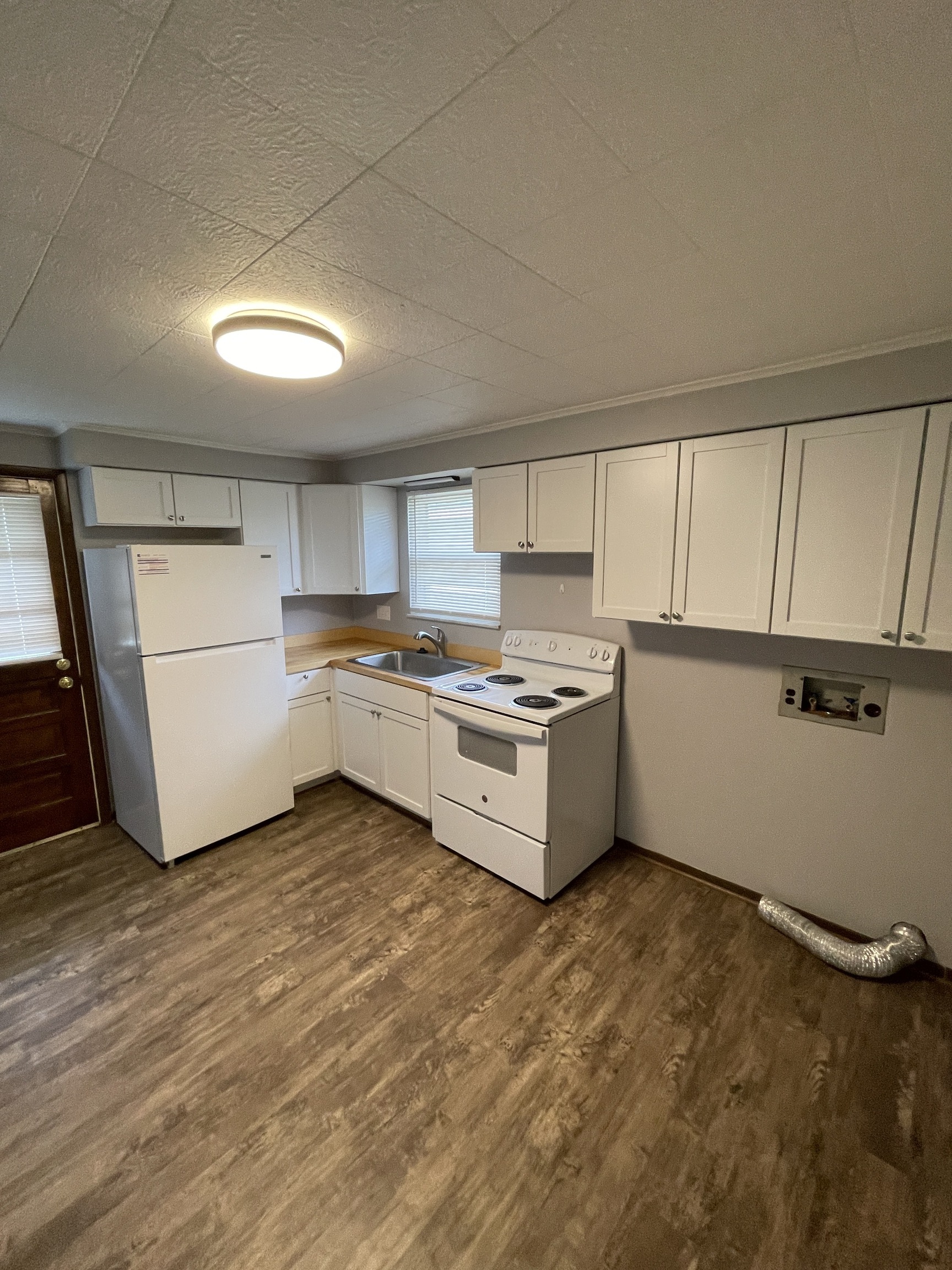 Cool cozy 2-bedroom 1 bath duplex home now available in Fortville Indiana, this beautiful brick bungalow styled home has been updated, clean, and modernized for comfortable spacious living. Fresh carpeting an inviting living space large bedrooms with ample closet space, affordable base board heating wall AC units, added storage in linen closet, laundry connection, a furnished kitchen with appliances being placed at move in. Starting fresh this property maybe what you’re looking for schedule your tour today!