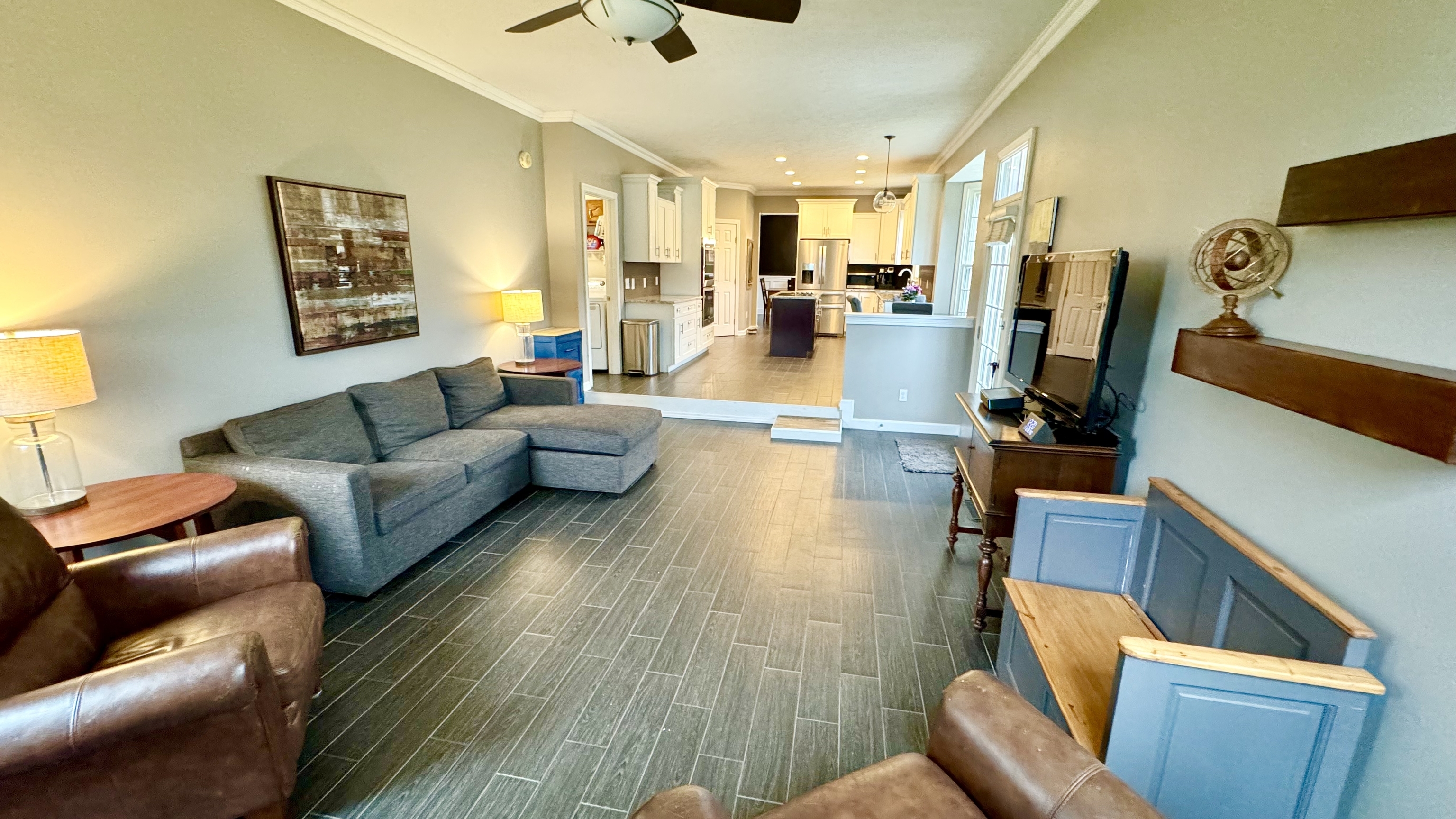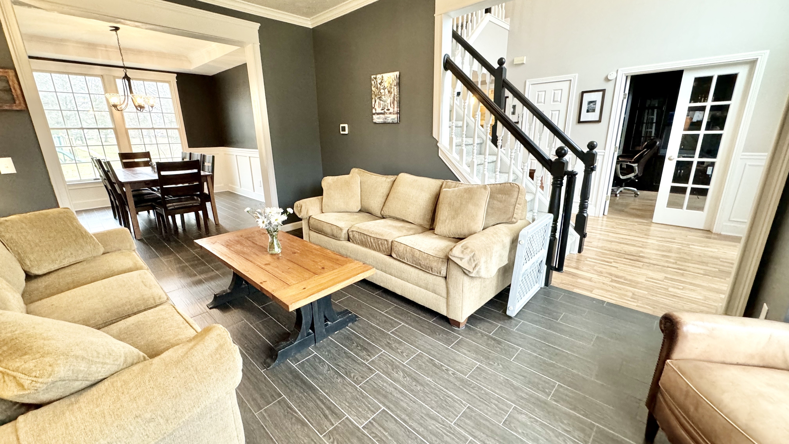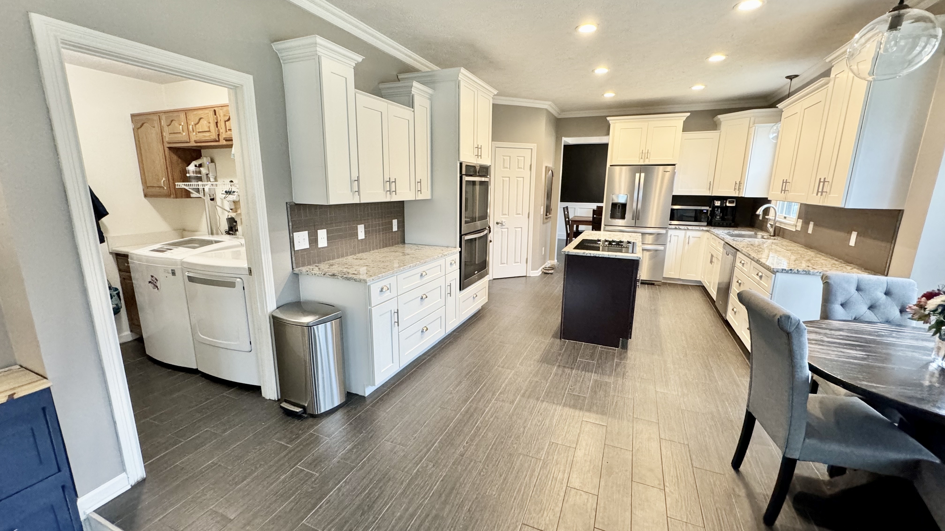 You have found the ONE! Don’t miss this fully-updated 4 bedroom, 2.5 bathroom home on a .64 acre lot with a big yard and finished basement with a workshop and secret room! Can’t beat this location just minutes from Eagle Creek Park & Reservoir, I-465, downtown, & the airport! HOA includes a neighborhood swimming pool. Loads of updates in the past few years: All new kitchen with stainless steel appliances, new flooring, renovated master bath and half bath, finished basement with built-in storage and a secret room behind a bookshelf, large workshop area in the basement, new roof, fresh exterior paint, new water heater, fresh paint on the deck, and more! Updated Kitchen features a breakfast area, center island, walk-in pantry, and is open to the family room with a woodburning fireplace. Also on the main floor is a large office with tons of built-in bookshelves and cabinets, a formal living room and dining room, laundry room with included washer and dryer, and the 2-car finished garage with attic storage. In the basement, enjoy a huge rec room with built-in storage cabinets and reading nook, plus extra storage. Upstairs, you’ll find the large master suite with double vanities, shower, soaking tub, walk-in closet, and vaulted ceilings. 3 more bedrooms are good-sized and the 2nd full bath upstairs has double sinks and a seperate water closet. In the backyard, you’ll find the included playset and storage shed. Invisible pet fence covers the front and back yard. Don’t let this one go- move right in with immediate possession at closing!