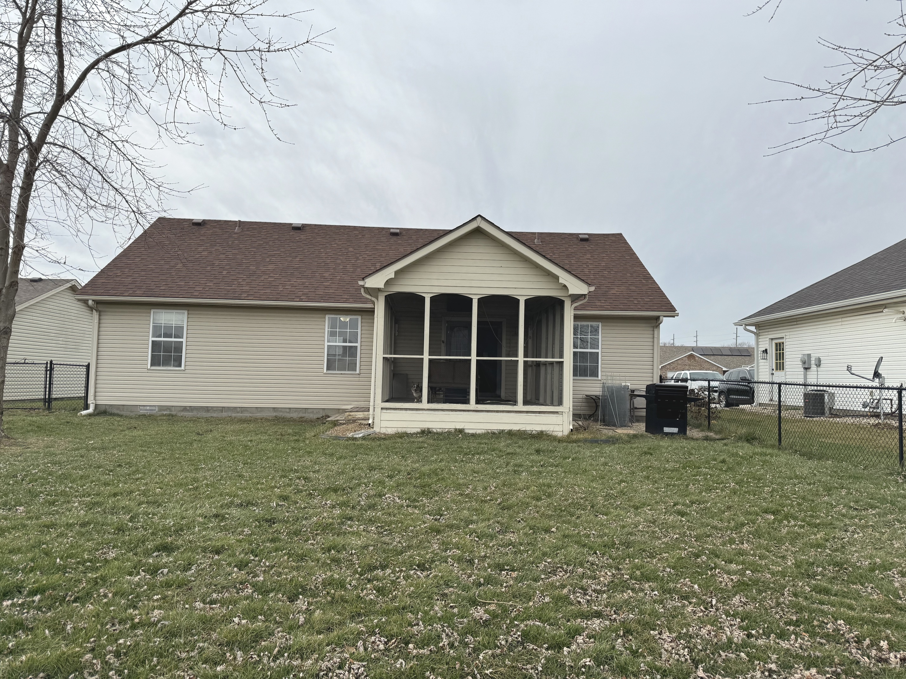 Sit in the screened in back porch and enjoy the outdoors without the bugs! Perfect home with low maintenance living. Vinyl sided ranch with 3 beds, 2 baths (master suite) and open concept great room, kitchen, dining. Laundry on the way to your 2 car garage. Brand new full HVAC in 3/23. Your home sits on the cul-de-sac with additional on street parking. The backyard is already fenced for your pets and/or kids and there is a mini barn for additional storage. Bedrooms are a split plan with your great room, kitchen and dining between. Don’t sleep on this one, it’s a great home.