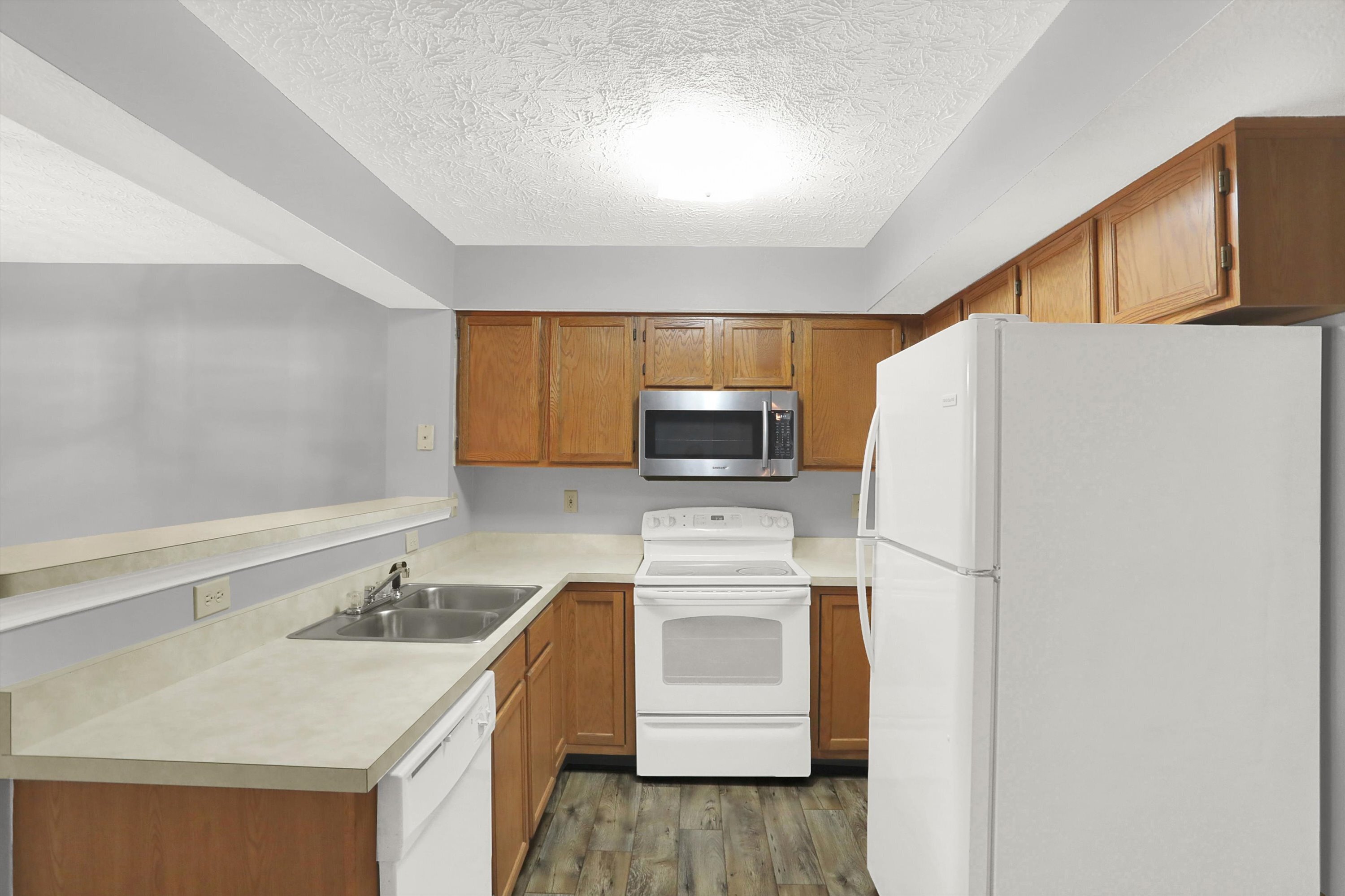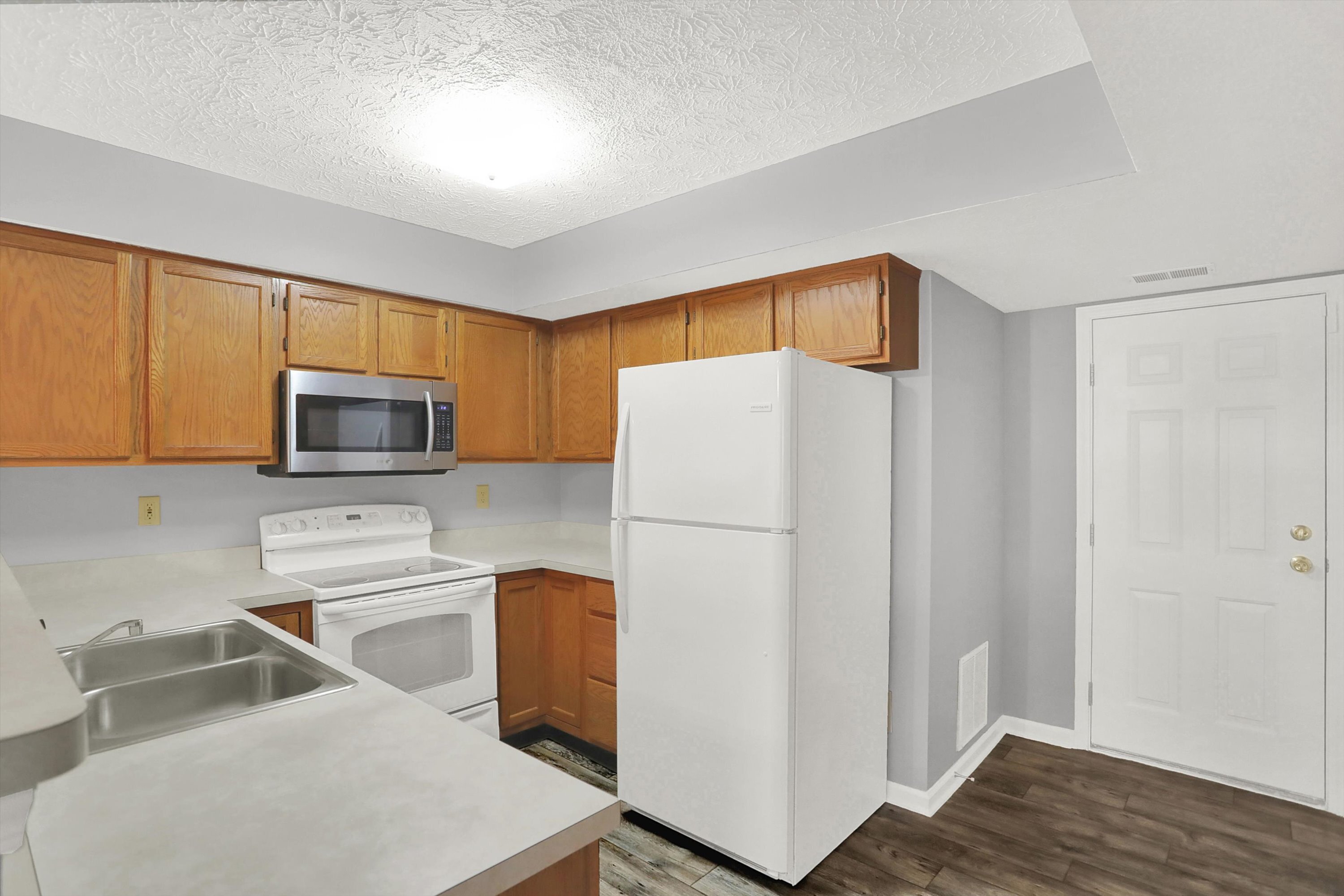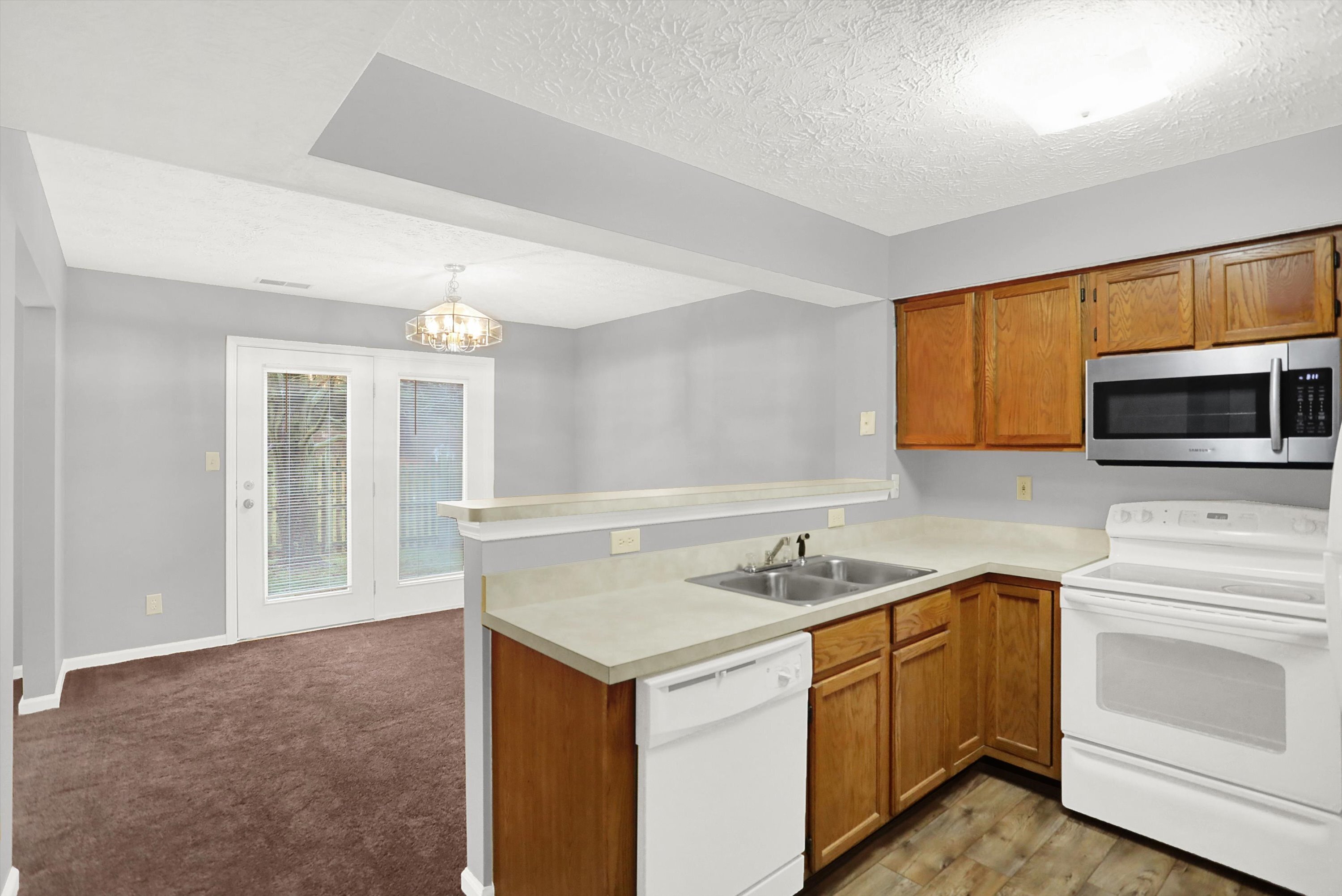 This beautiful 2 stories family home is located in most desirable neighborhood in Pike Township. Has lots of living space.3 Bedrooms.3 bathrooms.2 Cars garage.Master suit with walk in closet. Kitchen with over sized dining room. Huge living room with a wood burning fire place. Large laundry room.Vaulted ceiling.All electric. Newer HVAC Furnace with complimentary built in heat pump to help you save money on your utility. Fresh New Paint and Carpet. Fenced back yard. A Wonderful Brand New Roof. Mature trees in the front and back that you will greatly appreciate in the summer. Front porch and back patio. Swimming pool with a clubhouse.