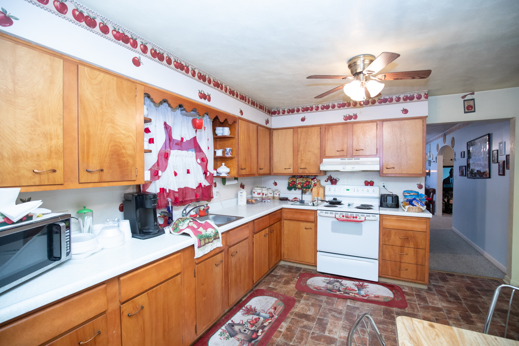 8 room, 3 bedroom, 2 bath home with 1,755 sq. ft. plus carport, plus 12×16 storage shed. House has electric heat plus gas fireplace in family room. All appliances stay plus 3 window air units and curtains. Blacktop drive and a corner location! Just south of Vernon.