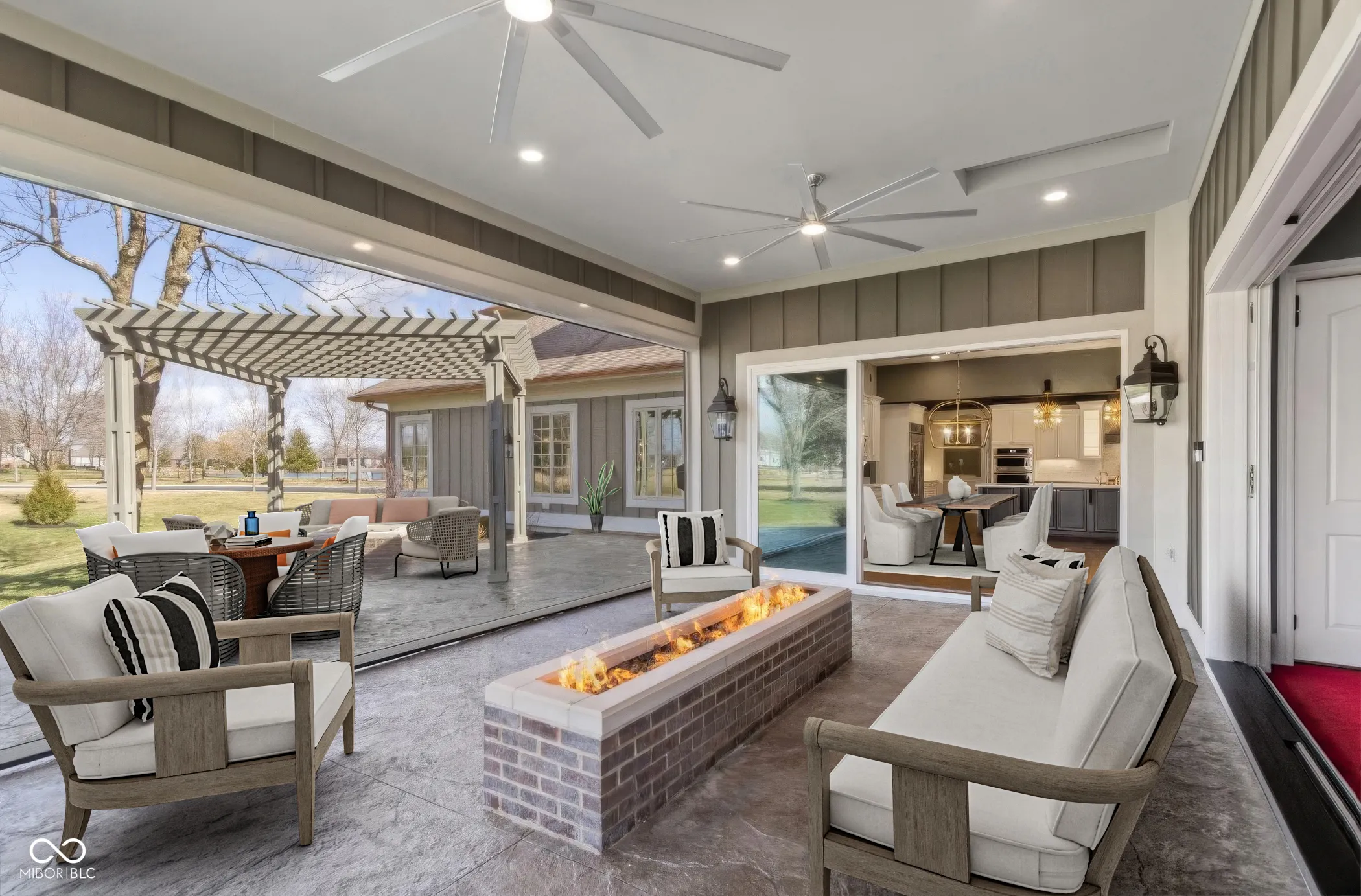 Welcome to your dream home in Carmel’s prestigious west side! Nestled within an exclusive gated community, this unique property offers unparalleled privacy and luxury living. Originally a charming barn, this home has been meticulously transformed into a modern farmhouse retreat, boasting over 10,000 square feet of exquisite craftsmanship and design.Step inside to discover a warm and inviting atmosphere, perfect for both entertaining and family gatherings. The main level features two primary suites, along with two additional bedrooms, each with their own ensuite bathrooms. A formal dining room sets the stage for elegant meals, while the stunning gourmet kitchen is a chef’s delight, equipped with luxury amenities and a spacious island that opens into the expansive great room. Admire the wood coffered ceiling and statement pendant lights as you cozy up by the gas firepit or enjoy a game of basketball on the indoor court. With over 9 garage spaces, car enthusiasts and hobbyists alike will find ample room for their vehicles or desired workspace.Take the glass elevator to the upper level, where you’ll find a private theatre, a secondary kitchen, and a separate luxury apartment ideal for guests or an au-pair. A huge rec room offers endless possibilities for entertainment and relaxation. This extraordinary property truly stands out in Carmel’s real estate market, offering a rare blend of charm, sophistication, and modern amenities. Don’t miss your chance to experience the pinnacle of luxury living in Carmel!