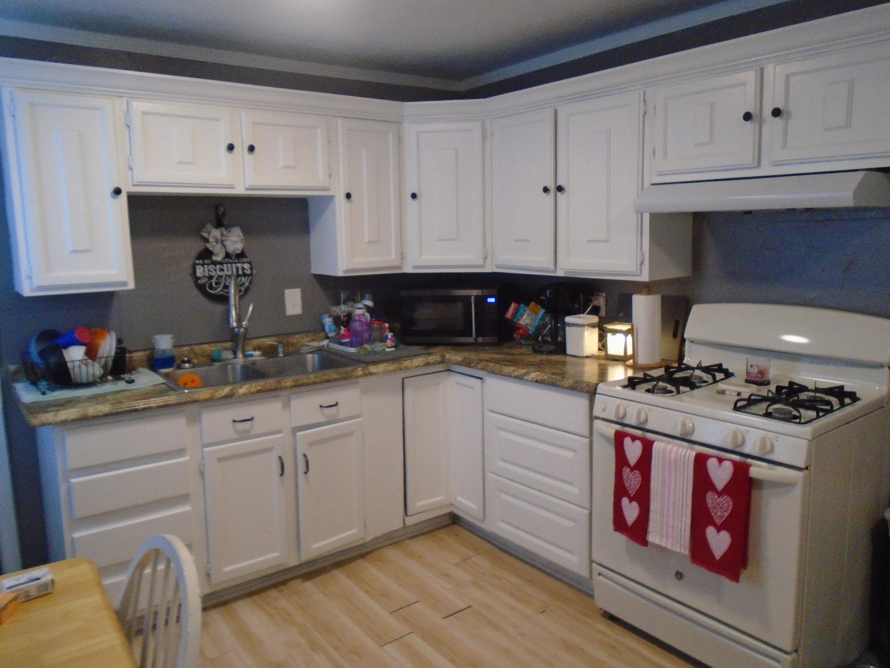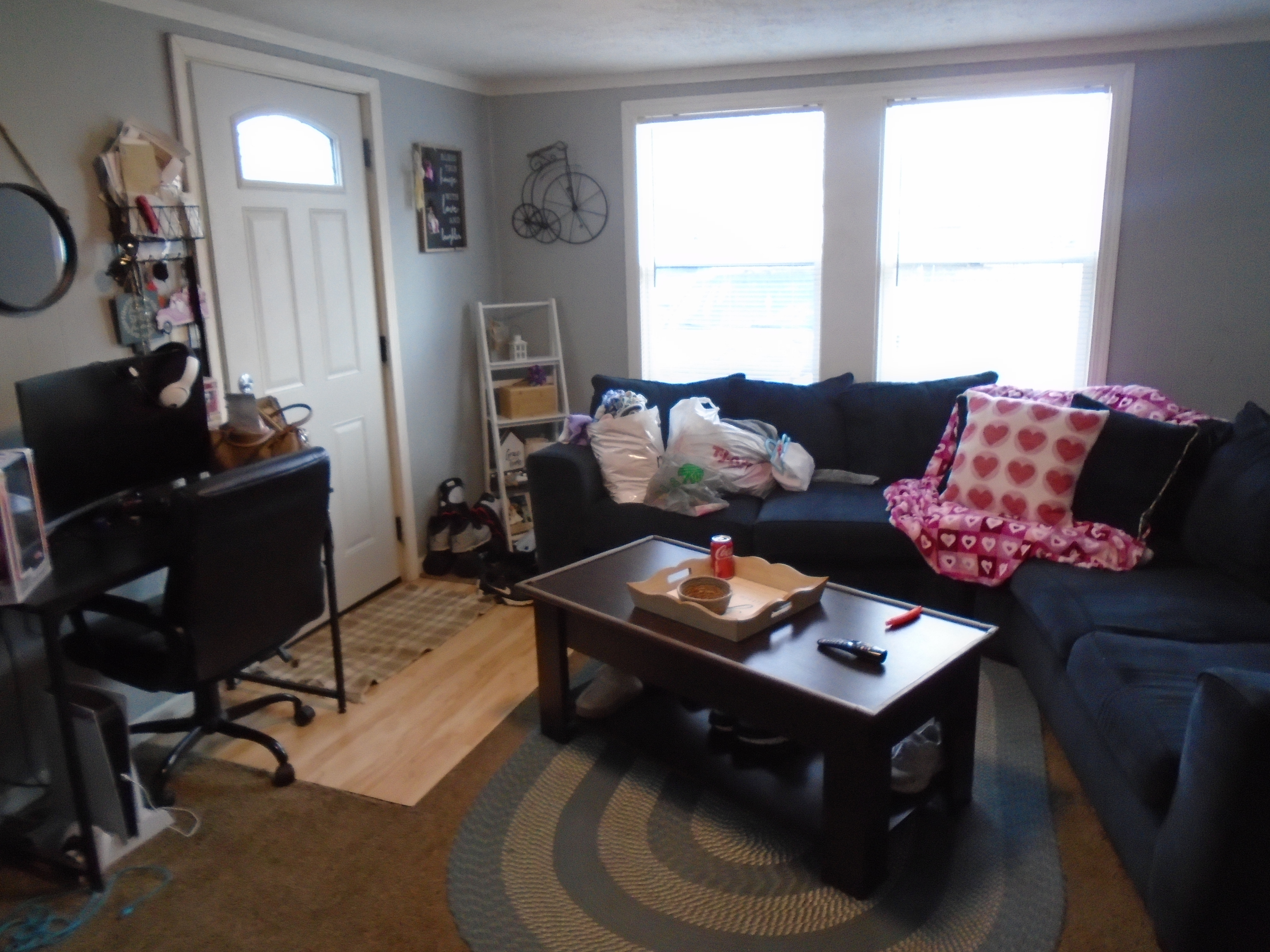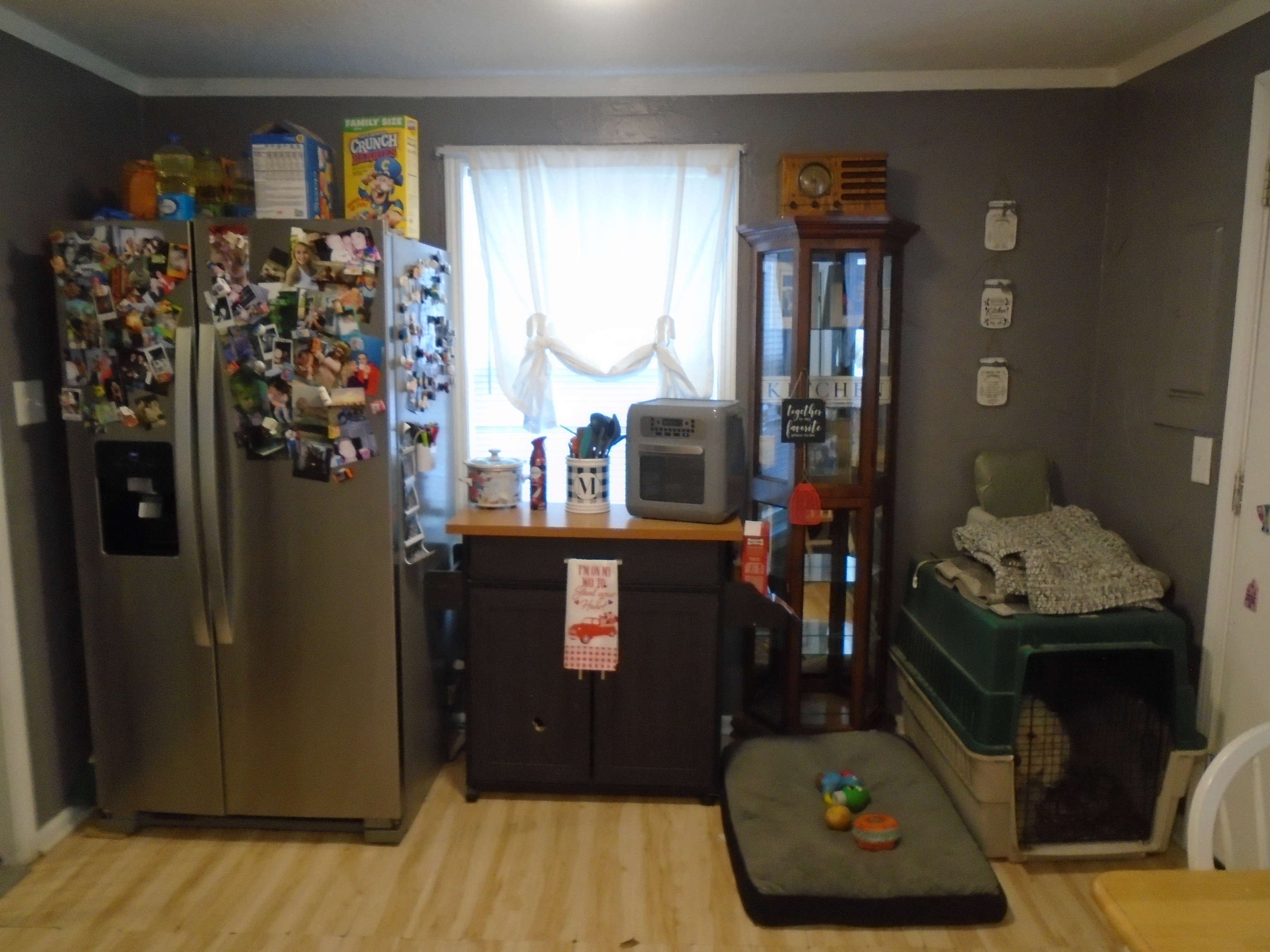 3-BR, 1 bath house! Big eat-in kitchen, and generous area for laundry. The big 13×12 3rd BR is upstairs. Plenty of off-street parking. Yard is fully fenced and includes two mini-barns.