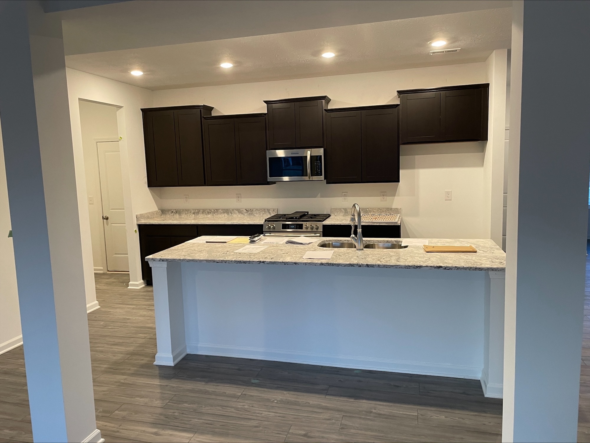 Welcome to the Norway, a two-story floorplan by Arbor Homes. Upon arrival, you will be greeted by beautiful brick and vinyl siding with a spacious three car garage with keyless entry. Enter the home into the foyer on your left is the formal dining room with vinyl plank floors and natural lighting from two 5′ tall windows. Through the foyer into the kitchen are smudge free stainless steel Frigidaire gas range stove, microwave, and dishwasher. 36/42-inch tall staggered wall cabinets, small colonial crown. The breakfast bar is perfect for entertaining and includes a 9” deep stainless-steel sink, counter tops are 3 cm quartz. The 7×6 pantry with vinyl flooring provides lots of extra kitchen storage. Attached to the kitchen is the mudroom that also has access to the garage. Continuing through the kitchen to the nook will lead to a sunroom all with vinyl plank flooring. Outside of the sunroom sliding door is a 10×12 stoop with electrical outlet for future hot tub installation. Back into the home through the great room and to the hall; on the right is the den with carpet flooring and closet, at the end of the hall is a full bathroom with tub/shower combination, and to the left is the stairwell with closet storage space underneath. Taking the stairs up to the second floor to the common area and on the right is the loft with carpet flooring and two windows. Back into the common area, the first door on the right is the laundry room with vinyl flooring and one storage shelf. The next room is the primary bedroom suite with single step ceiling and prewire for fan. The master bath has a deluxe garden bathtub, separate shower, standard toilet, double sinks and walk-in closet. Next are two more bedrooms with individual walk-in closets and a bathroom in between the rooms with standup shower and bathtub combo. Home also has a 92% efficient gas furnace, central air, and digital thermostat, and 50-gallon gas water heater.