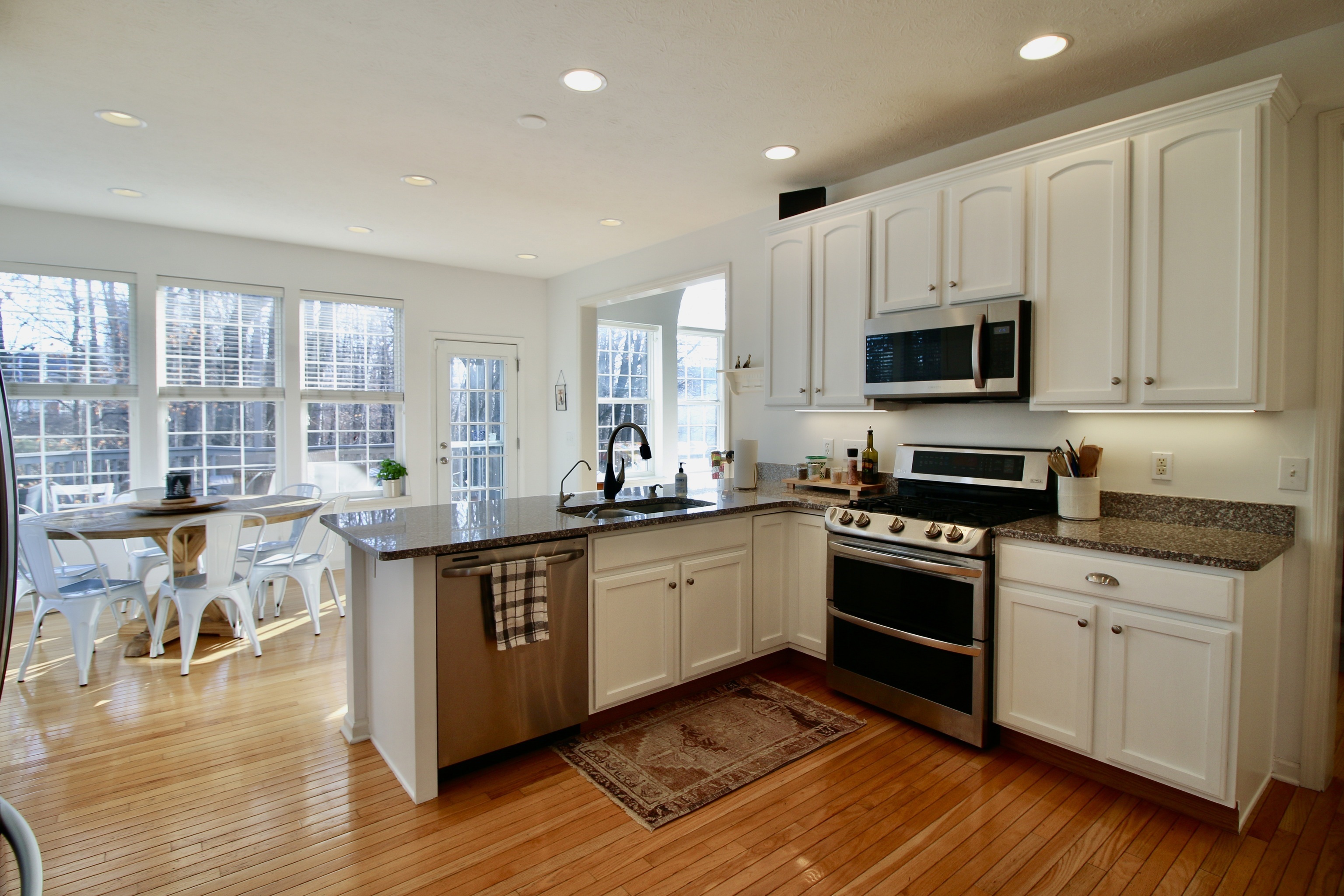Welcome home! You will have all the space you need in this beautifully updated 4 bedroom, 3.5 bathroom home located on a large wooded lot. The spacious eat-in kitchen has freshly painted cabinets, granite countertops and some newer appliances (fridge ’22, microwave ’21). The double fireplace connects the family room and sunroom, both of which give great views of the fully fenced backyard. The large windows throughout, offer an abundance of natural light. On the main floor you will also find a mudroom, an office space, a dining room and a front room with custom built-ins. Beautiful hardwood floors run throughout the main level. The double staircases lead upstairs where there is newer carpet throughout (’22). Upstairs, you will also find the Master suite, 3 additional bedrooms and a main hallway bathroom with double sinks. You can decompress and relax in the large Master suite! It boasts a generous walk-in closet and sizable ensuite – complete with double sinks, shower, soaking tub and separate water closet. The finished basement has plenty of room in which to play and unwind, while also giving you a flex room that could be used for guests, a home gym or additional office space. The custom laundry room, bathroom and storage areas are also found downstairs. The tree-lined backyard has the feeling of a private retreat. The deck has been freshly covered with DeckCorrect (’22) and a furnace (’23) and water heater (’21) have recently been installed. This wonderful family home also comes with access to the community pool and playground. Schedule a showing today!