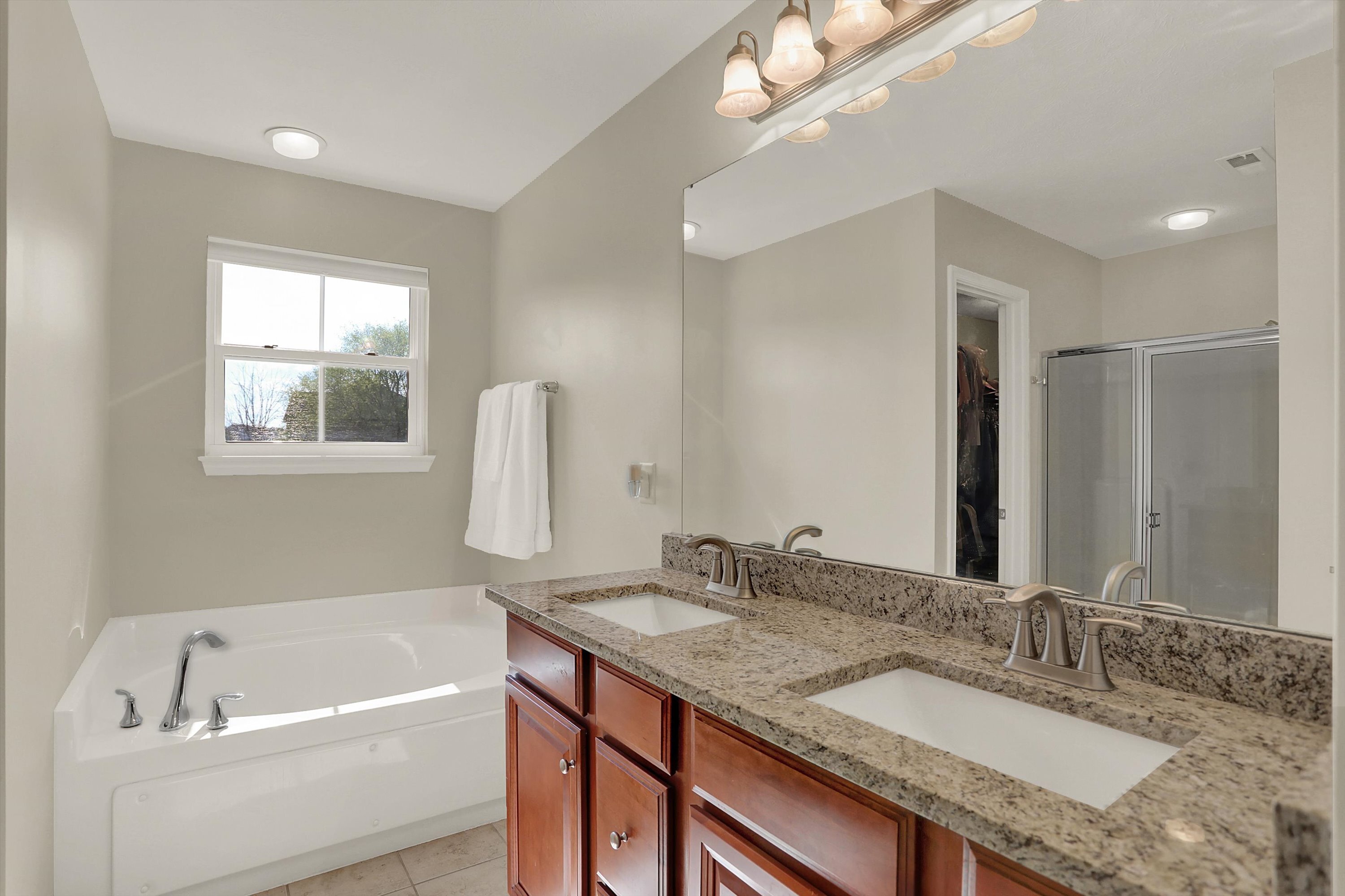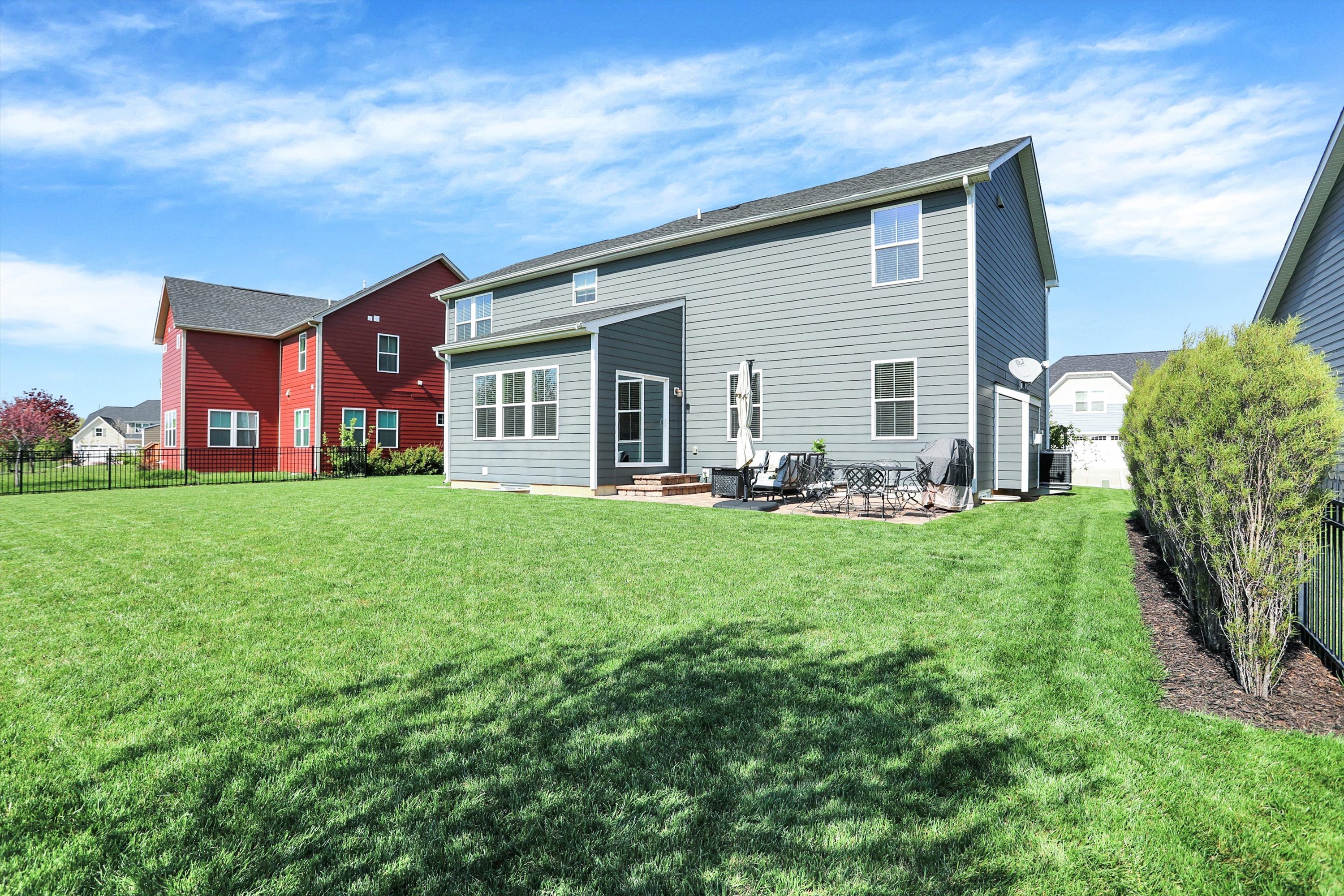 Spectacular opportunity in desired Sanctuary at 116th under $600,000! This Ryan built two level home constructed in 2012 has been meticulously maintained and still feels like new. The home boasts a large great room with gas fireplace, formal dining room and living room on main level. Hardwood flooring through much of main level. Custom gourmet kitchen with large center island, plenty of granite, and a wonderful sun room breakfast area. Convenient upper level laundry room. Master bedroom offers large bath with soaking tub and separate shower. Updated patio….private backyard setting perfect for entertaining and relaxation facing private line of mature trees. Finished basement with large rec / bonus area. Hurry, this will not last