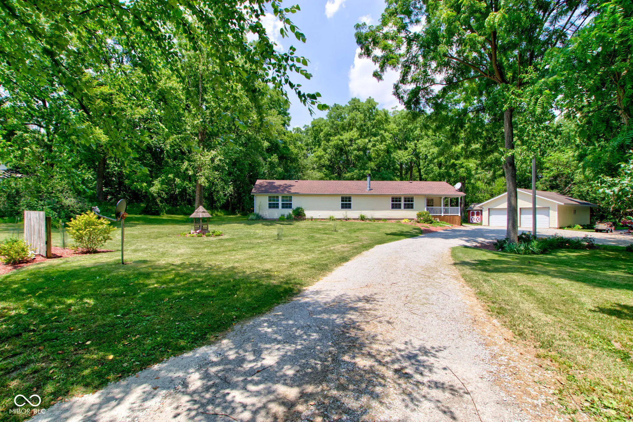 Welcome to your peaceful retreat located in Delphi! This well maintained 3 bed, 2 bath ranch sits on nearly 2 acres of scenic countryside. Property is beautifully landscaped with mature trees and a creek. Inside you will find a spacious open floor plan, highlighted by a stunning stone fireplace and an ensuite bathroom boasting an oversized garden tub with a separate shower. The kitchen offers ample storage space, and the over-sized garage is insulated with a wood burner. Recent updates in the past 5 years include a new roof, air source heat pump, water heater, some windows, attic insulation, new vinyl siding on the house and garage as well as a back deck and patio. With 2 storage sheds and easy access to Lafayette and Monticello, this property offers the best of country living with urban amenities just minutes away.