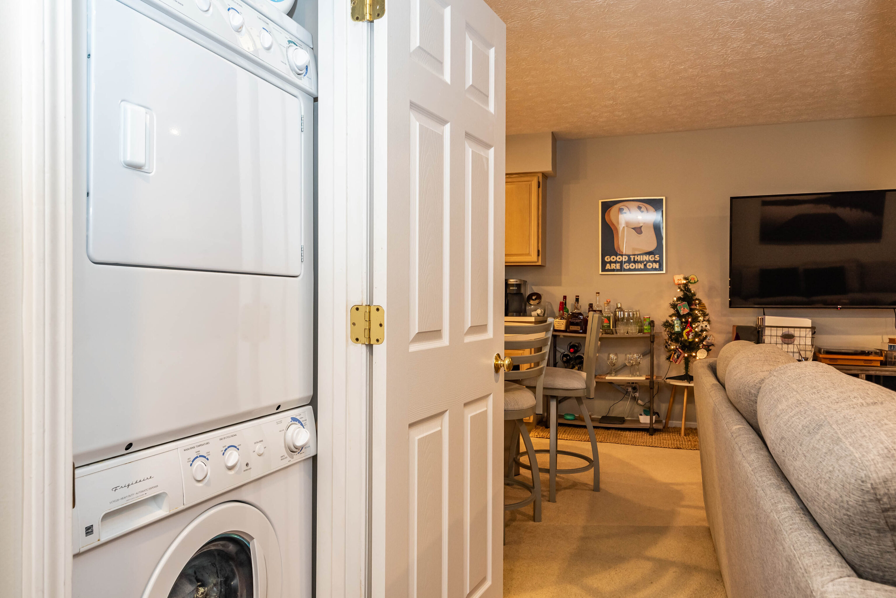 The setting makes you feel like you are always on vacation with a very private screened in deck that overlooks the woods and has a seasonal lake view. Parking is available directly in front with only 8 steps to home sweet home. This one level home features 2 bedrooms and 2 baths as well as a spacious great room with electric fireplace. Recent improvements include HVAC in 2022, microwave and dishwasher in 2020, new flooring and a new sliding door to the deck. All kitchen appliances, washer and dryer are included. Additional furniture is also available. Eagle Pointe residents can enjoy the association pool, take advantage of the delicious menu at Sahm’s Restaurant and be actively involved with golf or pickleball.