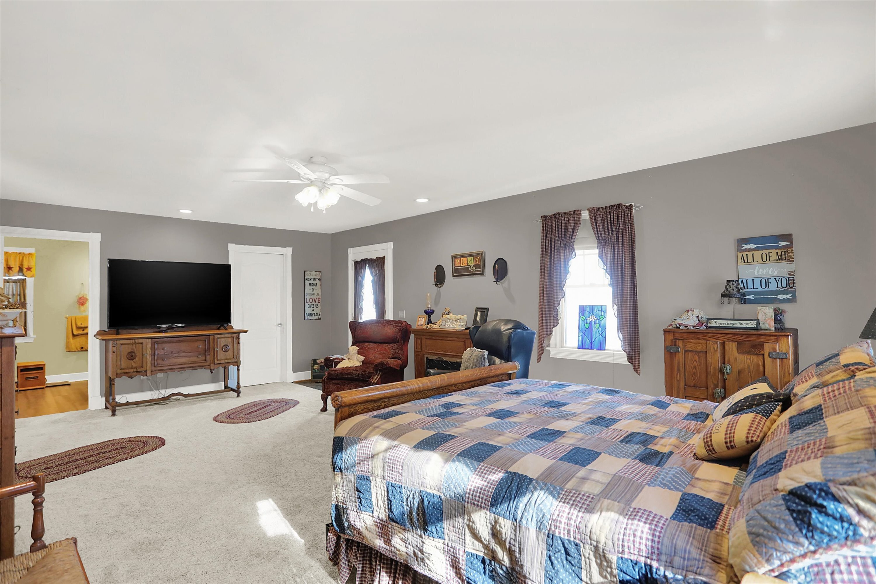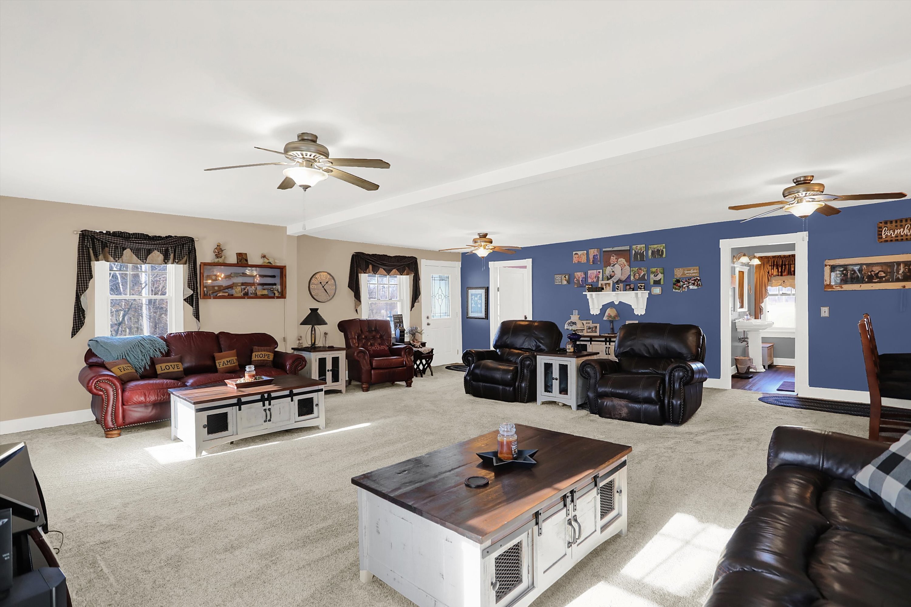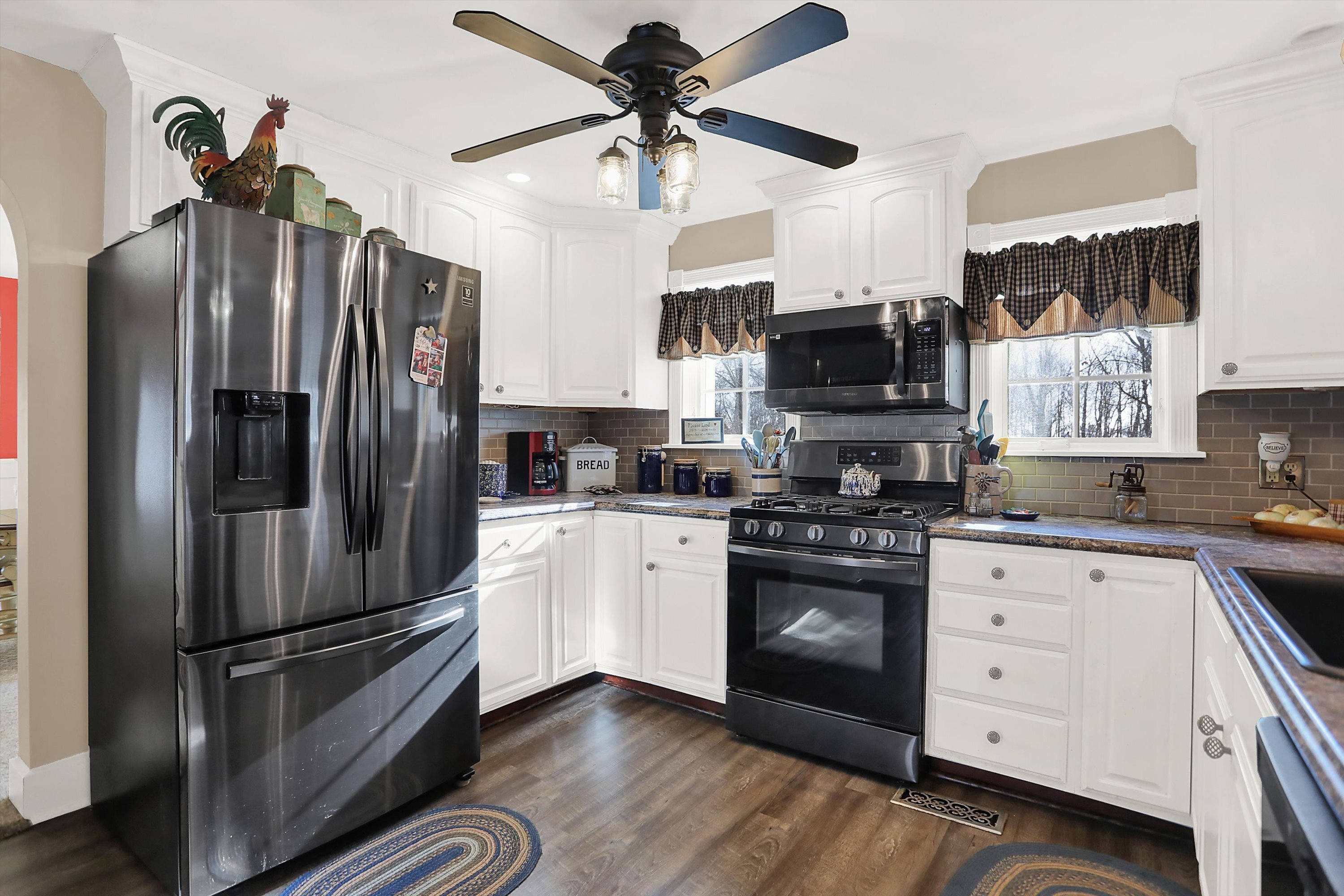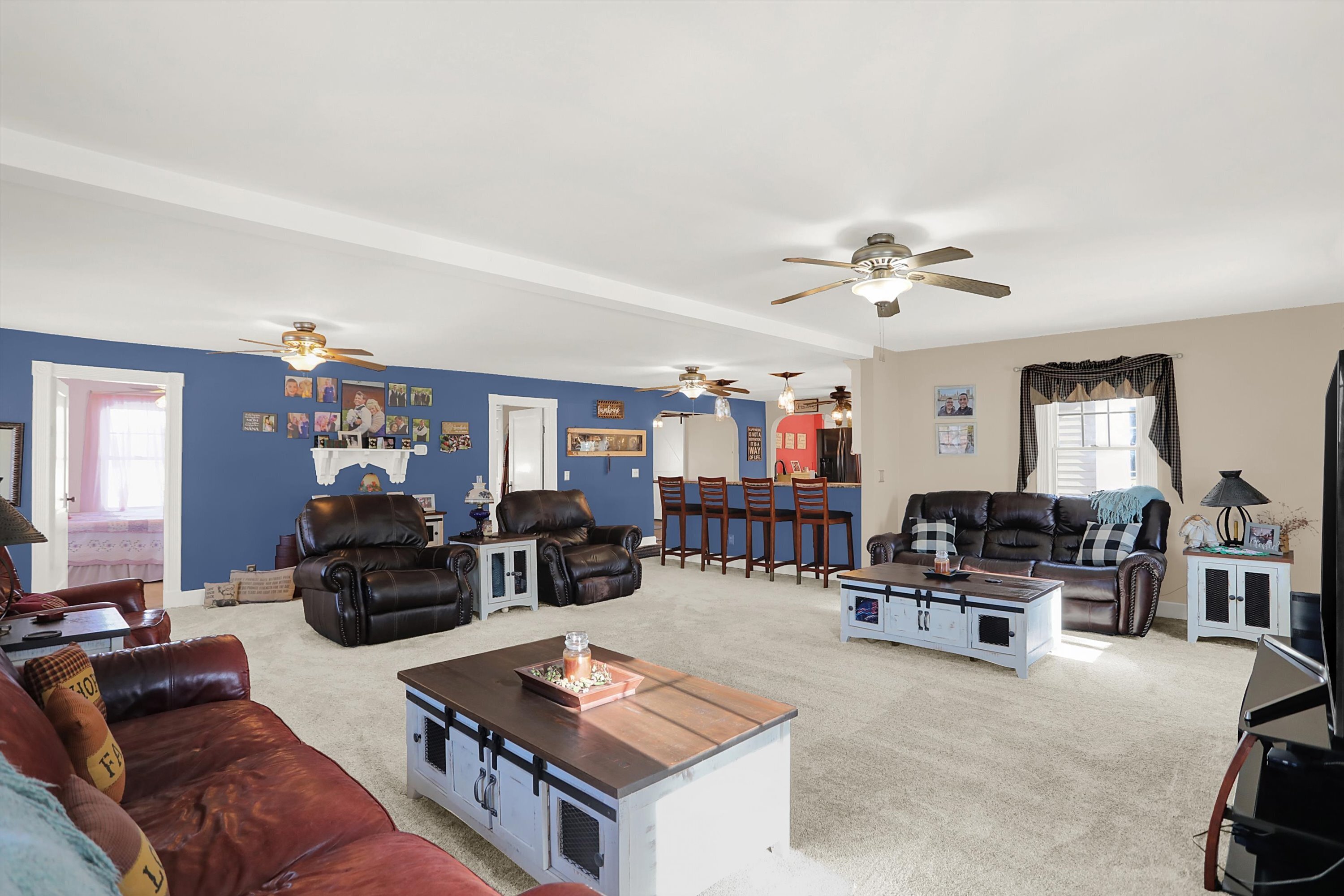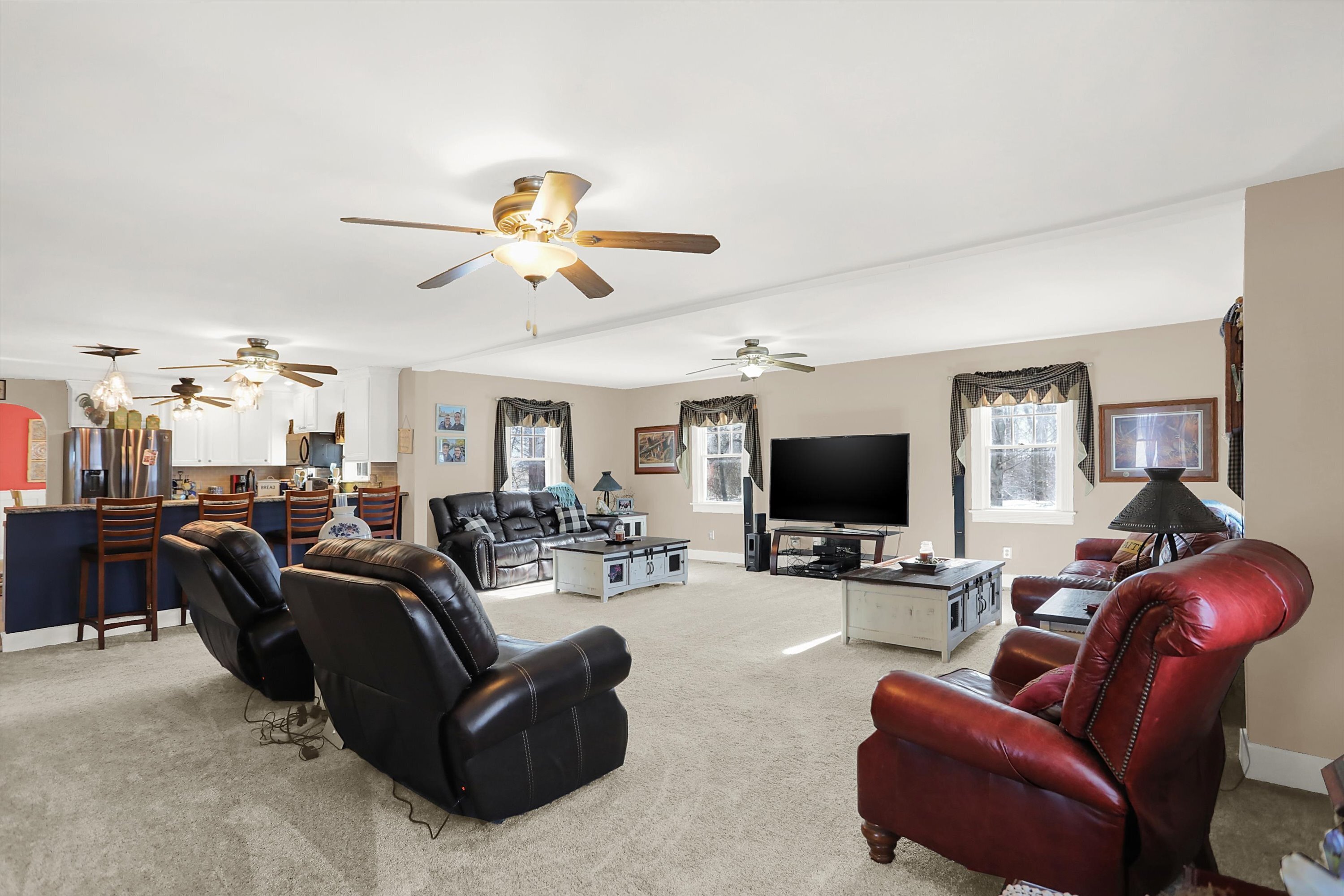 This home is Heaven on a Hill! Pull up the drive and enter through the side door. You are welcomed into this spacious yet cozy home. Barn door hides the awesome laundry room that includes the washer & dryer. Enjoy the updated kitchen with breakfast bar that is open to the enormous living space. Formal dining room is large enough to entertain a crowd and still has room for a china cabinet. Bedroom three is upstairs, it is 27′ long and has a walk in closet. Bedroom 2 is on the main level and has an adjacent Jack-N-Jill bath. Primary bedroom is on the main level and boasts a walk in closet, step in shower and opens out to the phenomenal covered deck out back. Just look at the pics of this trex like deck with the fireplace, bar and hot tub plus all the space you need for grill, table and chairs. There is a cool beechwood barn nestled in the woods. In addition, there are 2 other outbuildings with large overhead doors. One is insulated and has a woodburner. There really is so much here that you just need to see it for yourself.