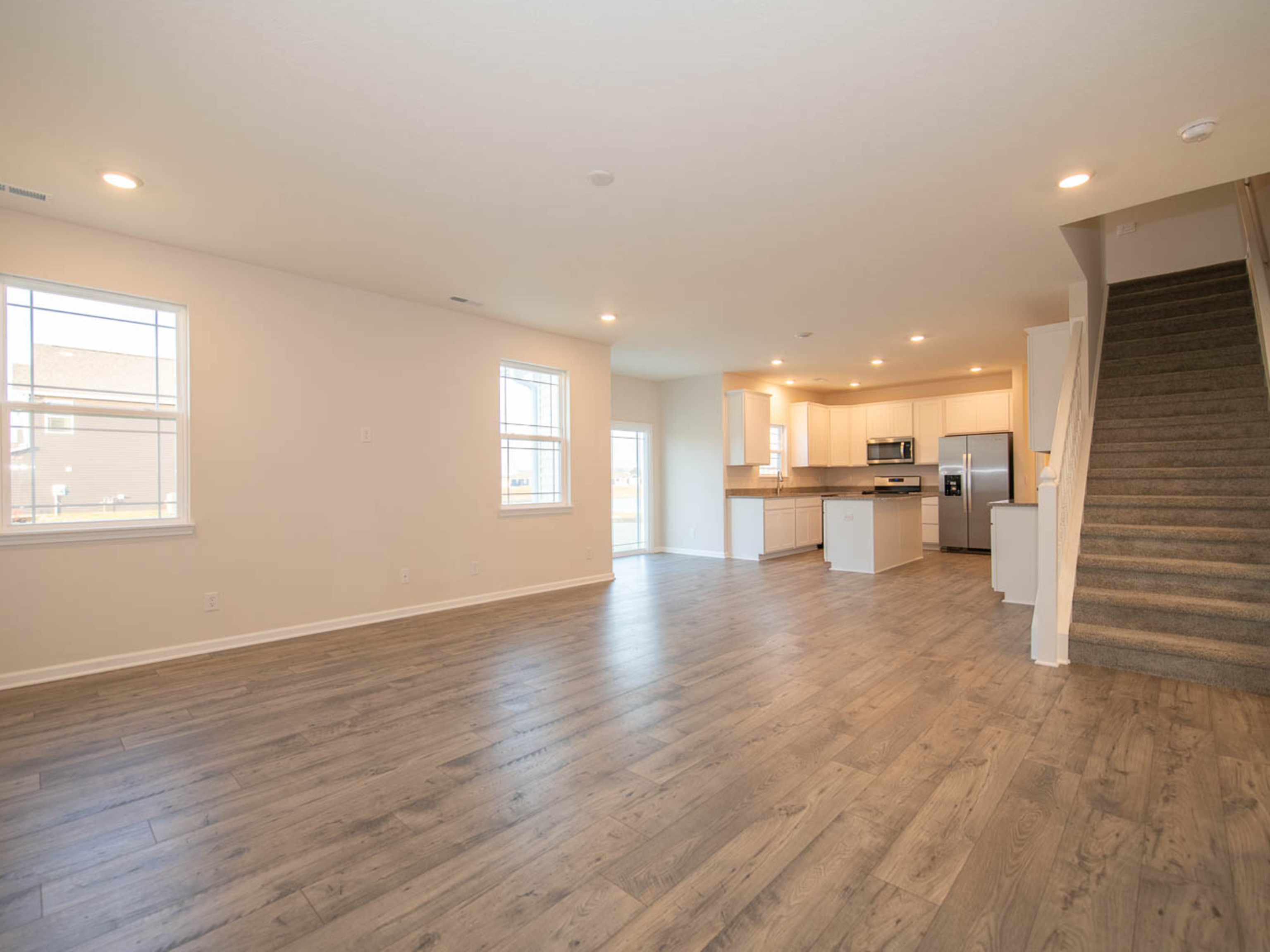 Move-in ready Campton available in Trailside! This plan is ideal for multi-generational living with 5 bedrooms, 3 baths, den or dining room, loft, and 3 car garage. The main level bedroom has an adjacent full bath perfect for guests. The open layout of this home is ideal for entertaining and family time. Fall in love with cooking in your fabulous kitchen with abundant 42-inch cabinets, center island, quartz countertops and pantry. Upstairs, you will discover the expansive primary bedroom suite with luxurious garden tub, tile shower and two walk-in closets. The remaining bedrooms are the perfect size, and the loft provides additional space for family time or a home office. Laundry is conveniently located on the second floor. Enjoy the outdoors from concrete patio or community amenities that include a pool, pickleball courts, clubhouse/event space and more! The home includes America’s Smart Home Technology featuring a smart video doorbell, smart Honeywell thermostat, Amazon Echo Pop, smart door lock and more.