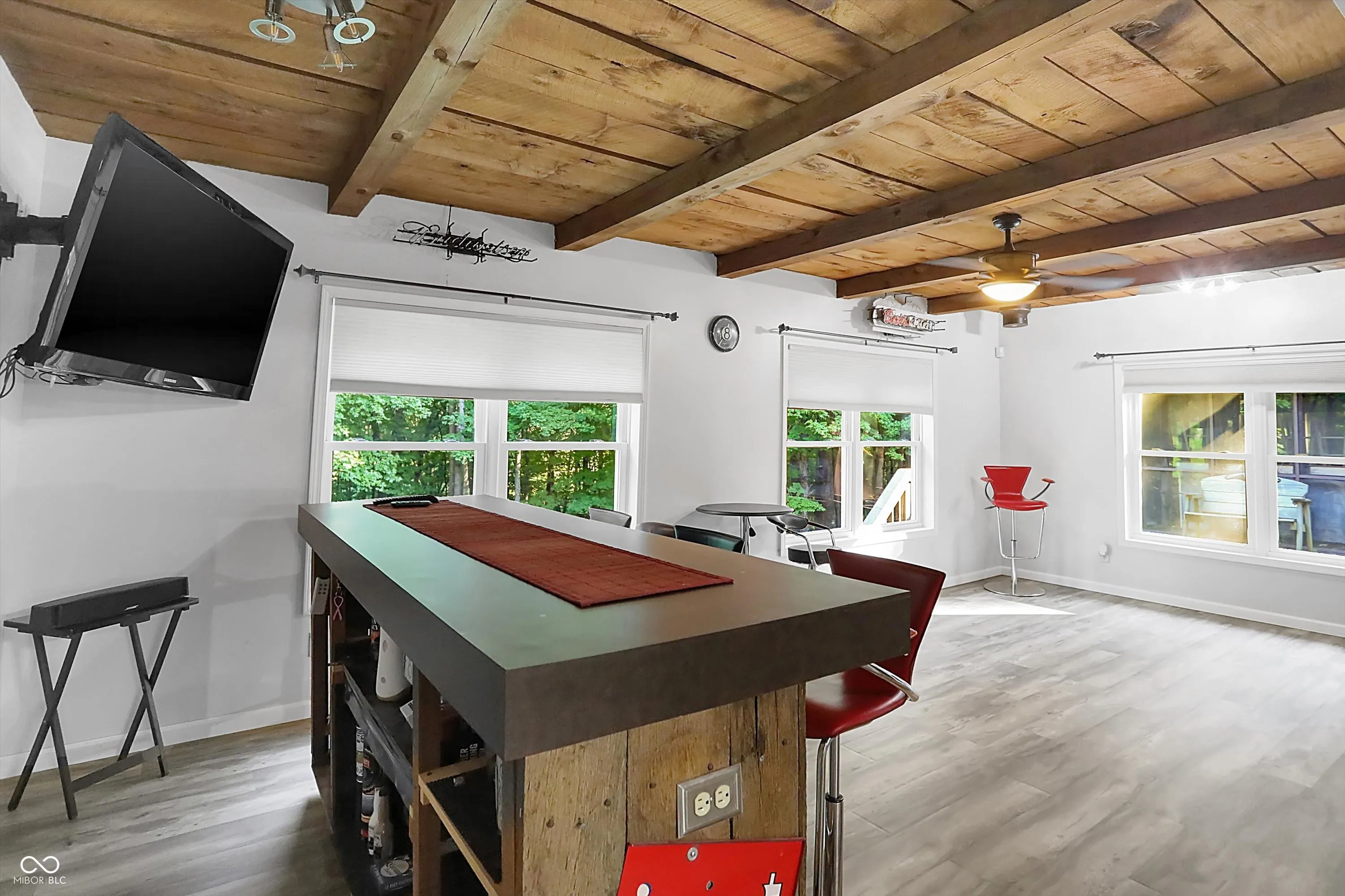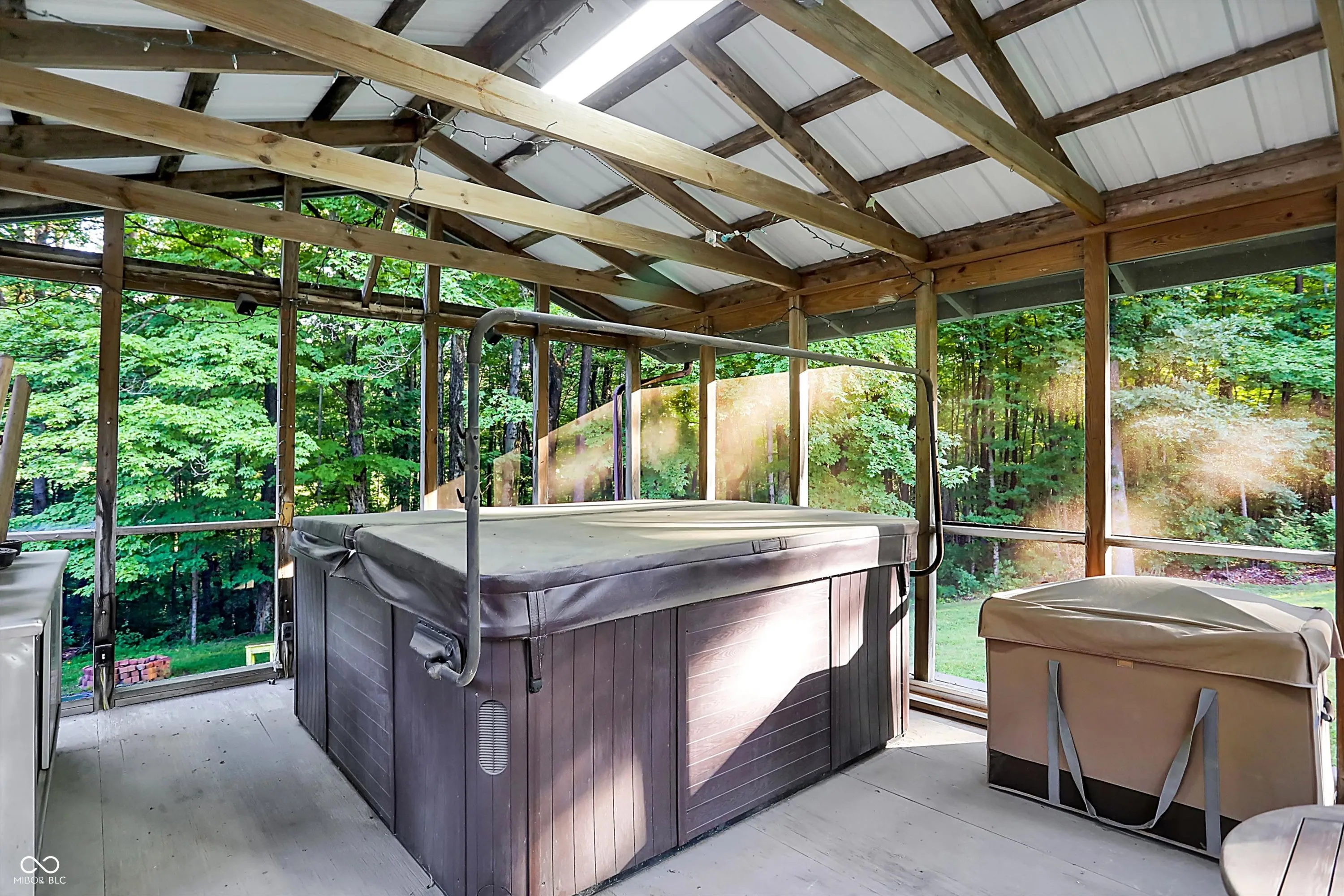 Move-In Ready! Have you been searching for a blend of Quality and Character? Or the perfect AirBNB investment? This is it! 3BR 2BA 2Car nearly 3000sf home on 2 acres! Discover the draw of this remarkably well-maintained northern Brown County getaway. Originally an 1800’s cabin it was expanded to bring in modern comforts while preserving the log cabin’s timeless character. Newer roof, dual split system HVAC, and recently sided exterior with vinyl windows. Corian solid surface countertops, original hardwood floors, gorgeous woodwork, natural exposed wood beams, and updated luxury vinyl plank. Open floor plan flows well creating an ideal circular floor plan for connectivity and entertaining. Cozy up in the log cabin great room around the fireplace. The split br’s w/sep stair cases provide great space to retreat as well as allows for privacy away from guest or kids room. Step out back to your spacious deck overlooking the mature trees and rolling hills. Cold or raining? No problem, relax in your screened-in Hot Tub(newer & barely used) house or sip some tea on the covered front porch. The property boasts two fire pits, its very own outhouse, a shed with a loft, ample parking, and a backdrop of trees, trails, and wildlife – an idyllic haven for nature enthusiasts seeking an escape from the bustling world. Perfectly situated just south of Johnson County. Near the lakes, Trafalgar, state park. Short drive to Greenwood, Franklin, Indianapolis. Or head just south to Columbus or Bloomington. Beech Tree Road has been repaved with a brand new road as well!
