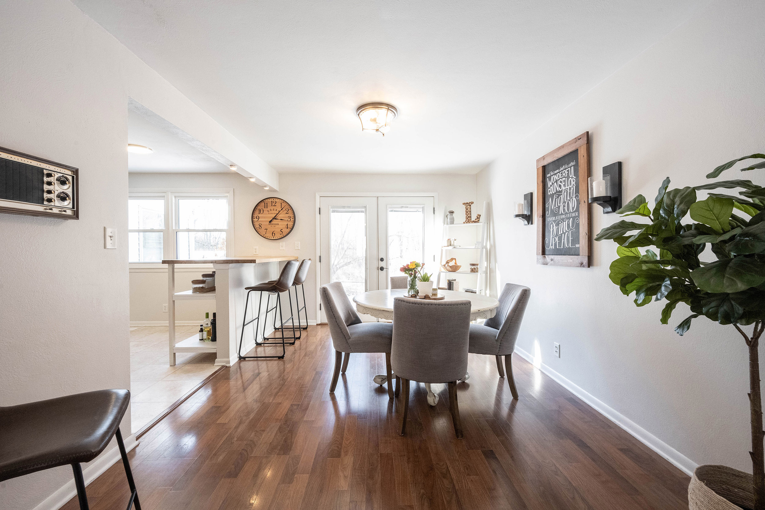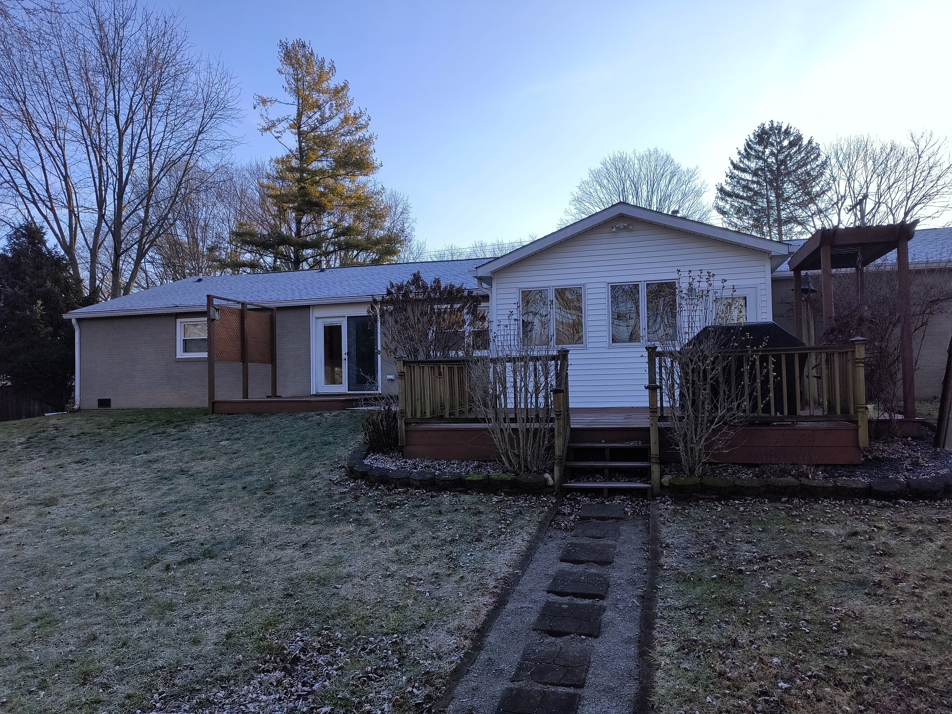 Check out this incredible, move-in-ready Pendleton ranch! Moments from downtown, this home features a private backyard overlooking the woods, 3 bedrooms, 2 full bathrooms, and a bonus 3-seasons room. The entryway leads to a huge living room with a large picture window for ample natural light. The updated kitchen includes a gas range, tile backsplash, butcher block counters, and a breakfast bar. The adjacent dining area has French doors opening to a rear deck with views of the wooded lawn. A spacious laundry/mud room offers extra storage and counterspace. The 3-seasons room is perfect for relaxation. The primary bedroom suite boasts a renovated bathroom with double sinks and a walk-in tiled shower. Two more bedrooms and an updated second full bathroom complete the interior. The back lawn features a large mini barn, multi-level decks, a built-in swing, privacy screen, and a fire pit, ideal for entertaining. The driveway has a bump-out for additional or oversized parking.
