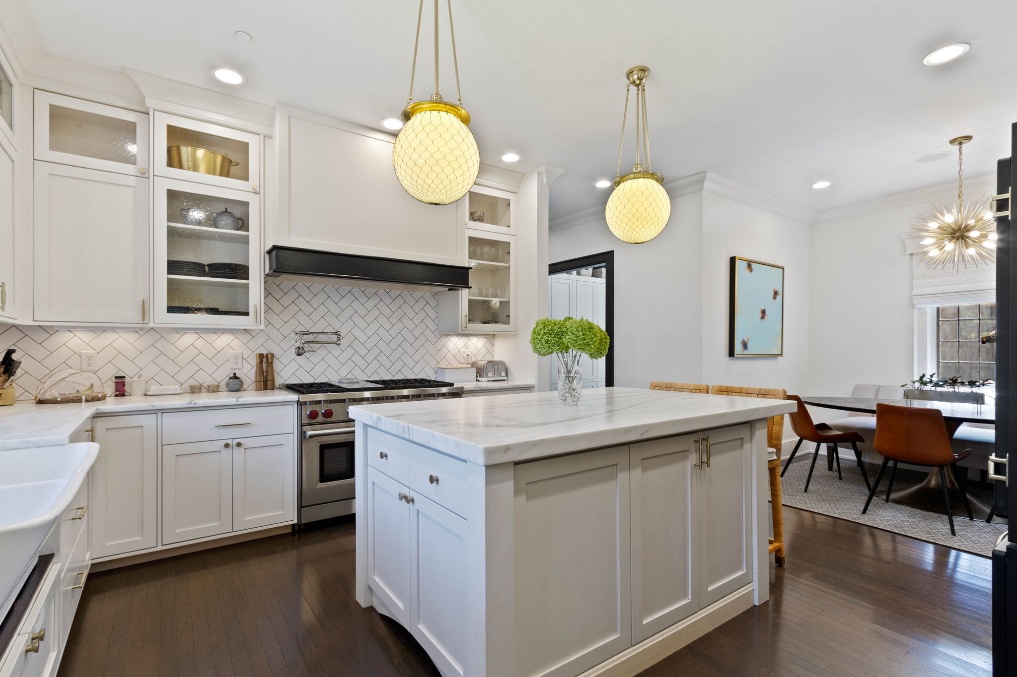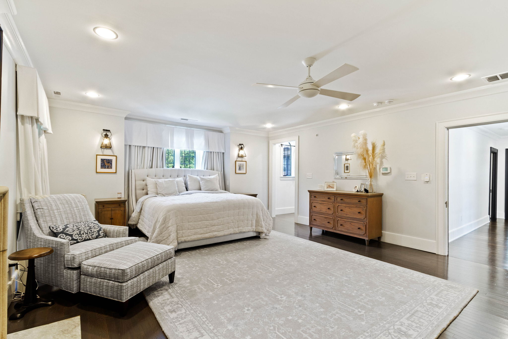 Stunning Meridian Street estate, meticulously updated, on over an acre lot. Gated entry onto the circle drive, highlighted by the stunning fountain. Walk into the grand foyer to find all architectural details refurbished to perfection. The perfect mix of modern and historic makes this property truly unique. Main level includes office, living room, formal dining room, mudroom and powder room. Chef’s kitchen includes Wolf range, double oven, Big Chill refrigerator and attached butlers pantry. Second floor includes massive primary suite with gas fireplace, double walk in closets, and large en suite bathroom. Three more bedrooms with private full baths, a second living room and laundry room round out the 2nd level. Movie theater on the third floor with custom sound system and wet bar, and a fifth bedroom suite. The basement includes a large gym with sauna, a wine cellar, and a sixth bedroom suite. Three car attached garage plus six car detached garage, brand new outdoor kitchen and tons of green space.