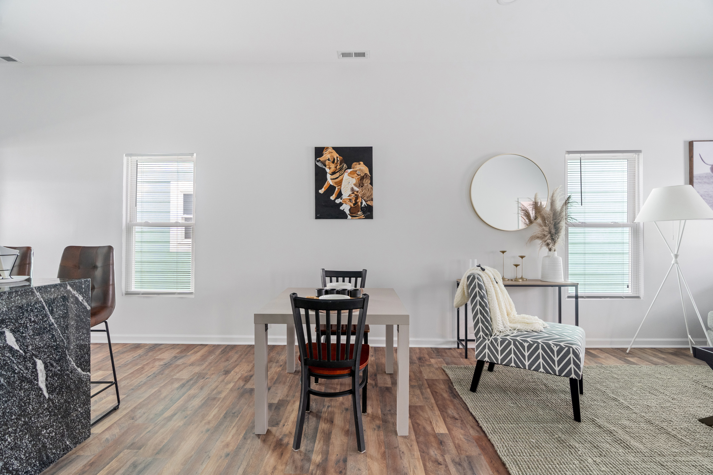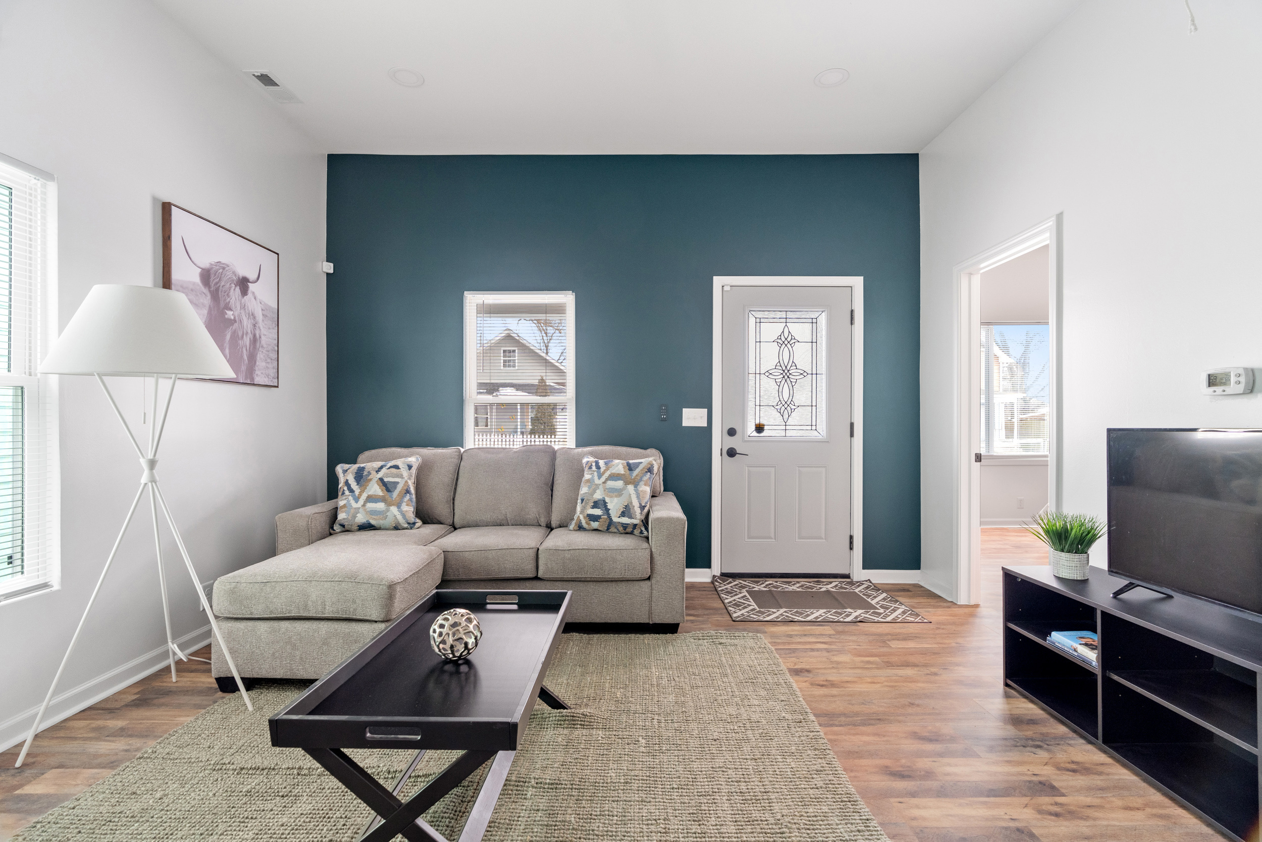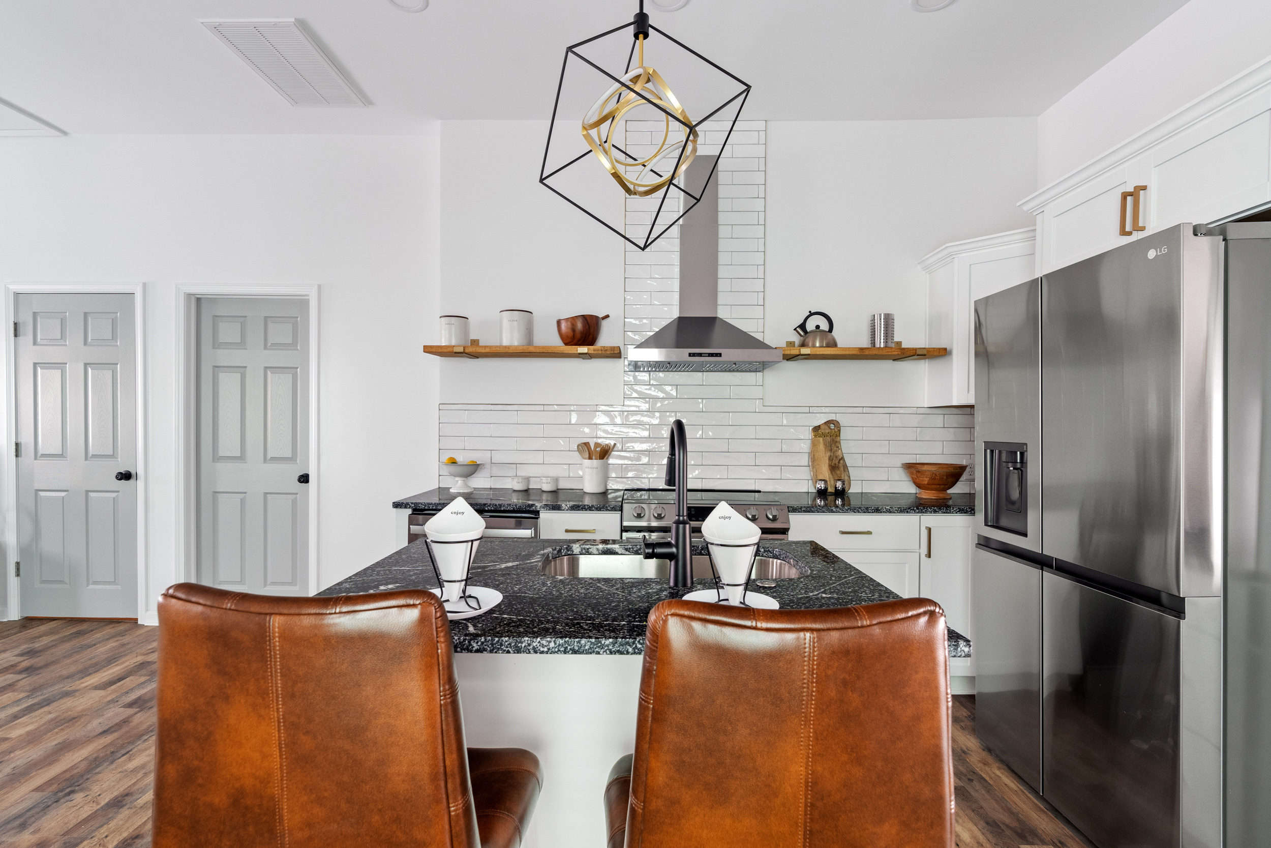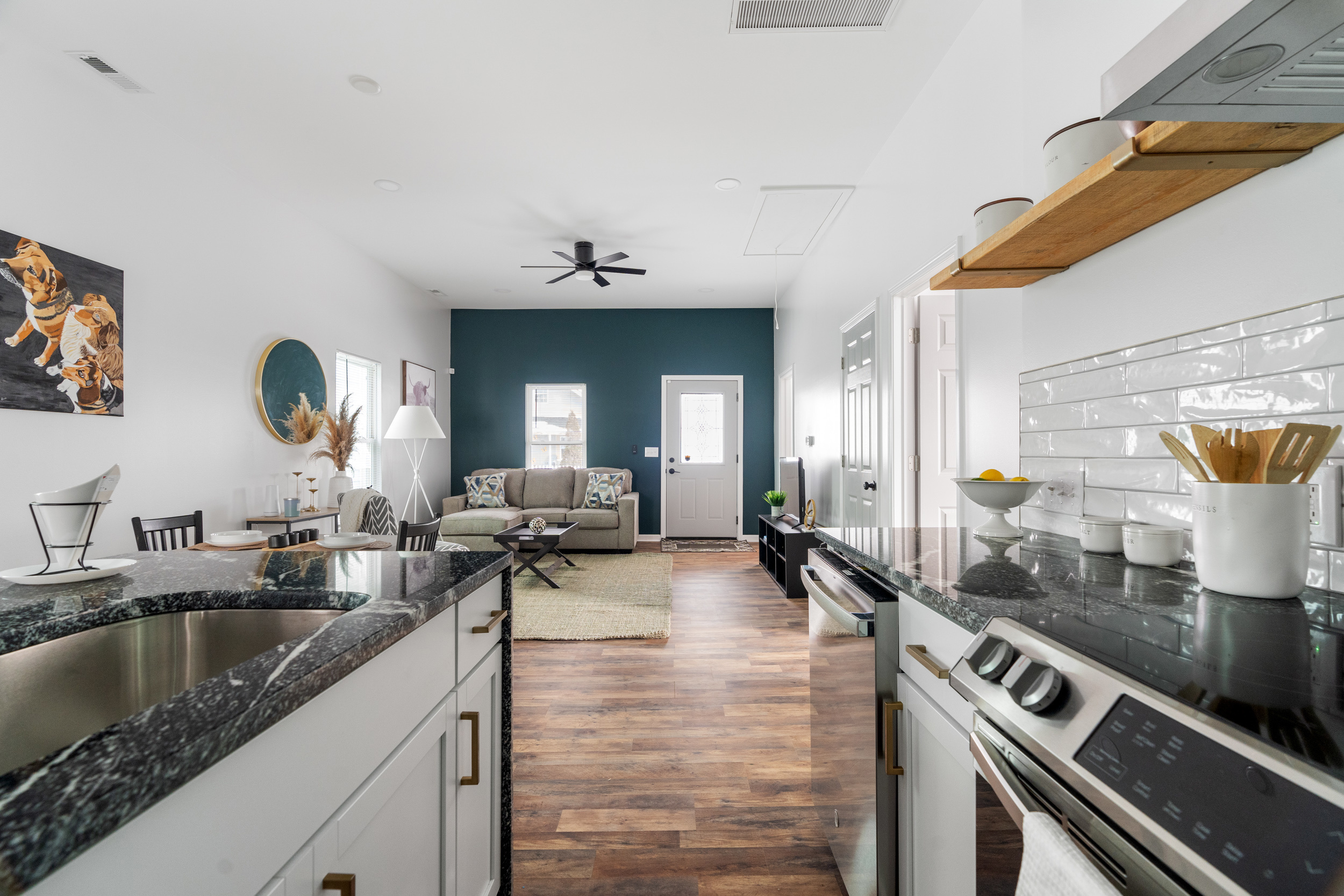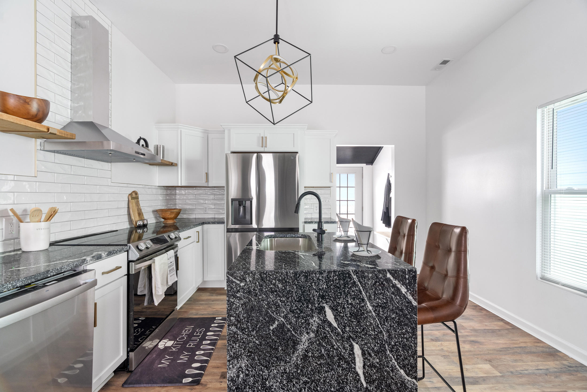 This pristinely renovated gem will exceed your expectations! Fenced front lawn leads to covered front porch. Inside, you’ll be wowed by the 10-ft+ ceilings, warm laminate hardwood flooring and freshly updated fixtures throughout. Open concept living, dining & kitchen allow you to host with ease. Sizeable island with waterfall edge and breakfast bar overlooks the custom tile backsplash and accent shelving. Brand new stainless steel kitchen appliances are included! Rare main level laundry/mud room includes washer/dryer and leads to the fully fenced backyard with a sizeable parking pad for 3+ vehicles! 2 comfortable main level bedrooms have access to 2 full bathrooms. Exquisite primary ensuite features double vanity, large walk-in shower & walk-in closet! New siding, windows, roof, electrical, plumbing & mechanicals. Enjoy low maintenance living just minutes from your favorite Fountain Square hangouts.