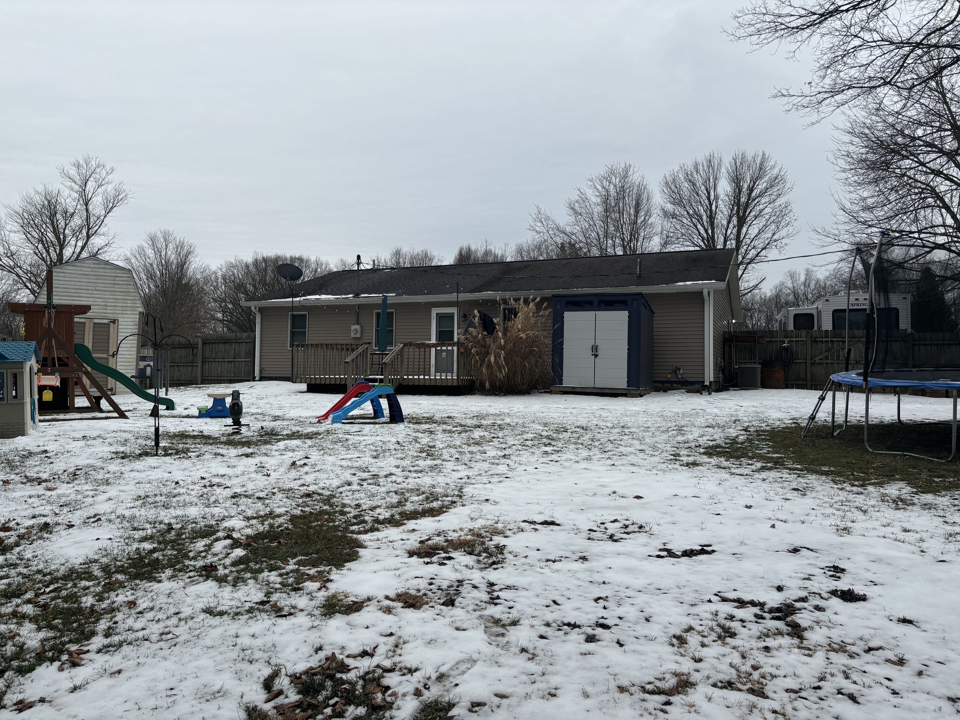 Immaculate move-in ready 3 bedroom, 2 full bath home on a large 3/4 acre corner lot with a finished 2 car garage! Kitchen appliances can all stay along with the moveable center island. All major mechanicals have been replaced within the last 8 years including: roof, windows, HVAC, etc. Flooring in living room, kitchen and laundry all replaced within the last couple of years. Newer paint throughout. Enjoy relaxing on your back deck overlooking the huge privacy fenced backyard with mature trees. 2 storage barns stay along with the playset. Easy access to State Road 67. What more could you want?!