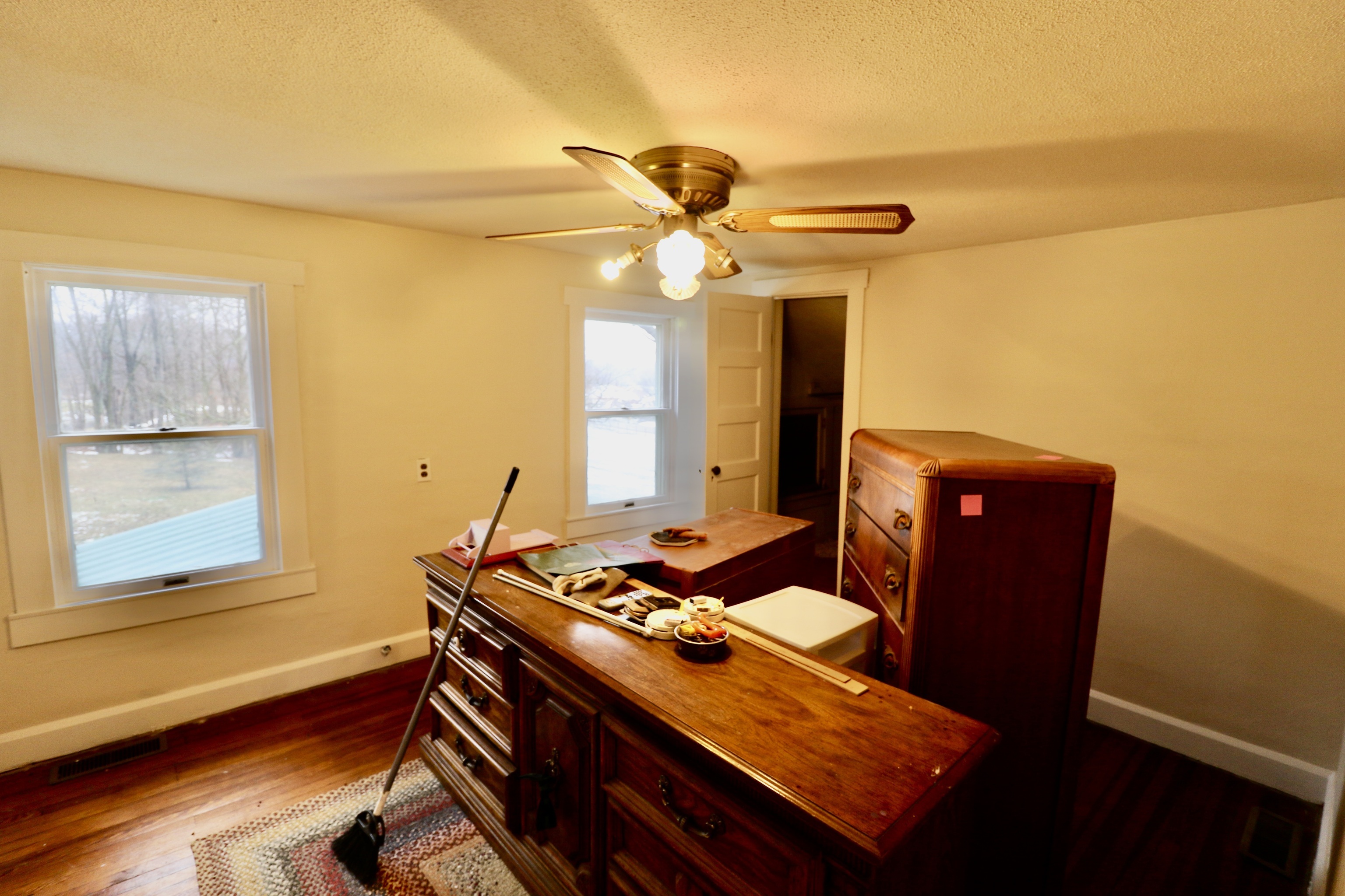 If you have been in search of a rural property with a list of “must haves” then this is it! Complete with a 4 bedroom, 2 full bats this bungalow style home has character & charm. Kitchen includes all appliances & plenty of cabinetry. Primary bdrm on main w/ adjacent bath. Full basement houses mechanicals: high efficiency HVAC, gas water heater, water softener & w/d. Step on to 1 of 2 enclosed porches for a stunning view of the wooded grounds & spring fed 17′ deep, stocked pond, dock, cabin with hand pumped water source & outdoors private bath facilities. Two outbuilding complete the package w/ a 48’x30′ pole barn w/ 4 bays & interior office area & 2nd barn has 2 levels & hay loft. Property is entirely enclosed by perimeter fencing that has solar powered gated entrance.