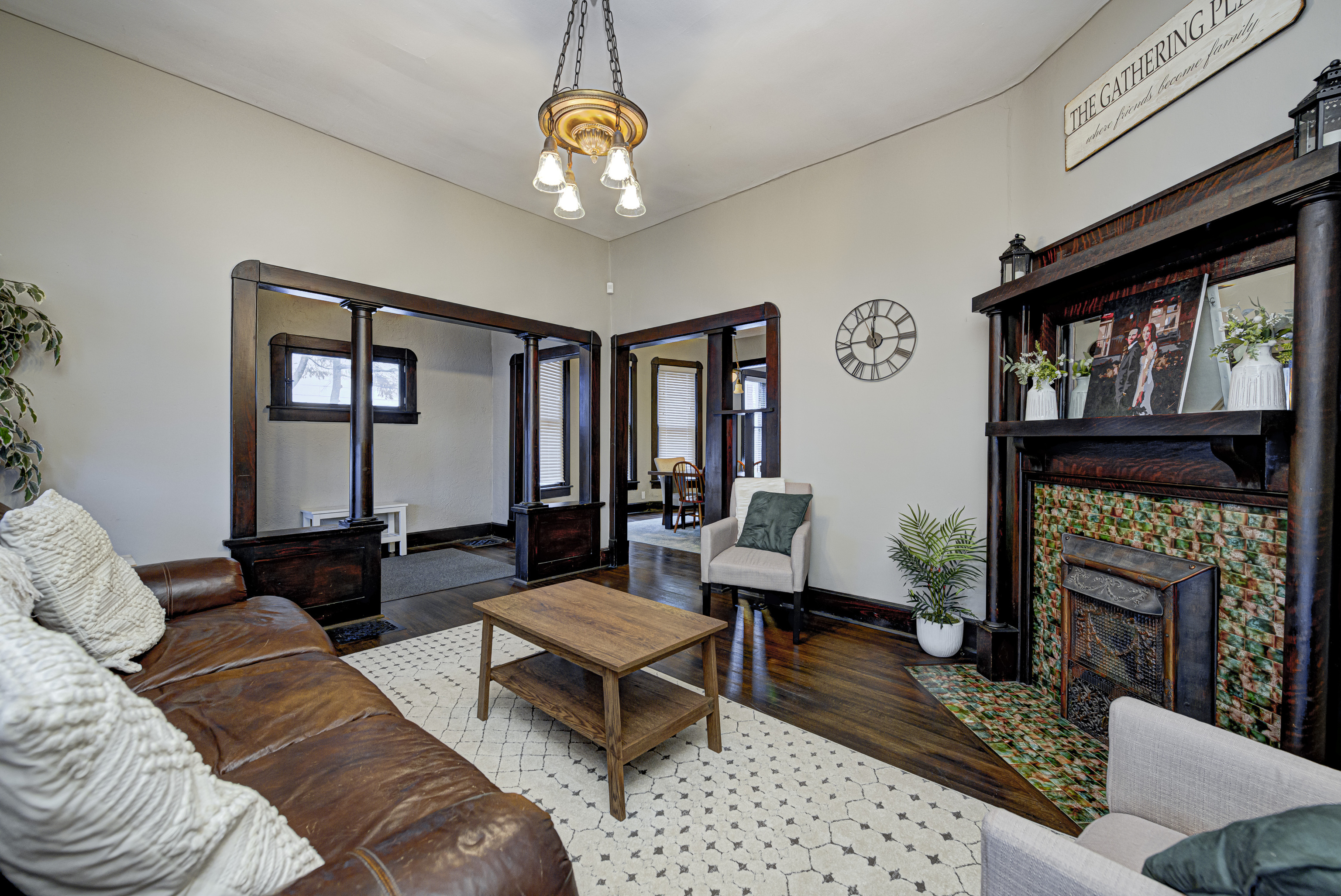 Charming 2 bedroom, 2.5 bath home in popular Fountain Square complete with covered porch and picket fence. Restored hardwood floors on the main level, updated kitchen, craftsman pillars and the original fireplace from 1902. Great home for entertaining, both inside or outside. Bedrooms offer walk-in closets as well as updated/dedicated bathrooms. Main level also offers an updated Half bath for guests. Enjoy the privacy of the second level primary suite with spacious sitting area/office area. Located within walking distance to Fountain Square’s restaurants, nightlife, Cultural Trail and more. Check this one out today!