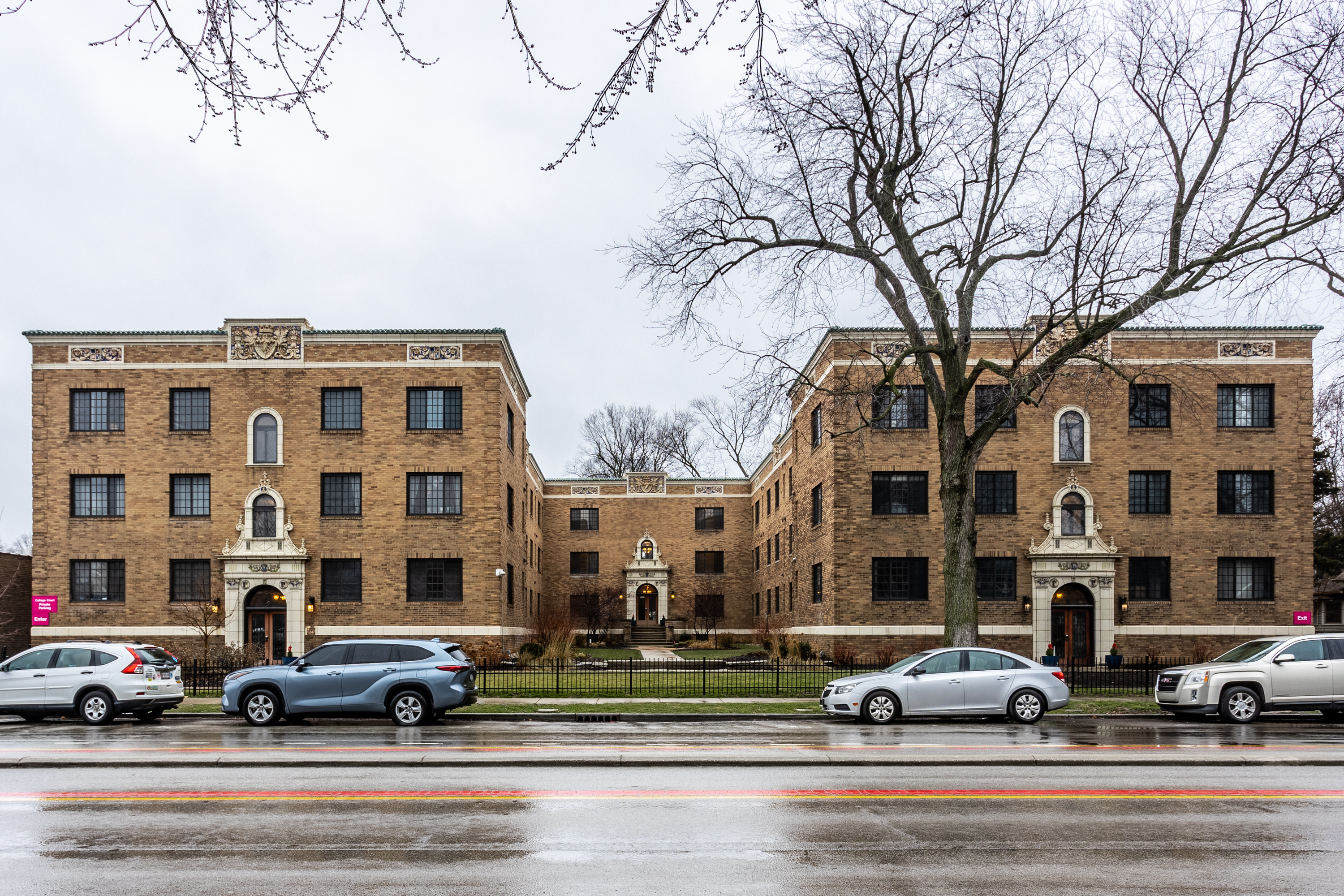 Sensational opportunity featuring charm & modern convenience. This 1-bdrm condo is located on the north, front side of the first floor of College Courts. The corner unit features additional windows which flood the space w/ natural light & frame beautiful views of the front courtyard. Gorgeous subway tile surround in the bathroom. Open floor plan allows you to enjoy a seamless flow from the living room to the dining room & kitchen. Don’t miss the Murphy bed built in behind the mirrored doors in the living room! There is a newer, front load washer/dryer in the unit. Also included is a locked storage unit & 1 assigned parking space behind the building. Enjoy the stately curb appeal of the historic building framed with lovely landscaping and wrought iron fencing. Walk to Fresh Market and all points Broad Ripple. The nearby Monon Trail offers the perfect escape for a long bike ride or walk to dinner. HOA fee includes water, sewer and trash.
