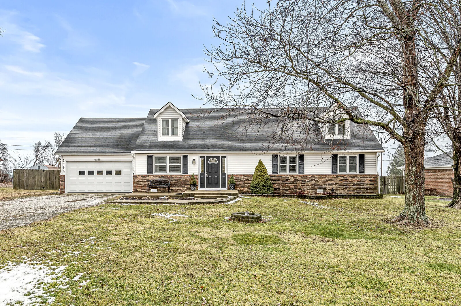 Welcome to 5598 Broyles Drive in Avon where this 4 bed 3 bath Cape Cod home awaits you! NO HOA! On nearly a 1/2 acre. This home features a great layout with the primary bedroom(with ensuite)and a second bedroom on the main level! The living room, kitchen, full bath, and laundry round out the 1st level. Upstairs contains 2 large bedrooms and a 3/4 bathroom. The large backyard with a fireplace and privacy fence would be great for entertaining family and friends. Location, location! Not only is there immediate access to Rockville Rd for an easy commute, but the property is located right next to Washington Twp Park and Paw Park! Mechanical updates-Roof(’17), upstairs HVAC(’18), downstairs HVAC(’20), garage door & opener(’19), all kitchen appliances new within the last few years.