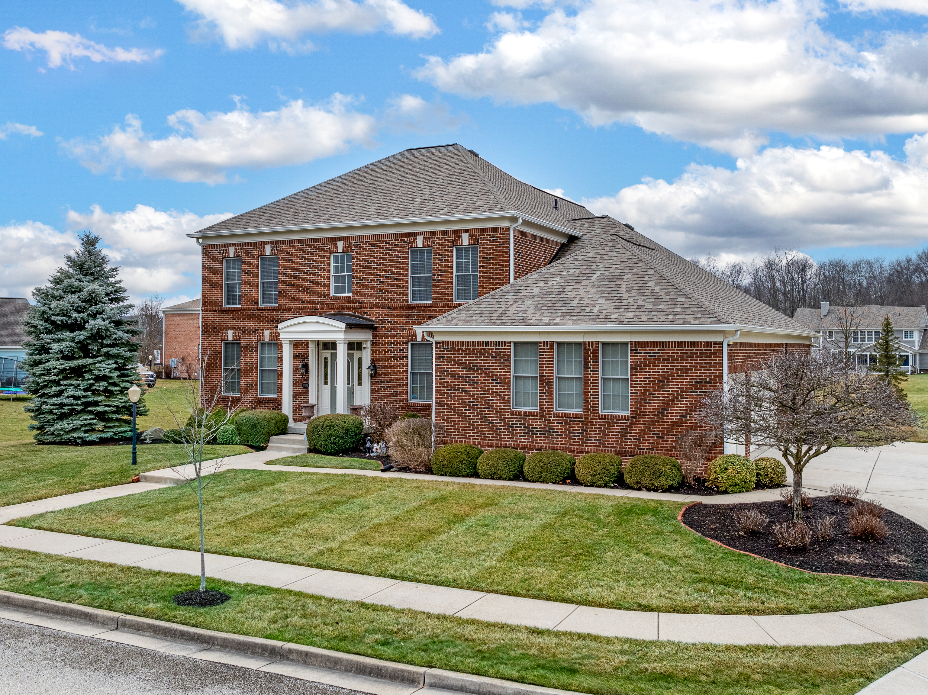 Don’t miss out on this meticulously maintained home, cherished by its original owners! This stunning 90+% brick residence boasts 4 bedrooms and 4.5 bathrooms and is nestled on a quiet street, occupying nearly half an acre in the highly sought-after Village of WestClay. Relaxation or entertainment await in the two-story living room, featuring soaring ceilings, a cozy gas fireplace, and expansive windows flooding the space with natural light and offering views of the backyard, with the Watson Park green space just beyond the property. The large open kitchen is fully equipped with a gas cooktop, double ovens, stainless steel appliances, a sizable pantry, granite countertops, and a substantial center island perfect for meal prep. The primary suite is conveniently located on the main level and offers a retreat with a garden whirlpool tub, separate shower, and a spacious walk-in closet. Additional main floor spaces include an office, powder room, laundry room, and a sizable formal dining room. Upstairs, you’ll find three spacious bedrooms. One features an ensuite bathroom and the other two bedrooms share a convenient Jack and Jill bathroom. The expansive finished basement provides endless possibilities for creating functional living spaces, featuring an open layout, daylight windows for natural light, and a full bathroom for added convenience. Plumbing rough-ins for a bar are already in place, concealed by drywall. Recent updates include a new roof with upgraded hail-resistant shingles, new gutters and downspouts (2022), fresh exterior paint (2023).