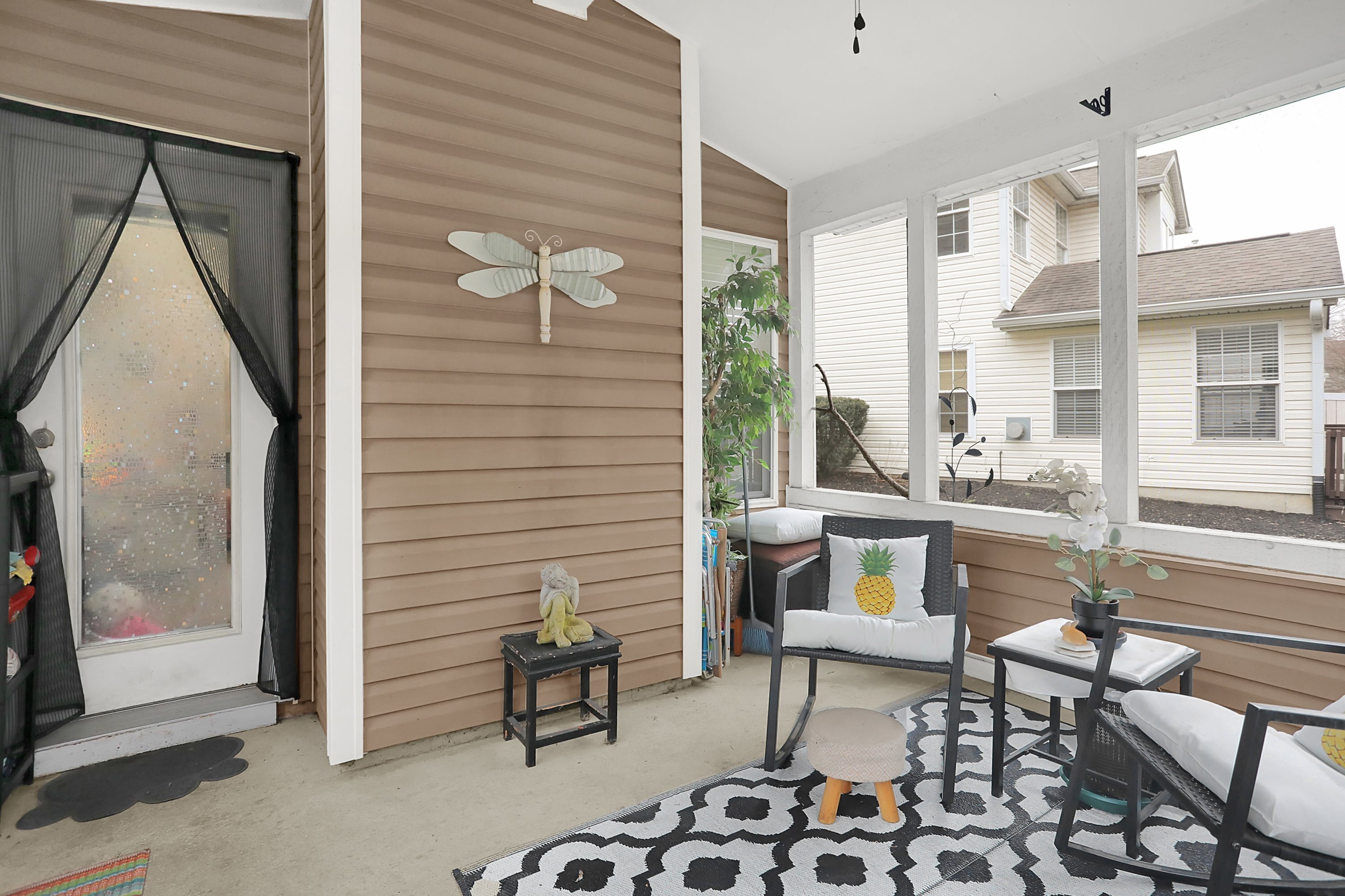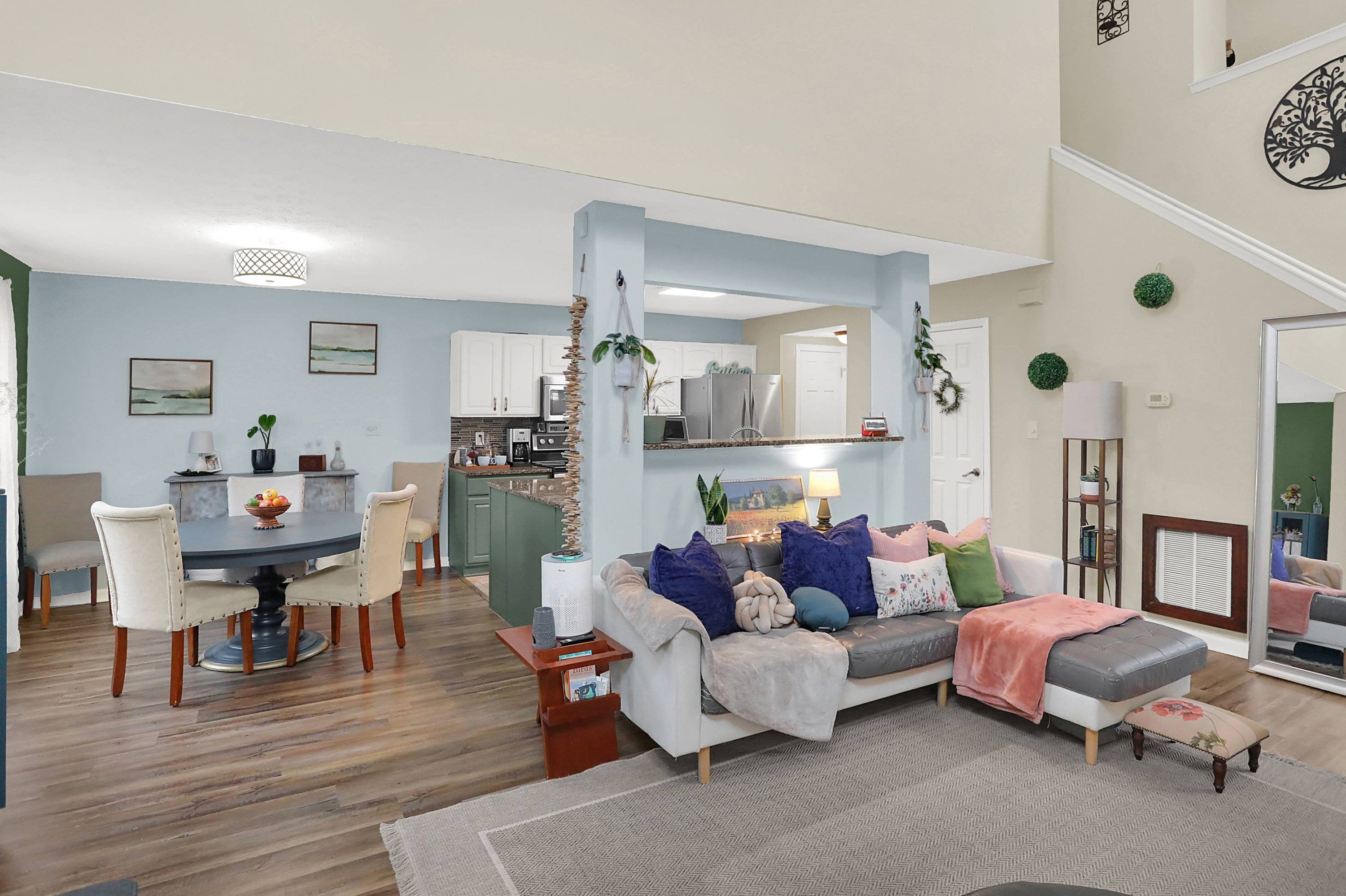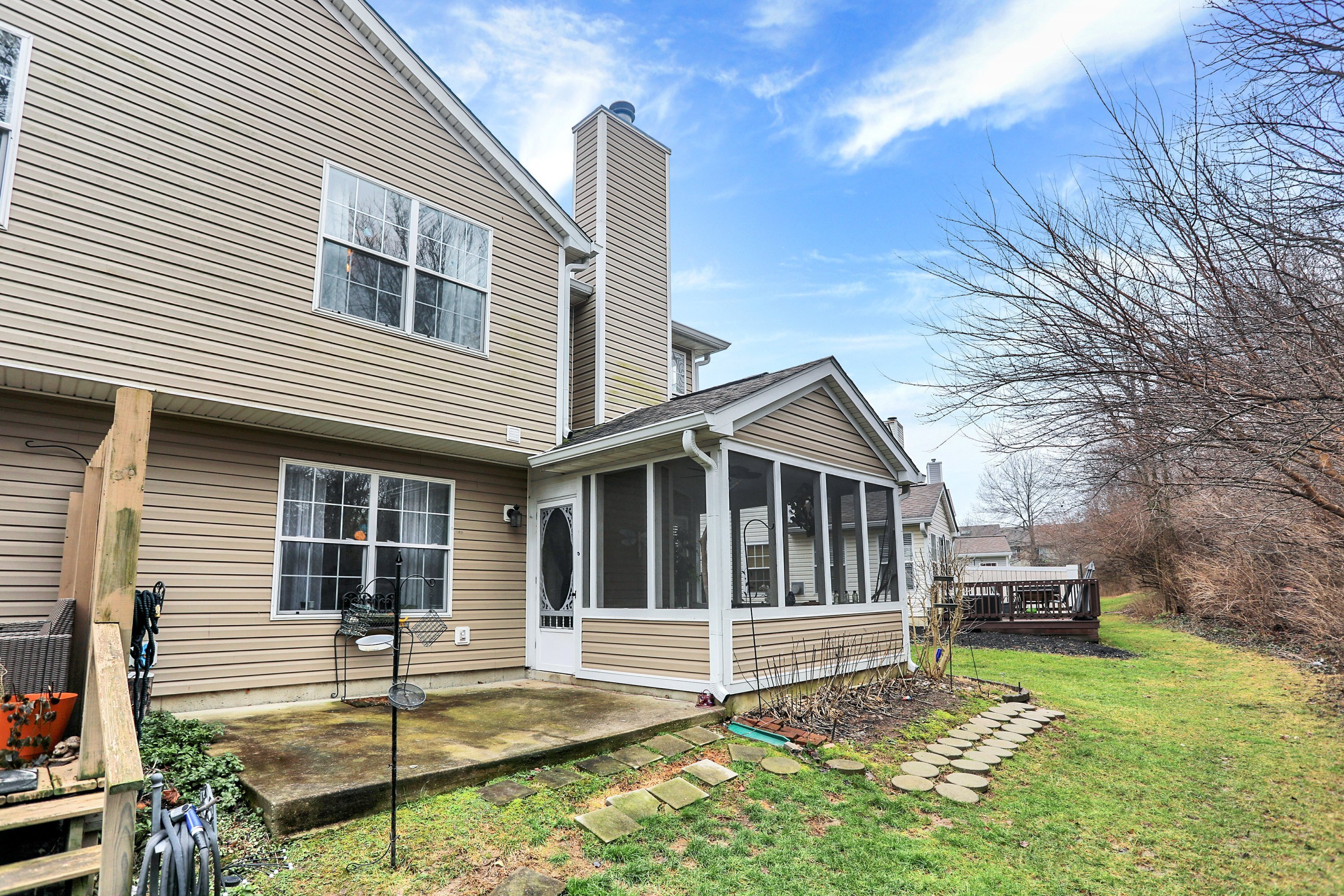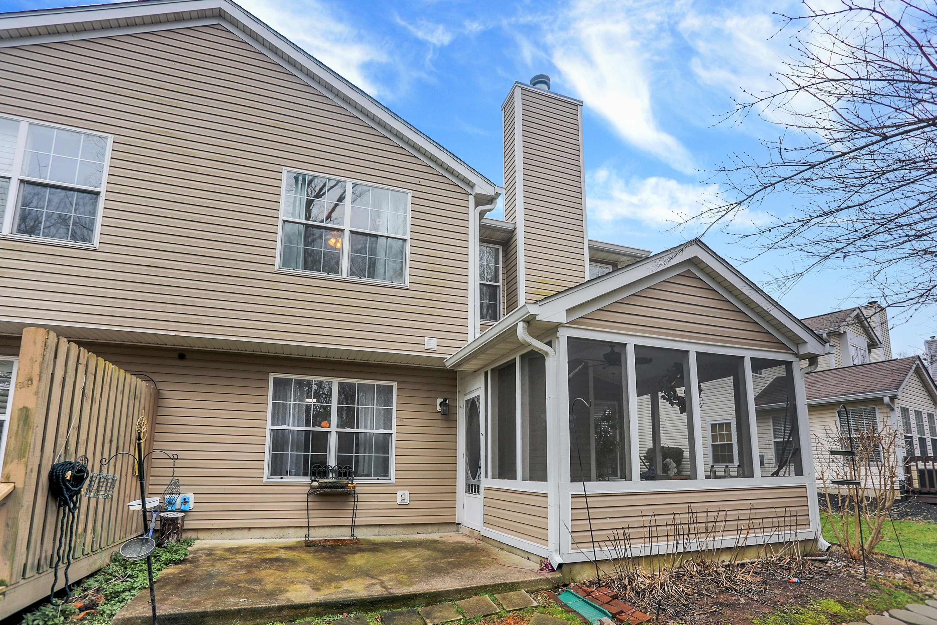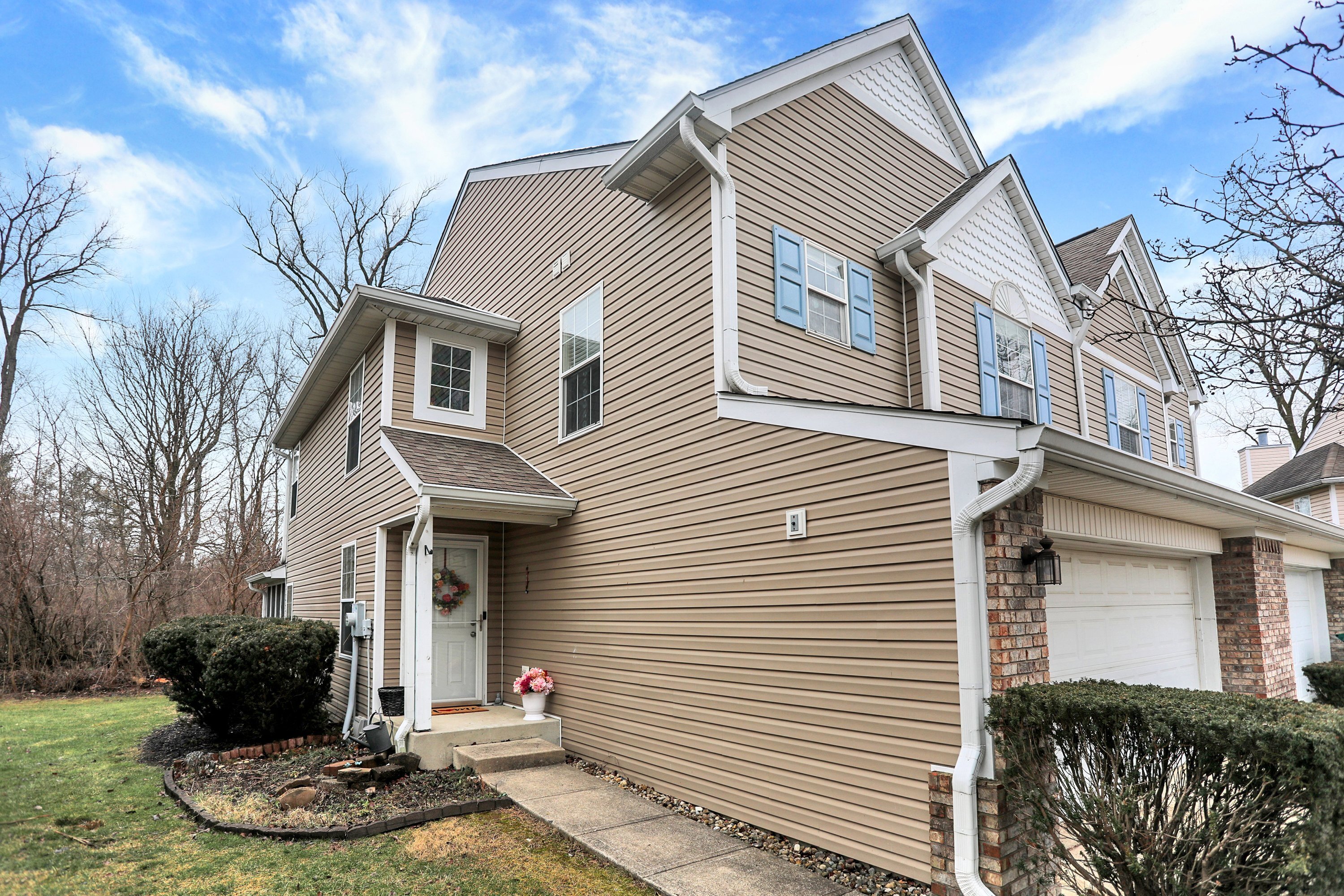 This townhome boasts a 2 story great room with tons of natural light. The kitchen was updated with fresh colors on the cabinets in 2023 that compliments the stainless steel appliances including, a double oven, fridge, dishwasher and micro/hood. Each bedroom is a primary suit with full en suite bathrooms in each. A loft that can be used as office/ game room or additional den is off the second bedroom. Laundry is upstairs with newer washer and dryer. Home is sold As Is, but that is with 2019 Water Heater, 2016 New Roof, 2017 New Furnace, 2019 New flooring throughout whole home EXCEPT one bedroom. Gas fireplace with new beautiful fire glass instead of logs. Spend your summer nights on the screened patio secluded by woods and nature. An organic raided garden bed and tons of beautiful low maintenance perennials surround the side and back of the home. This home is close to everything! Won’t last long so schedule a tour today! *HOA does not allow for additional landlords at this time, must be owner occupied buyer* $500 Carpet credit with acceptable offer for Primary Bedroom. ( The only area with carpet remaining. Seller can provide exact flooring match if needed at closing for LVP in rest of home.)