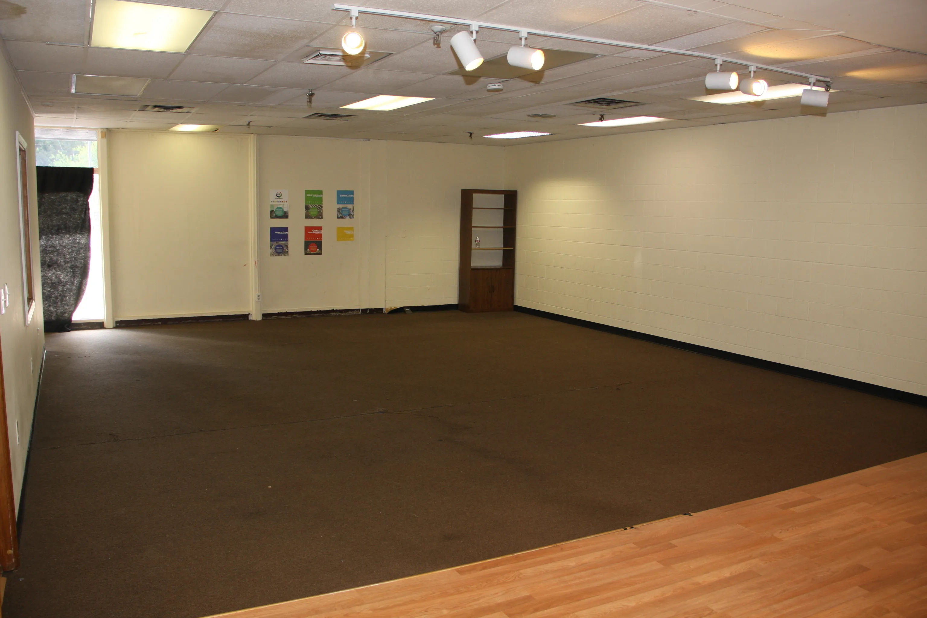 2560 SF Commercial Building currently setup as a church. 2 Classrooms/Offices, 2 Baths and a Kitchen. Open Span and could be redesigned as you like.