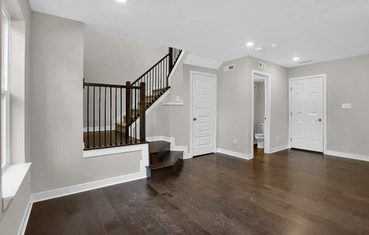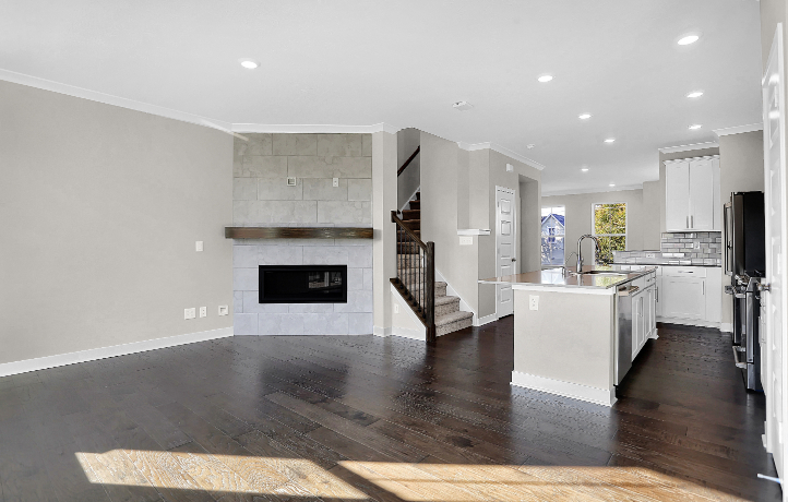 Marketplace Towns is a community of low-maintenance, three-story townhomes for sale, coming soon to Fishers, IN. The 3-story Lockerbie Townhome features a finished lower level. The main floor has an open-concept kitchen, breakfast nook & great room, with a balcony offering additional living space outdoors. The flex room is perfect for hobbies, study, work or fitness. The 3rd floor features a luxurious owner’s suite and 2 bedrooms. *Photos/Tour of model may show features not selected in home.