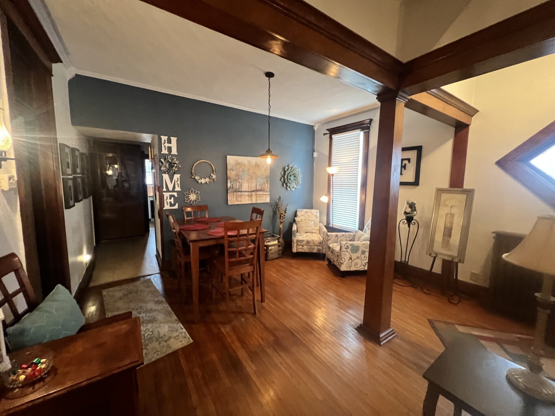 Amazing home in Tri High School District! This home has beautiful woodwork and some original hardwood flooring. The living room and dining room feature a nice open concept. The adorable kitchen has a pantry and the range, refrigerator and dishwasher are included. The large enclosed front porch is perfect for enjoying your morning coffee. There is an attached garage and a 24×40 pole barn with two overhead doors and a concrete floor. There is a large deck off the back of the house that would be great for entertaining and a nice sized backyard.