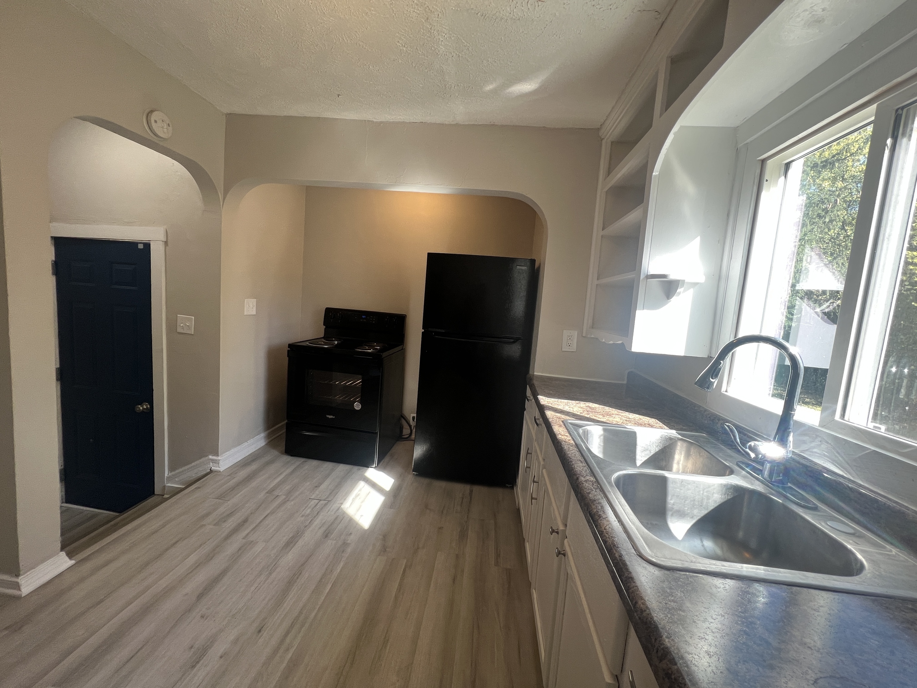 Don’t miss out on this newly renovated 3 bedroom, 1 bathroom home! As you approach this home home you are greeted by a cozy, covered front porch, perfect for relaxing. As you enter the home you will find a large living room with an ample amount of natural light. Just off the living room is a large utility/mud room offering space for a washer and dryer and extra storage. All 3 bedrooms are carpeted. The full bath is updated with a new vanity, fixtures, toilet and new bathtub/shower combo surround. The large kitchen offers an ample amount of new white base cabinets, fixtures, built in shelves and refrigerator and stove will be provided! Top it off with a two car detached garage and a nice sized back yard!