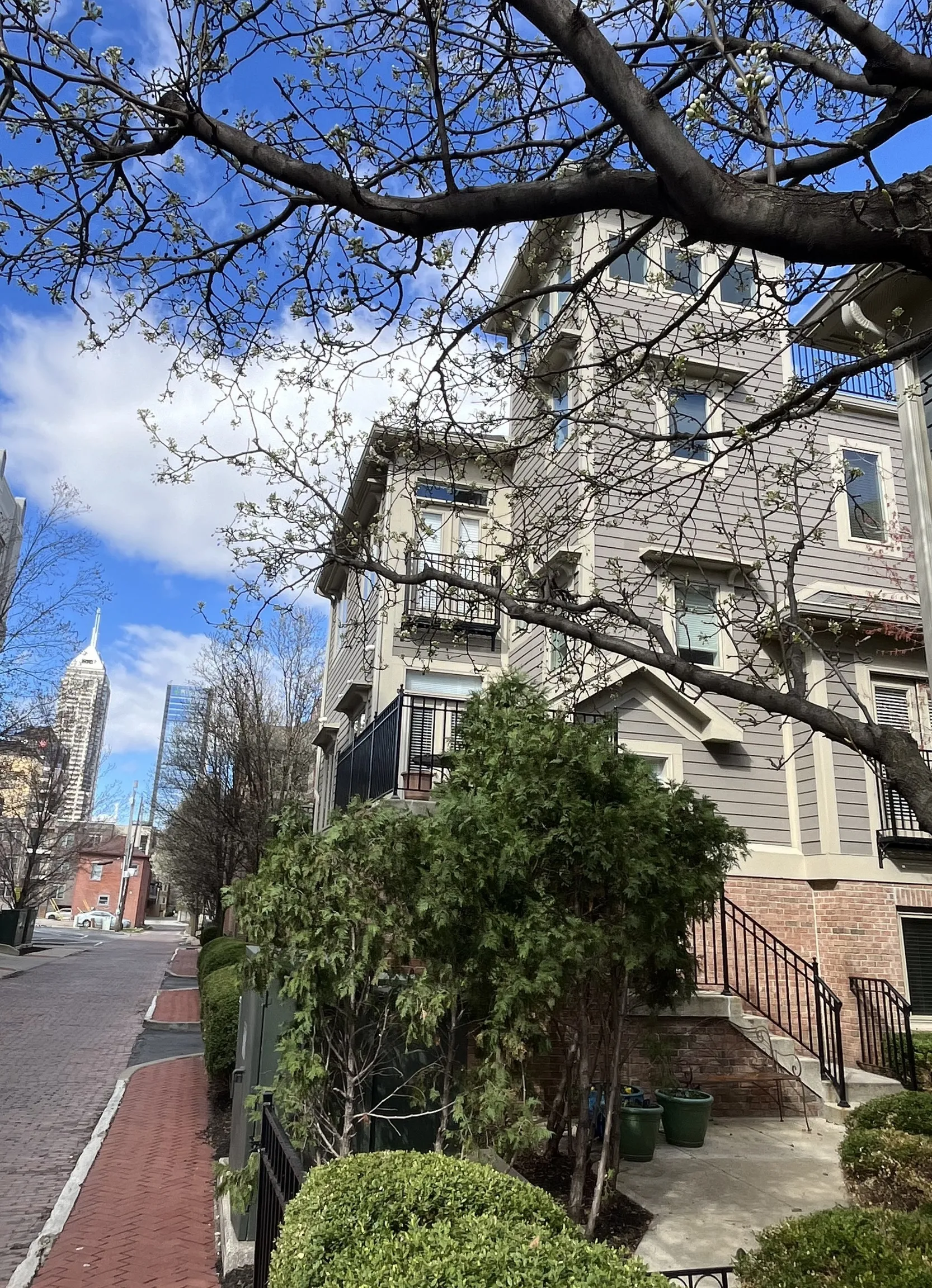 3 level, End Unit Spacious Townhome in the Historic District of Lockerbie! Walking distance to Mass Ave., Shopping, Restaurants and Entertainment! Enjoy your 4th level private roof-top balcony with views of the city! Attached 2 Car Tandem Garage. New Flooring! Two large Primary suites each with walk-in closets. Dual sinks in Bath! Wall to wall shelving installed by Closets by Design on Lower Level. Separate balcony overlooking the Courtyard! Stainless Steel appliances with gas oven/range. Loft area for computer/office station! A must see!
