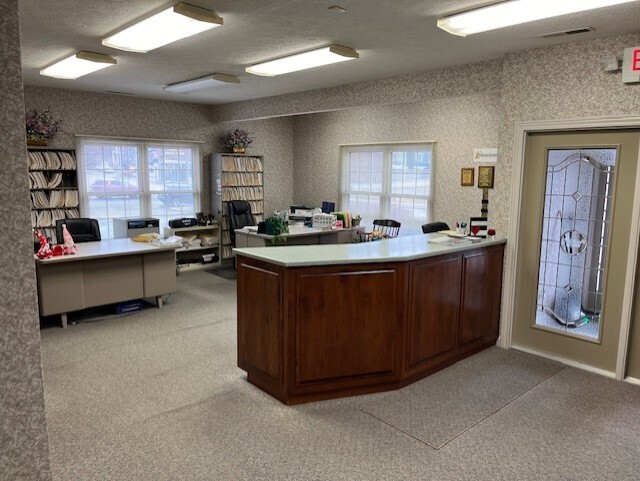 Beautiful Office building with 1436 Square feet on the main level, 3 private offices, Large Reception area and work areas, additional Upstairs storage area. Has a nice Kitchenette, has a half bath. Maintenace free building with parking in front and also employee and handicap parking in back entrance. would be a great Law office or accounting office etc. come and take a look at this one.
