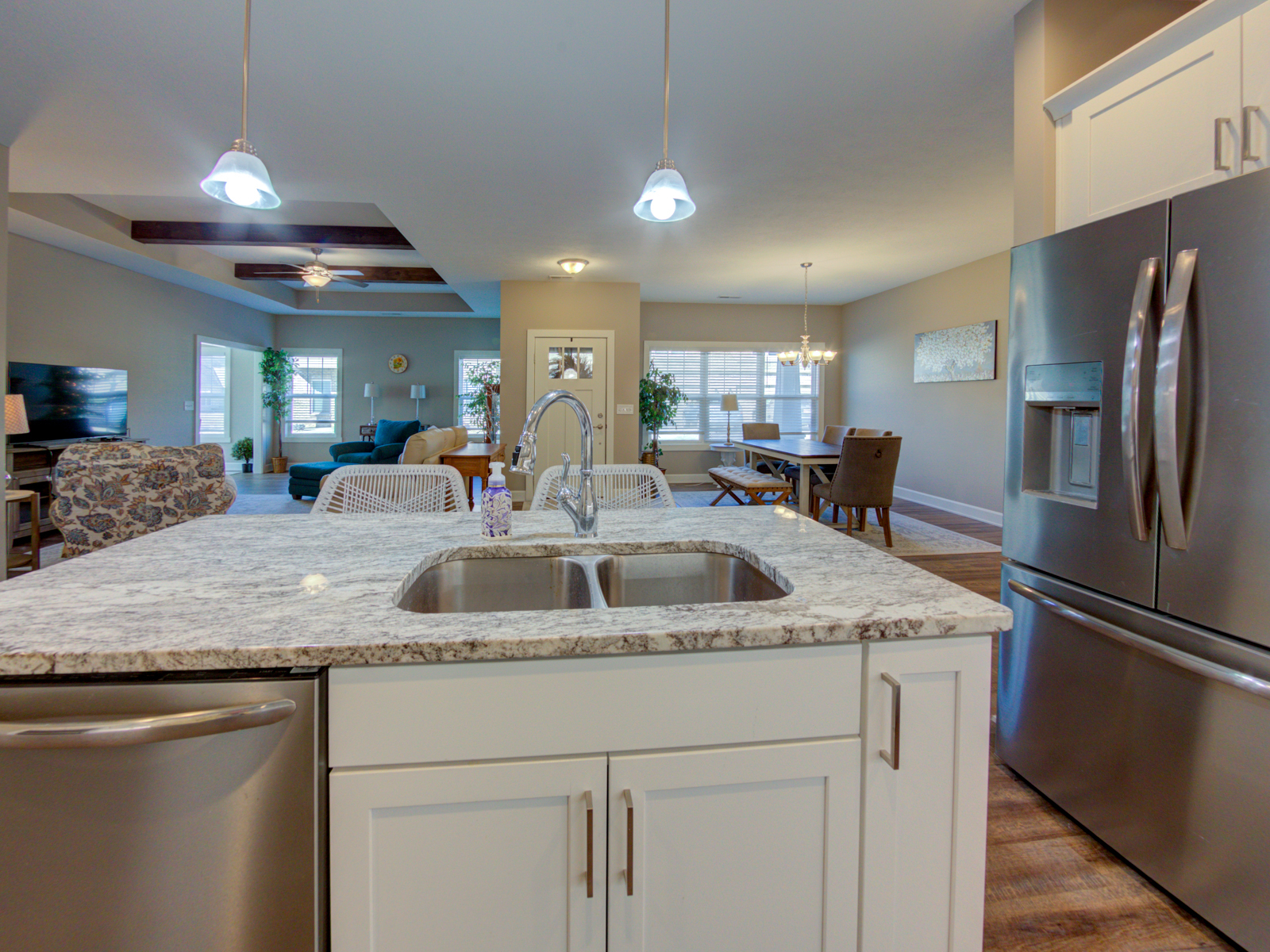 This is a large, maintenance free condo you’ve been waiting to move into! Built in 2022. The property is EMACUALATE, looks like new and ready for immediate occupancy. Very open floor plan, connecting the Great Room, Dining Room and Kitchen areas. The main level features wider hallways, doorways, and zero threshold walk in shower. Kitchen features upgraded counter tops and stainless steel appliances. There is a 2nd level loft which could be a second suite area with a walk in closet and full bathroom. Attic access is a full size door off the loft. Also, a northwest facing Sunroom. Community includes club house, pool, pickle ball courts, basketball court, walking trails. this is a well decorated condo with all the updates, including outside roses.