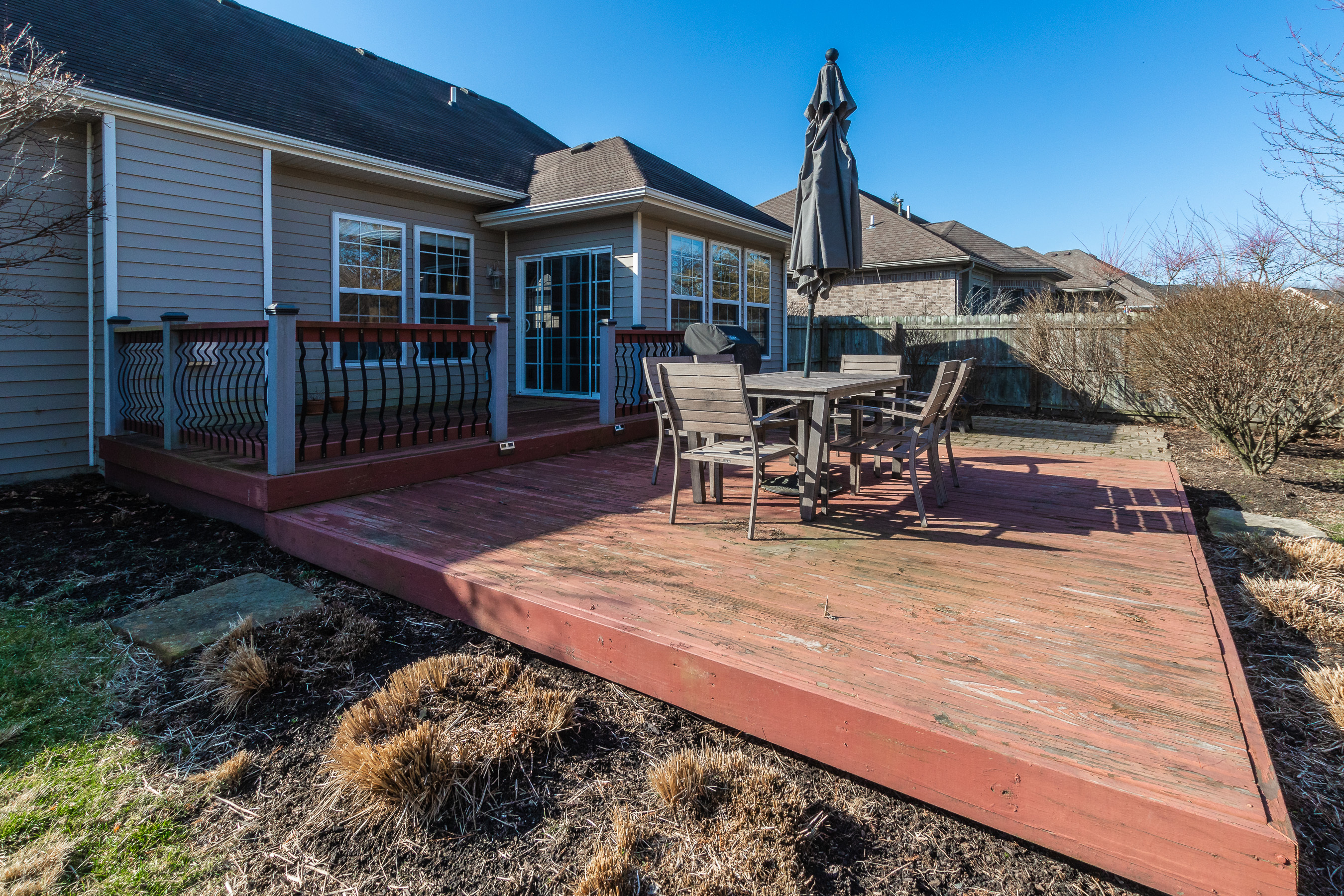 Beautiful open floor plan home in a great neighborhood convenient to the Cardinal Greenway. Step inside to the large foyer and great room with gas fireplace. Kitchen with stainless appliances, solid surface counter and island with granite surface. All appliances in the home are included. Master bath with jetted tub and separate shower. Dining area with sliding doors out to the wood decks, concrete paver patio and privacy fenced back yard, mature trees and garden shed.