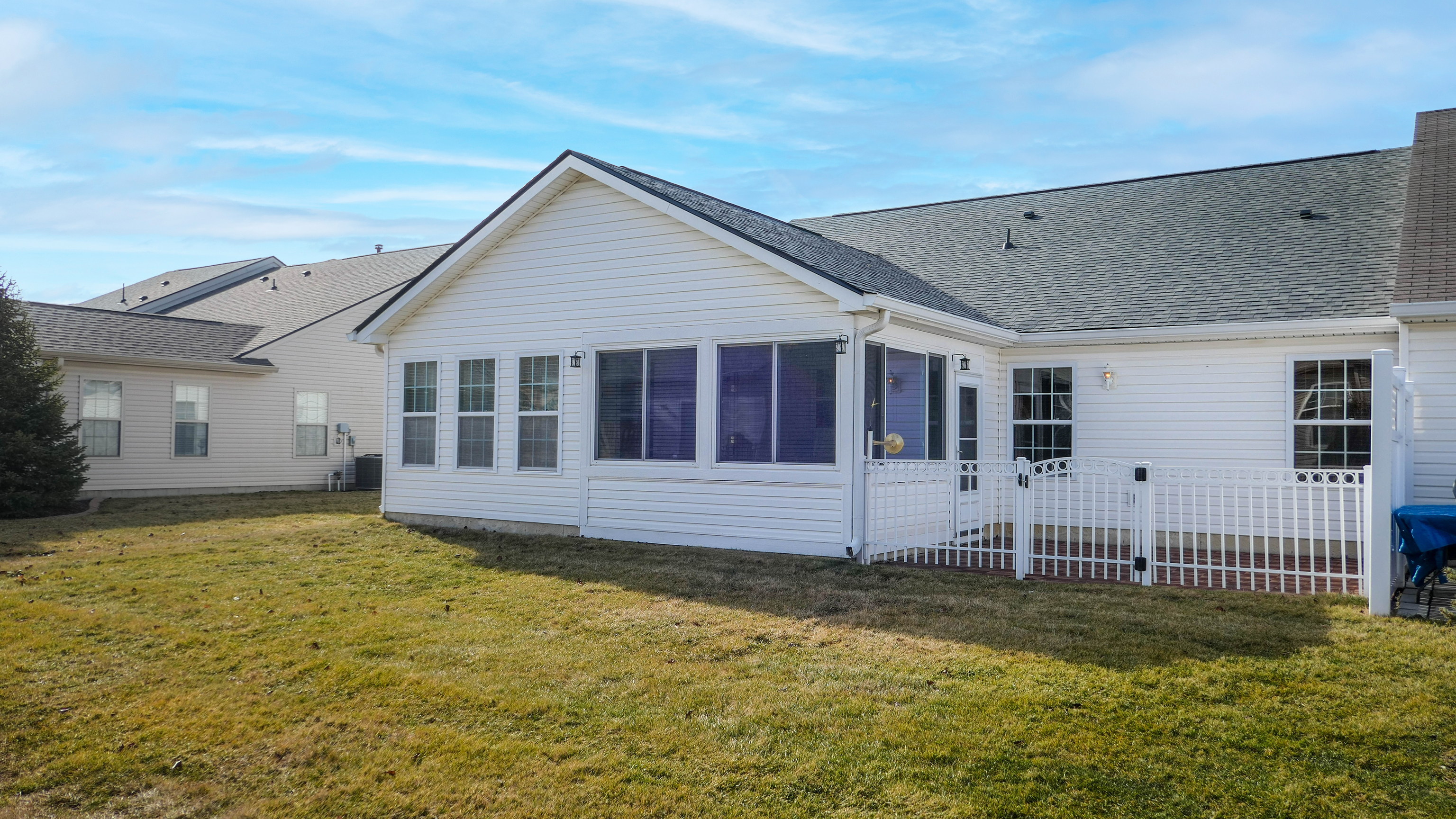 Don’t miss out on this well-maintained 2 bedroom paired patio home in Greenwood’s Crooked Bend neighborhood. Explore this home via interactive 3D home tour, complete with floor plans, video & more. Relax and let the HOA maintain your lawncare and snow removal in this low-maintenance community. A spacious great room with high cathedral ceiling welcomes you into the home. Enjoy the sunshine year-round from the glass-enclosed patio all-season sun room, or open-air patio. The kitchen features all stainless steel appliances, including an LG 6.3 cu ft self-clean air fry convection oven. Primary bedroom includes private full bathroom with double sinks and dual walk-in closets. Secondary bedroom also features a walk-in closet and adjacent full bathroom. Brand new roof. Finished 2-car garage boasts beautiful epoxy flooring. Great location with convenient access to nearby dining, shopping, schools, & I-65.