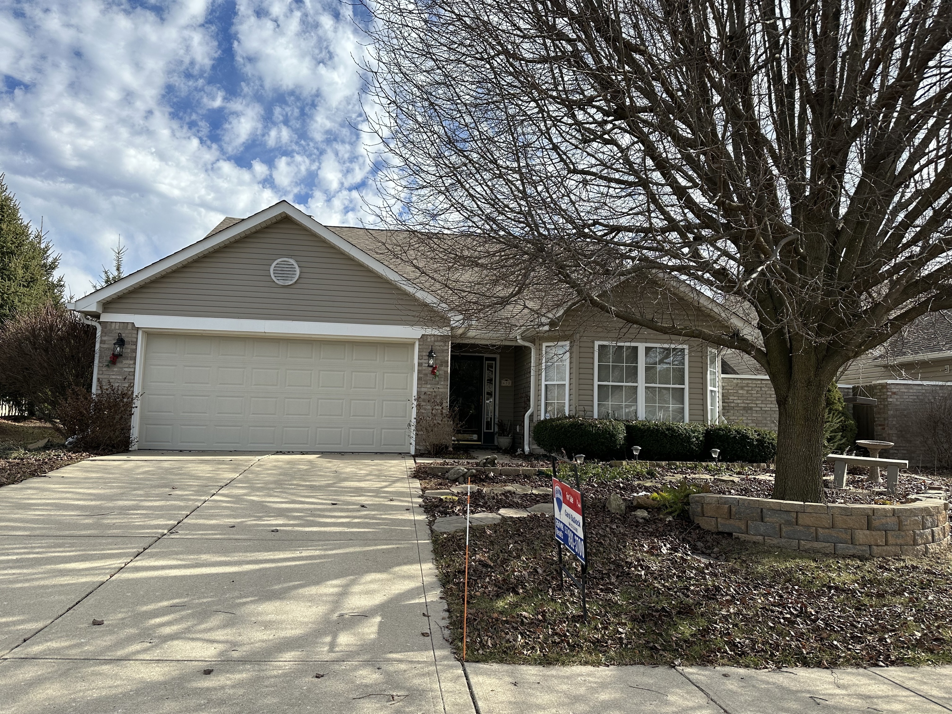 One level patio home with split floorplan! Enjoy kit w/ great cab space, country sink, 2 baking sheets cabs, wonderful counter space plus ref, range, micro stay and washer and dryer .Large Mstr offers garden tub/shower, sep water clst, walk in closet , 2nd BR opens to courtyard, den could be a3rd bedroom. Sunroom is a 3 season screened porch which opens to large courtyard. 3 new ceiling fans, corner FP, cathedral ceiling, storage shelves in the laundry room. Disposal ’20, microwave ’19, ref ’20, water softener ’21, roof ’17. The garage is finished & the garage door is insulated, also offering pull down stairs. The backyard is private with the arrangement of bushes, gas grill is negotiable as is TV in the great room. Inviting & well maintained! Sellers will give possession 30 days after closing