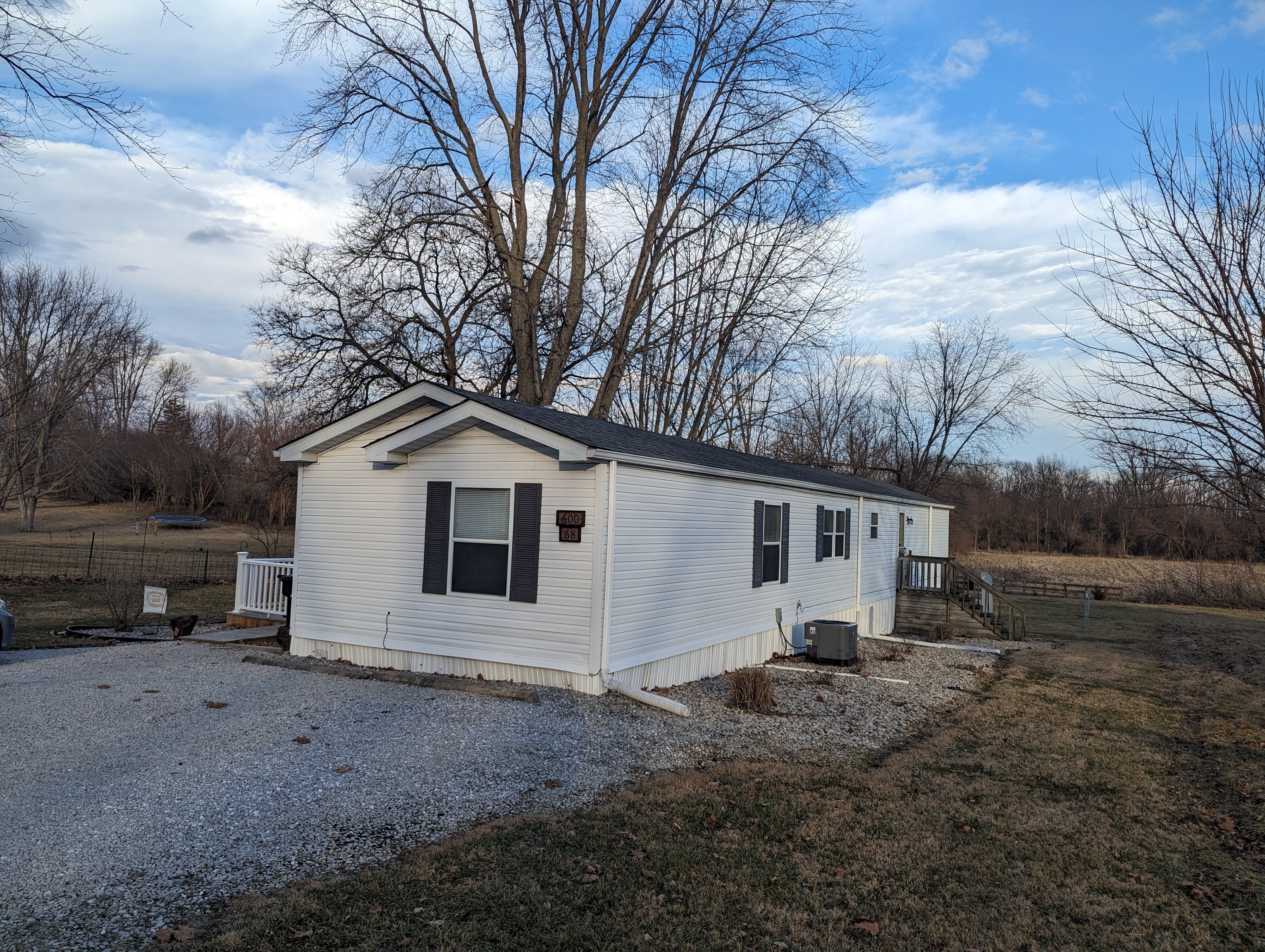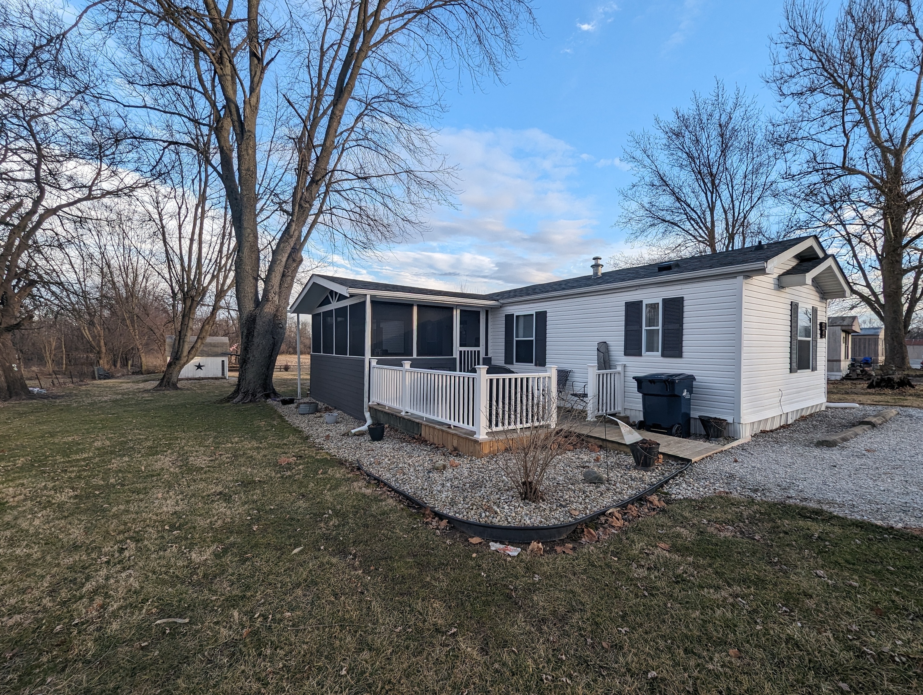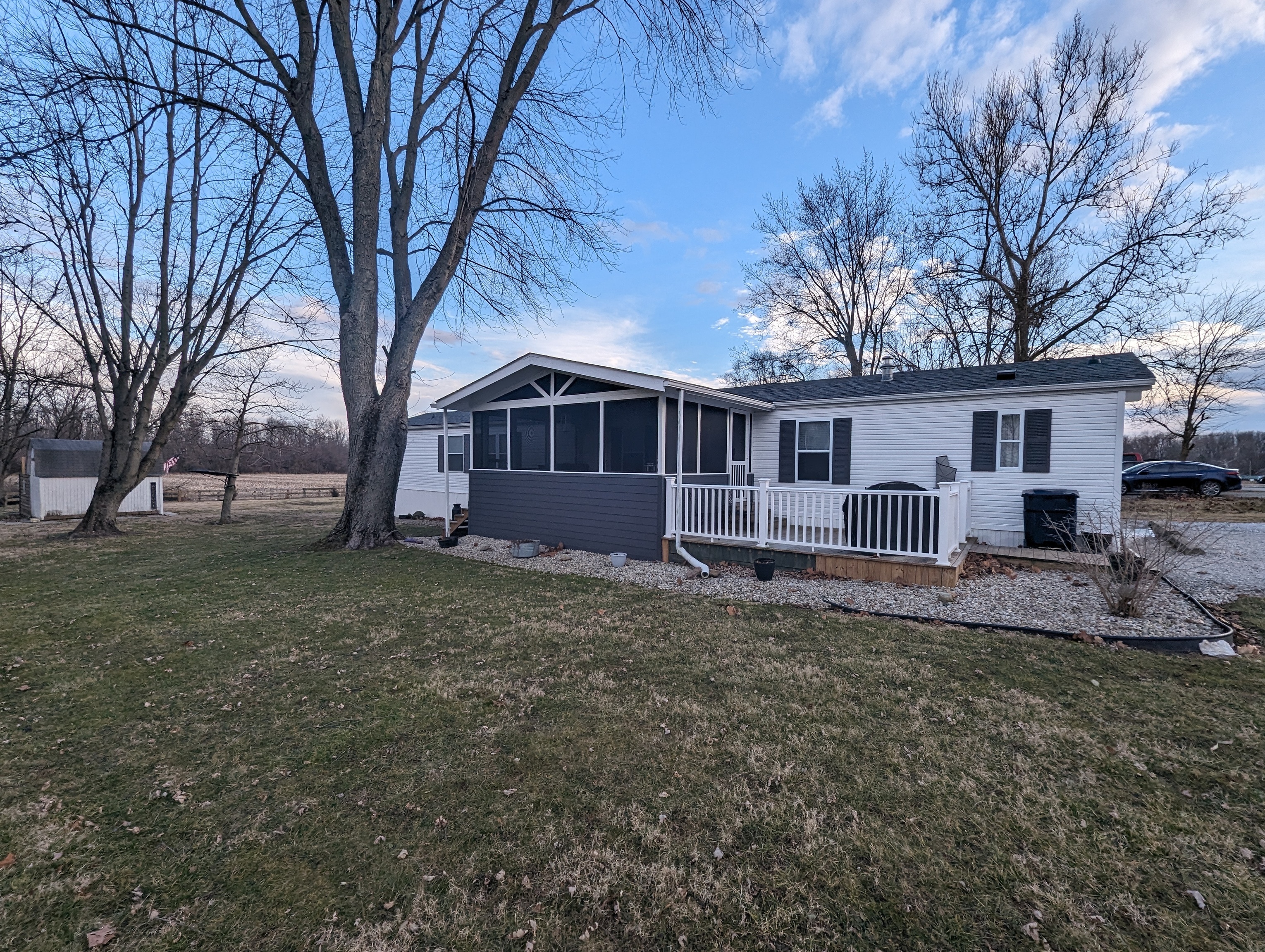 SPACIOUS MANUFACTURED HOME LOCATED IN RUSHVILLES SUNSET MOBILE HOME PARK, OFFERING 3 BEDROOMS AND 2 FULL BATHS. THIS HOME FEATURES NEARLY COMPLETED UPDATES INCLUDING NEWER ROOF, HVAC, LUXURY VINYL TILE, APPLIANCES. GREAT YARD AND DECK SPACE, MINI BARN ADDITIONAL GRAVEL AREA, MUTURE TREES, BEDROOMS NEED FLOORING AND SOME TRIM COMPLETED HOME IS SWEETLY LIVABLE AND VERY AFFORDABLE. SUPRISINGLY PRIVATE LOCATION AT DEAD END OF PAM WAY….
