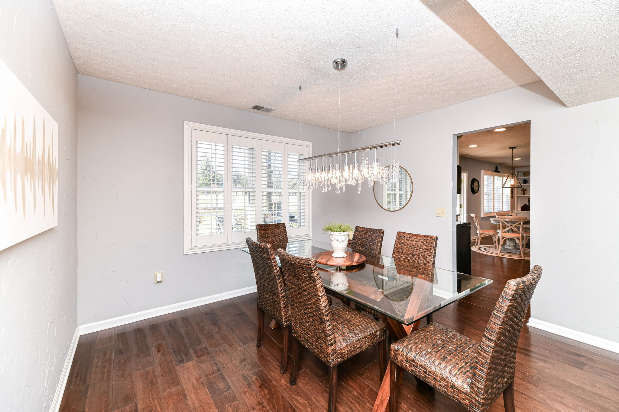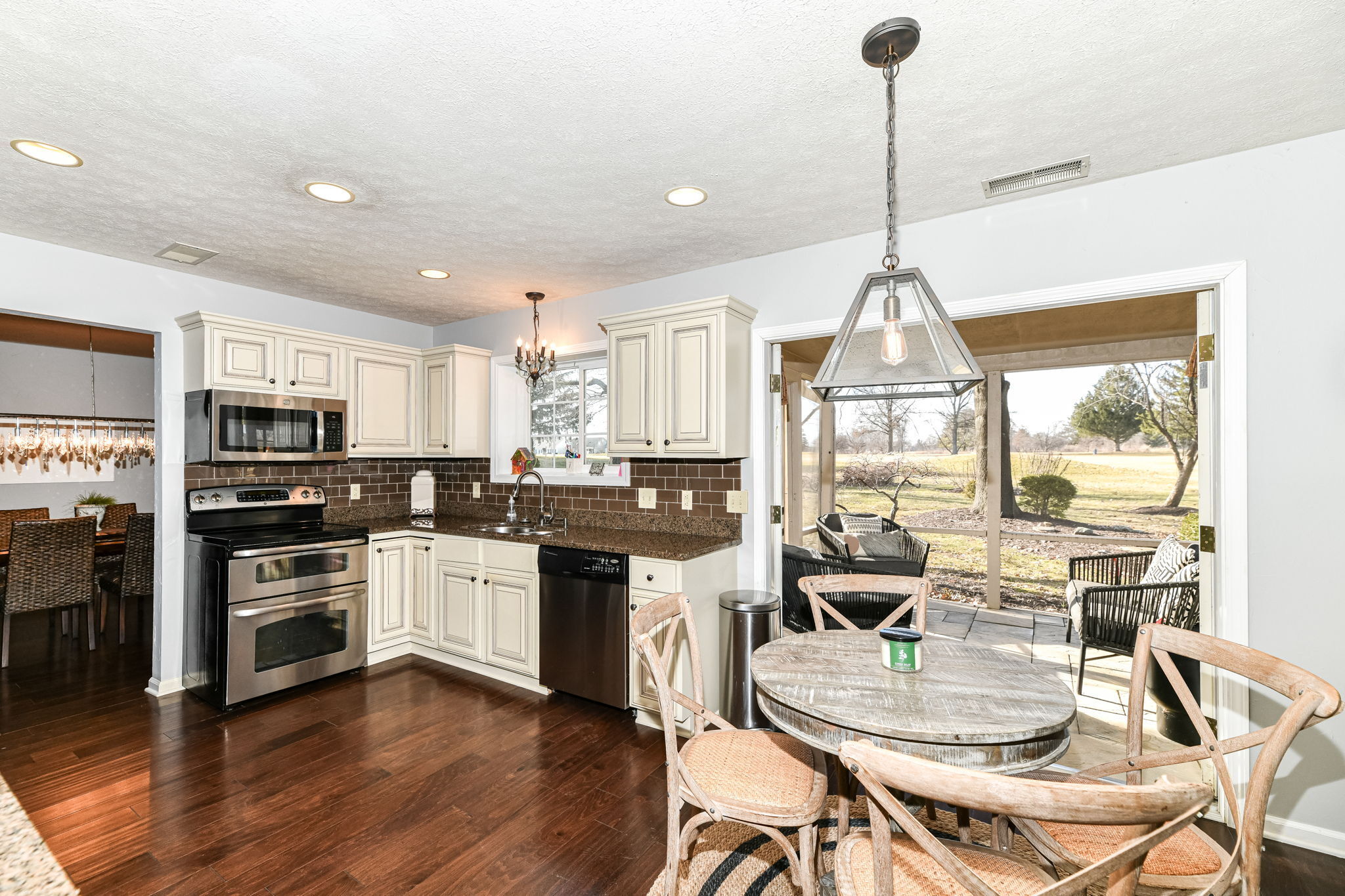 Escape the everyday in this stunning golf course home. The screened porch and patio are your havens, overlooking the lush backyard and tranquil course. Inside, the spacious layout lets everyone find their own corner of comfort, yet it’s perfectly designed for coming together to share good times. You will find many upgrades have already been done for you, including gorgeous hardwood floors throughout, custom plantation shutters on the windows, granite counter top in the kitchen. The kitchen offers ample cabinet and counter top space and stainless steel appliances. The spacious primary bedroom with vaulted ceiling creates an airy feel, while the walk-in closet and ensuite bathroom (featuring double sinks, a garden tub, and a separate shower) offer luxurious touches. Enjoy the neighborhood amenities which include pool, playground and pickle ball courts. You will not want to miss this lovely 4 bedroom home in the Pebble Brook community!